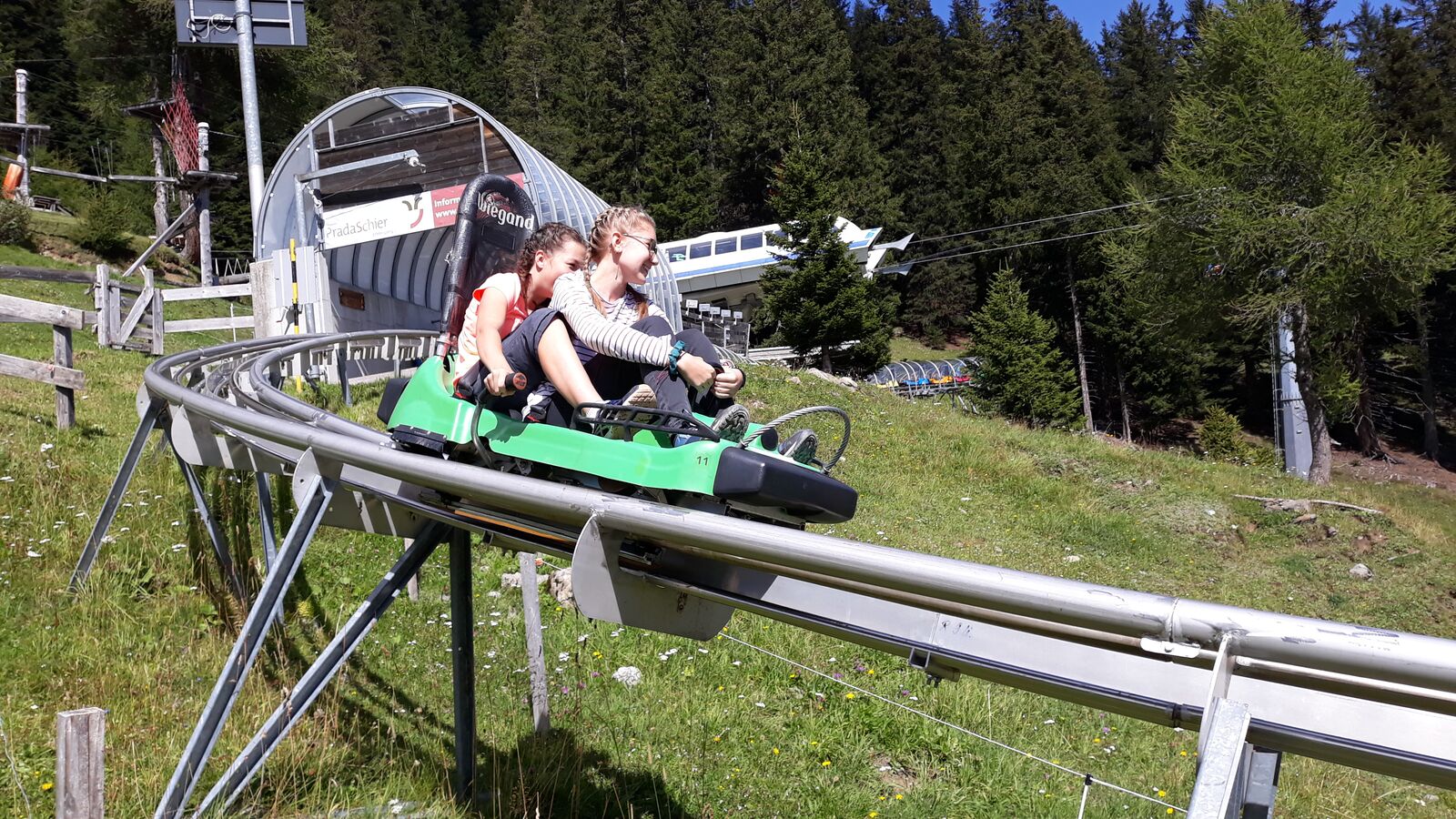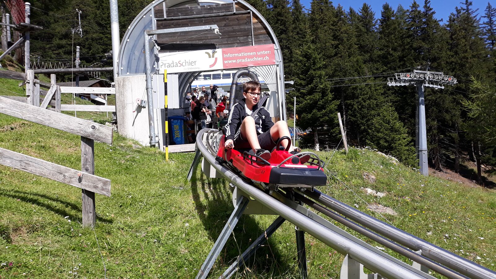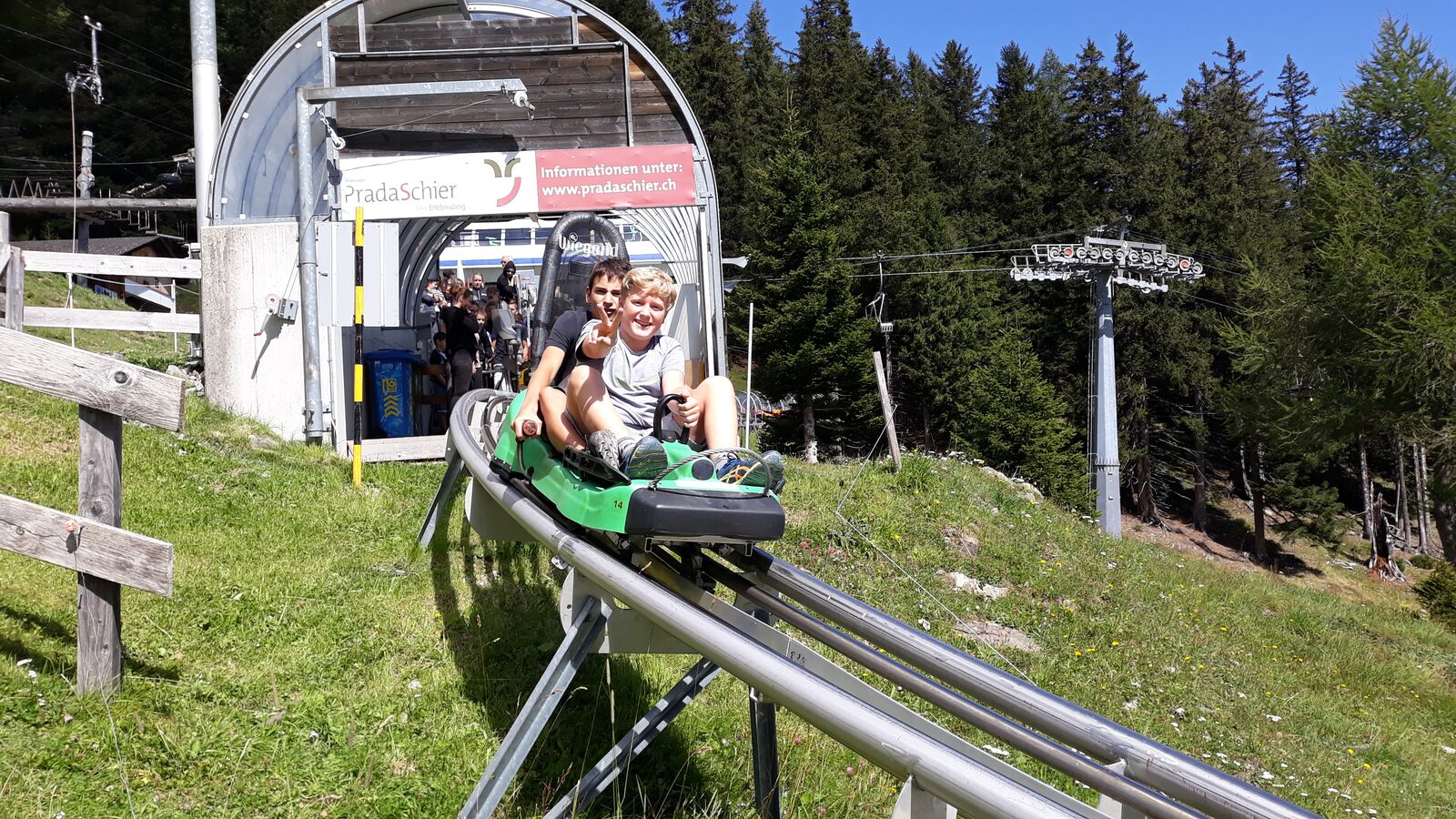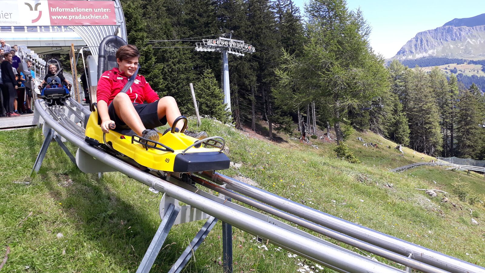 Im Vorjahr noch völlig vom Wettergott verlassen, konnte die Klasse 2s im neuen Schuljahr bei Traumwetter zum Schulausflug starten. Mit dem Zug ging es nach Chur, wo die Jugendlichen mit der Brambrüeschbahn ins Gebirge schwebten. Die anschliessende Wanderung nach Pradaschier verging wie im Flug - und schon wartete die längste Sommerrodelbahn der Schweiz auf die Jugendlichen. Bei der ersten Fahrt konnten es unsere Schülerinnen und Schüler noch so richtig sausen lassen, während sie beim zweiten Mal arg von doch etwas zu ängstlichen Innerschweizer Jugendlichen richtiggehend ausgebremst wurden.