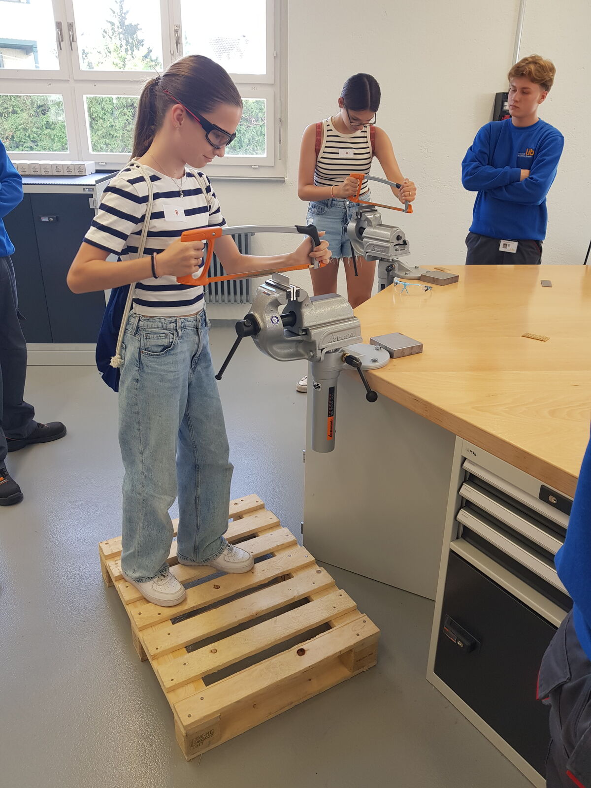 Die Klasse 2sb besuchte mit Frau Baumgartner und Herrn Entner die Berufsorientierung der libs in Heerbrugg. Dort erhielten die Jugendlichen spannende Einblicke in verschiedene technische Lehrberufe und durften sich in der Werkstätte auch selbst handwerklich betätigen.