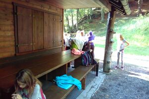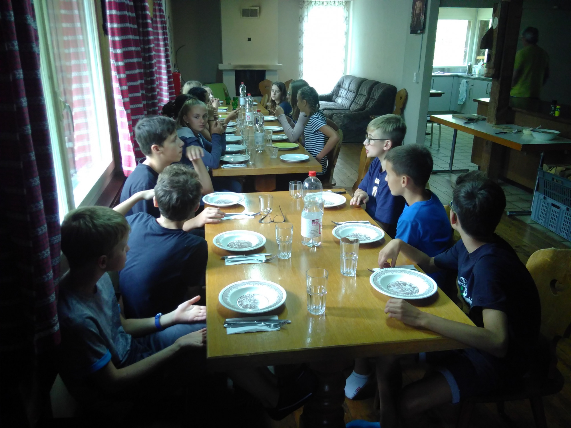 Im Jungwachtheim Bad Ragaz –wo der Vermieter aufgrund der Trockenheit mittels Zisternentransport vor unserer Ankunft die Wasserversorgung wieder herstellen musste- wurde die Unterkunft bezogen und schon um 16 Uhr zu Abend gegessen. Um 17.30 Uhr folgte nämlich der Transport per Postauto in die Taminaschlucht zur Light Ragaz. Ein tolles Vergnügen für Leute mit wachen Sinnen! Anschliessend ging es zum Wellnessen in die Taminatherme. Nach der Rückkehr ins Haus folgte noch der zweite Teil des Abendessens, damit niemand hungrig ins Bett musste.