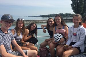 In der letzten Augustwoche reisten die drei Klassen der 3. Oberstufe nach Estavayer-le-Lac. Auf dem Programm standen die Besichtigungen der Stadtmauer von Murten und der Berner Altstadt sowie ein Rundgang in der Maison Cailler in Broc. Ausserdem wanderten die Schülerinnen und Schüler durch die Jaunbachschlucht, unternahmen eine Schifffahrt auf dem Neuenburgersee und zwei Radtouren. Eine Rallye durch Estavayer brachte einem die Stadt etwas näher. Das Wasserskifahren am zweitletzten Tag war sicherlich für viele das Highlight des Lagers.