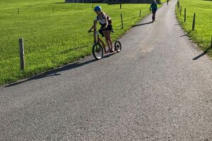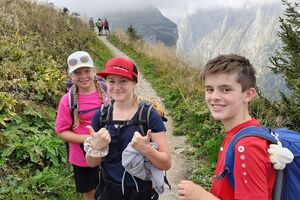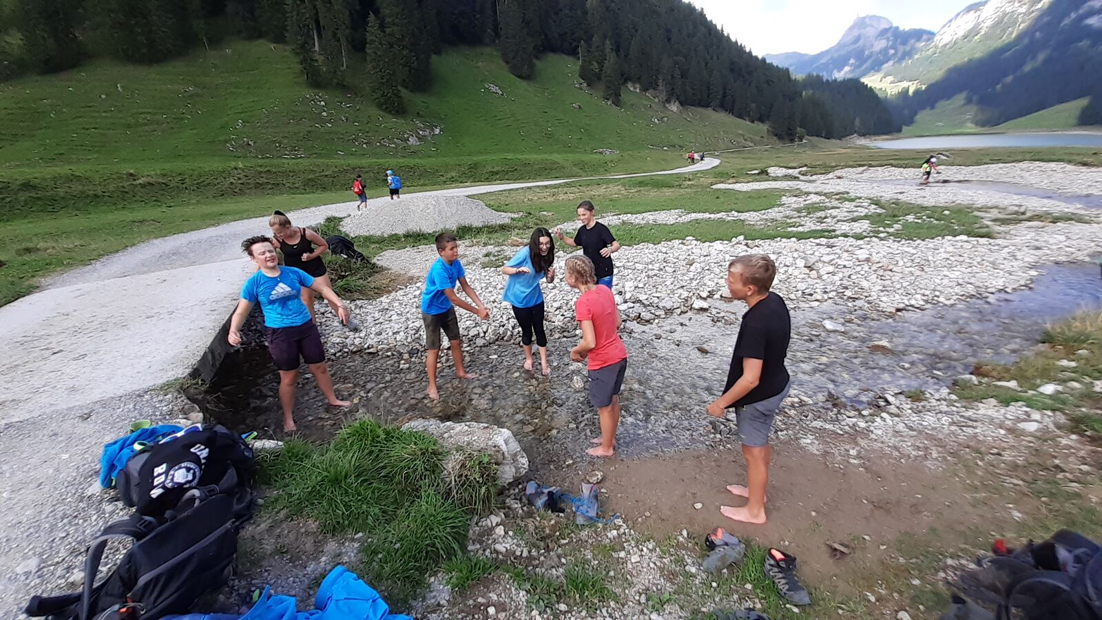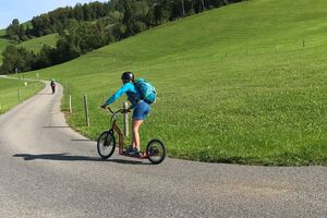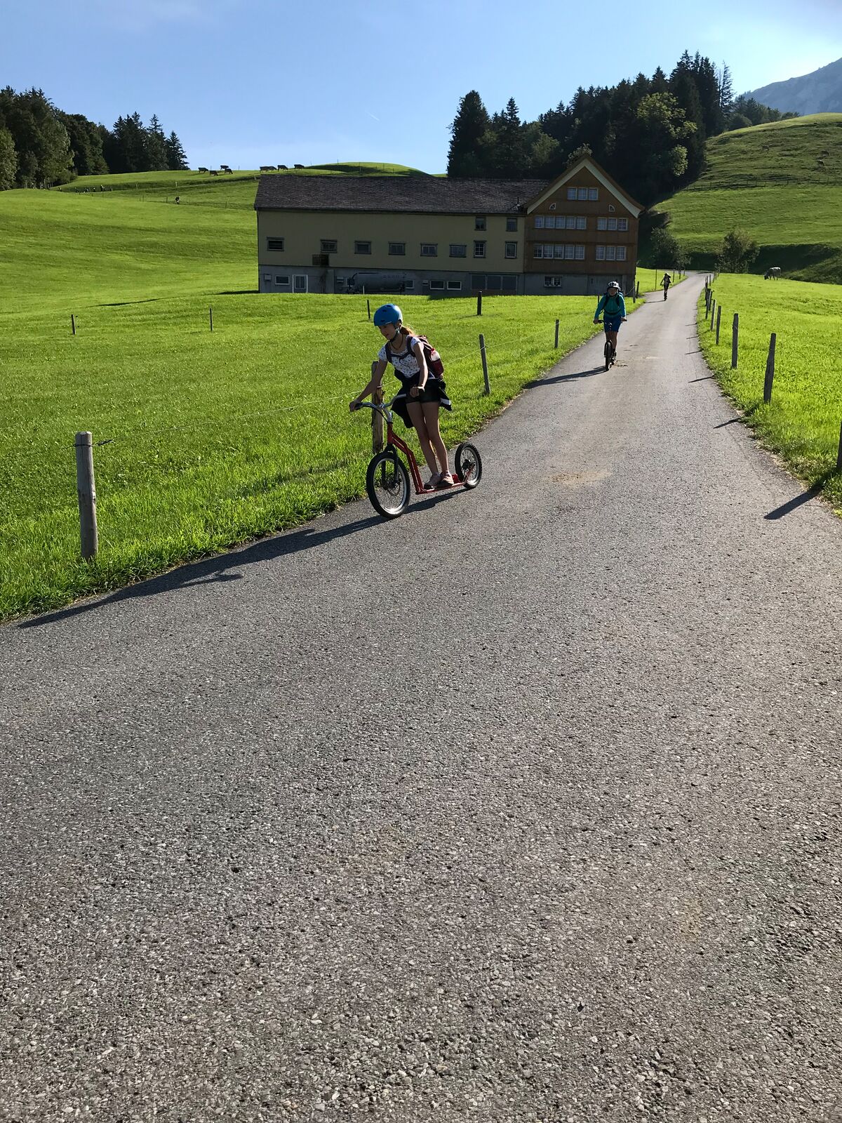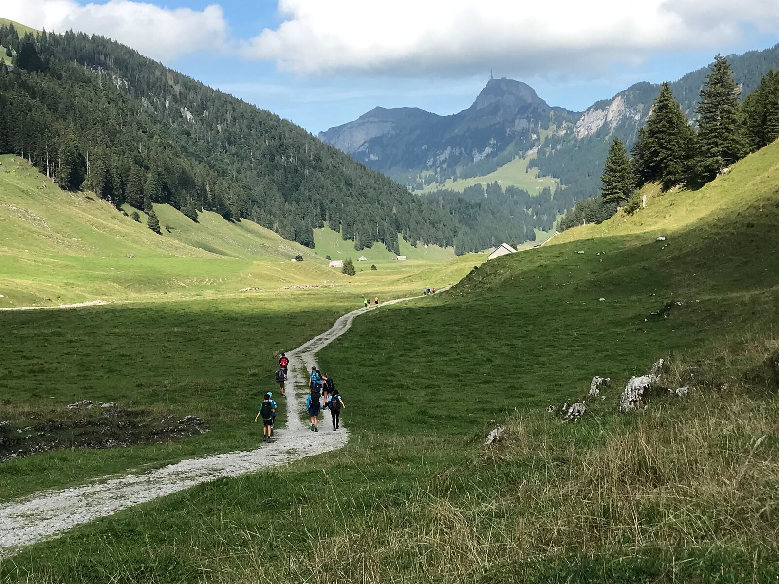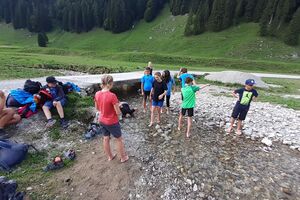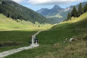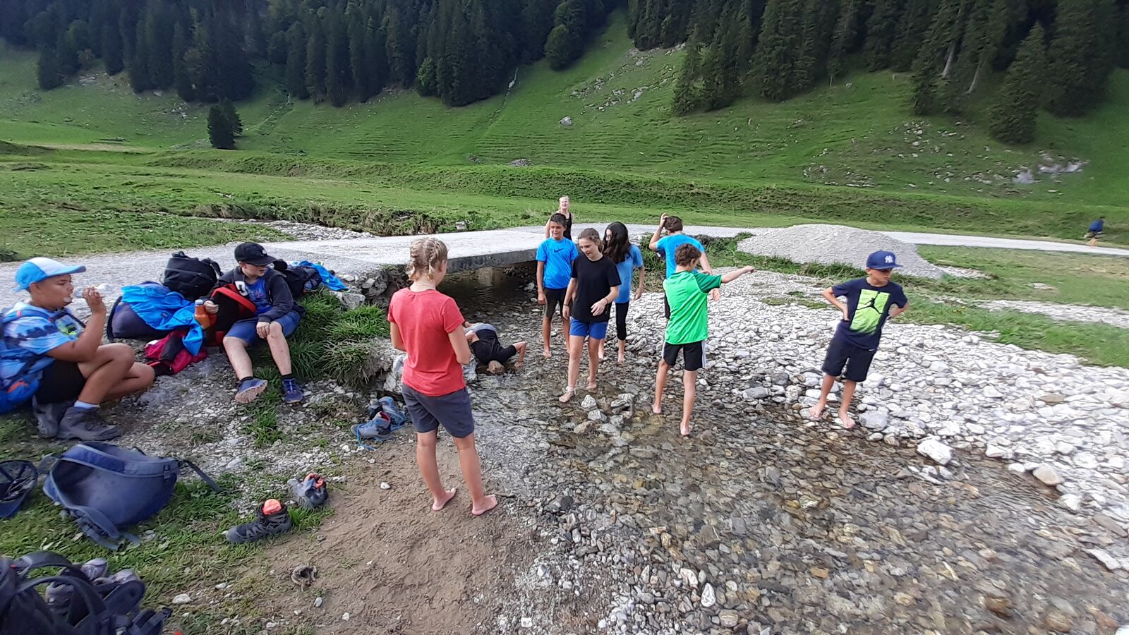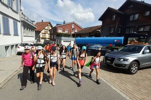 Der zweite Tag startete mit einem Spaziergang zum Ruhesitz, von wo die Schülerinnen und Schüler in rasanter Fahrt per Trottinett ins Tal sausten. Nach einer schönen Wanderung von Brülisau kamen wir nach Weissbad, wo wir bei Frau Signer unsere Mittagspause machen durften. Wieder lockte ein Bächlein, das diesmal aber deutlich kälter war. Das war aber kein Hindernis für so manchen und es wurde fröhlich geplanscht. Kurz später erreichten wir Appenzell und durften noch die Alpabfahrt miterleben. Zug und Bus brachte die Klasse zurück ins Rheintal. Schön war's!