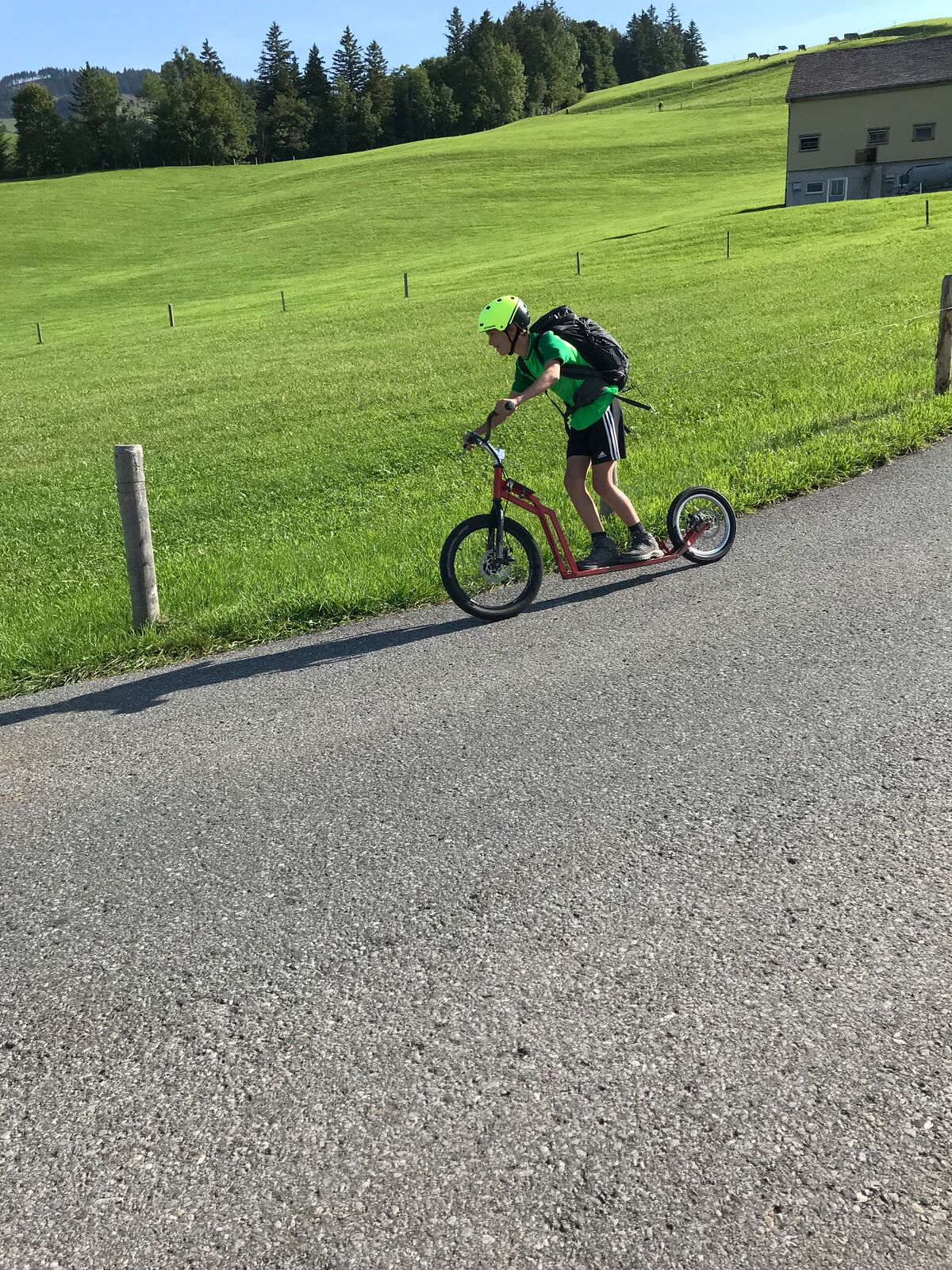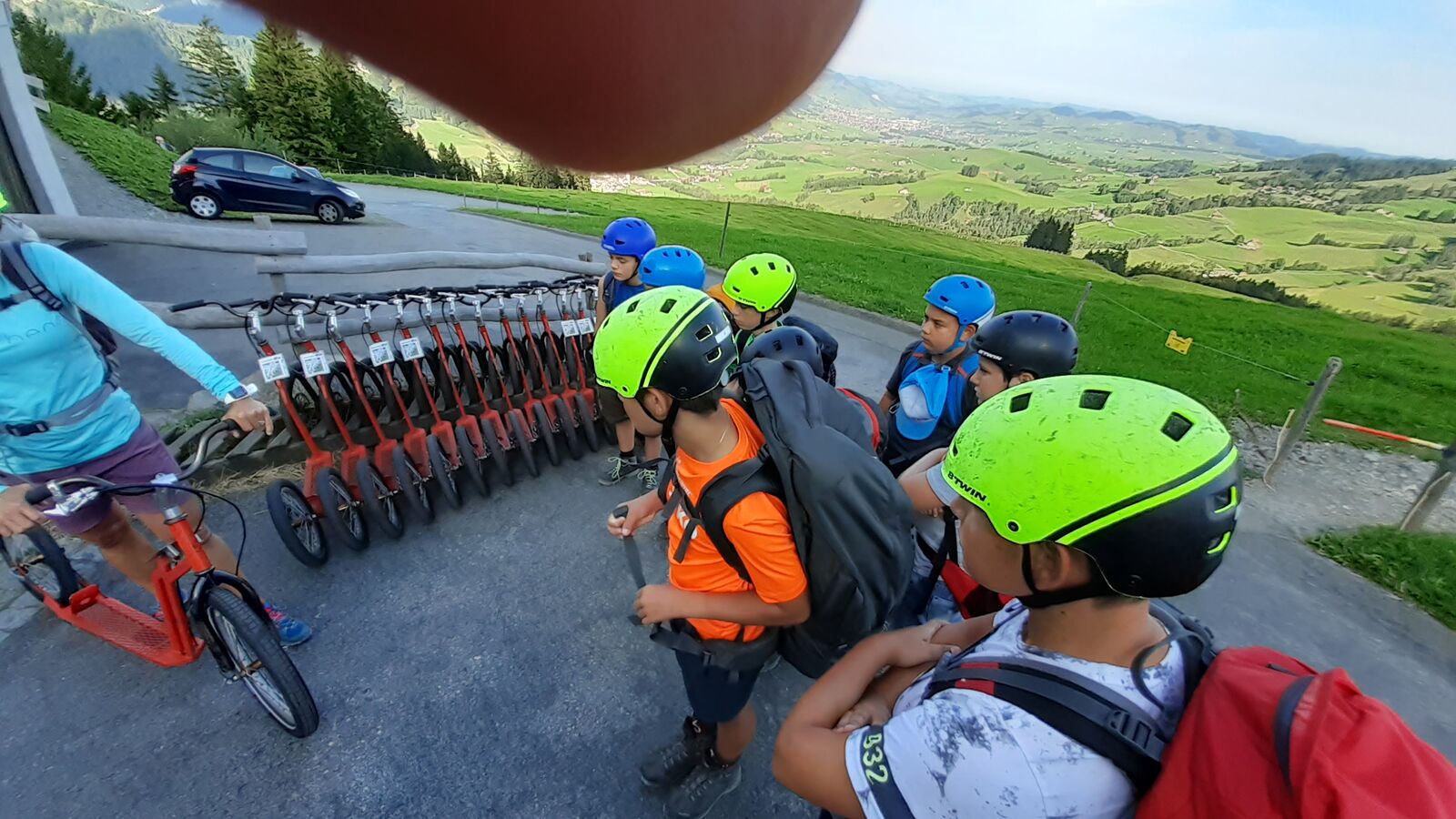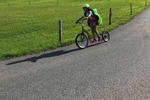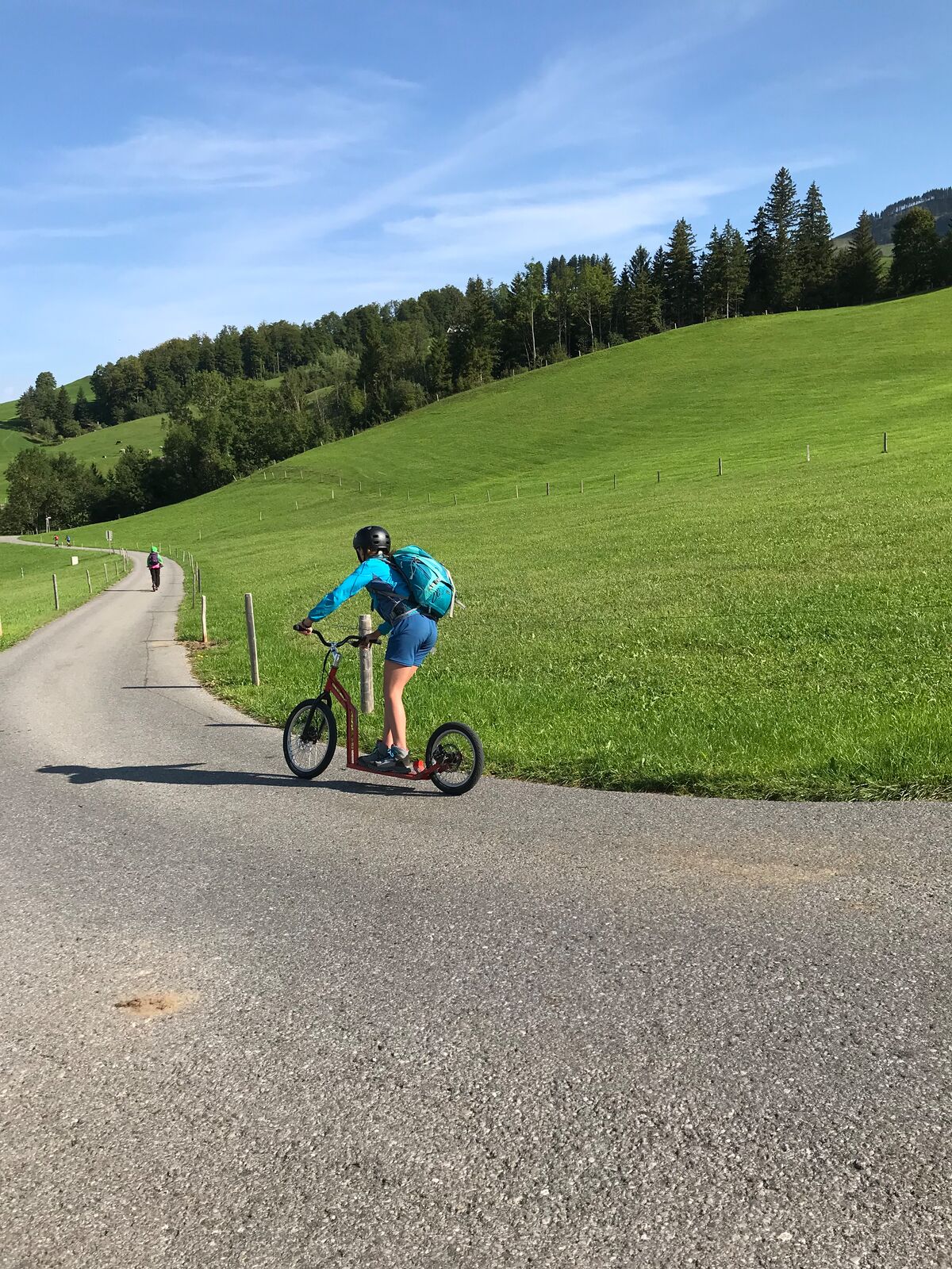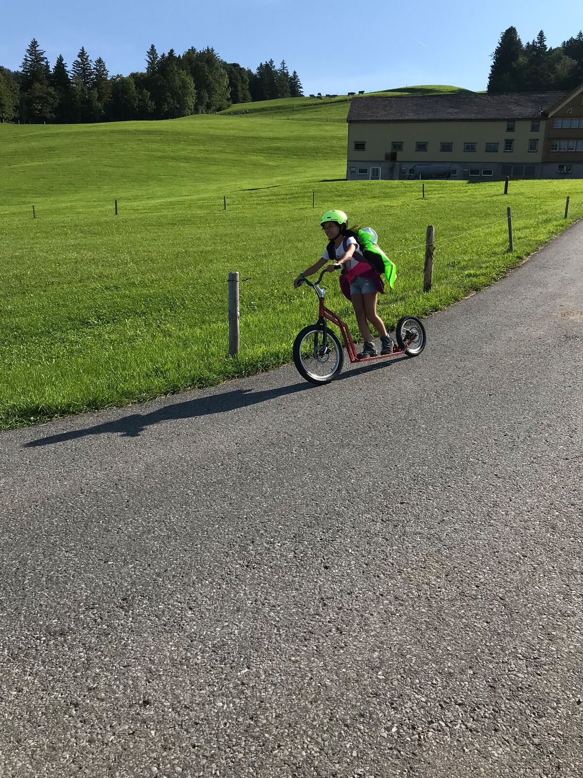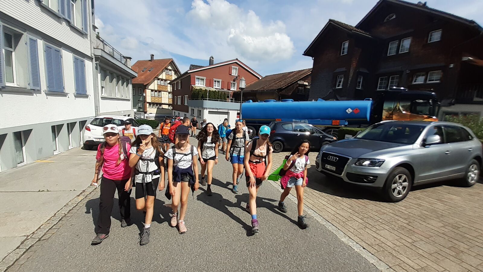 Der zweite Tag startete mit einem Spaziergang zum Ruhesitz, von wo die Schülerinnen und Schüler in rasanter Fahrt per Trottinett ins Tal sausten. Nach einer schönen Wanderung von Brülisau kamen wir nach Weissbad, wo wir bei Frau Signer unsere Mittagspause machen durften. Wieder lockte ein Bächlein, das diesmal aber deutlich kälter war. Das war aber kein Hindernis für so manchen und es wurde fröhlich geplanscht. Kurz später erreichten wir Appenzell und durften noch die Alpabfahrt miterleben. Zug und Bus brachte die Klasse zurück ins Rheintal. Schön war's!