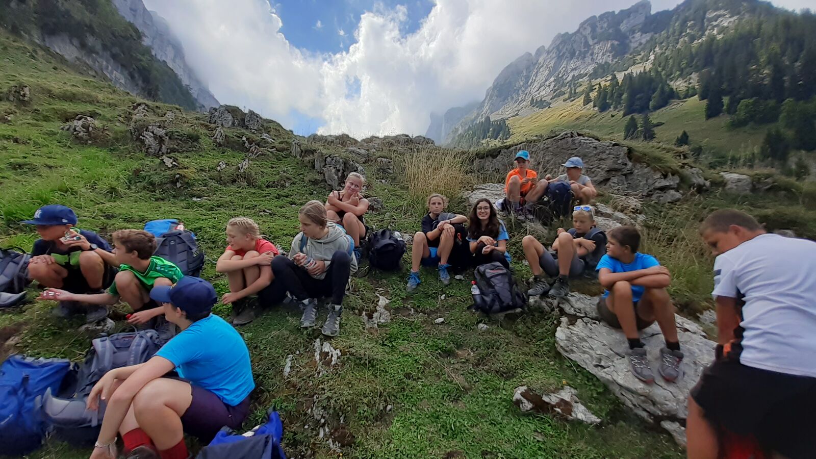 Vor wenigen Wochen gingen die Schülerinnen und Schüler der neuen Klasse 1sa noch getrennte Wege, nun machten sich die Jugendlichen aus den Dörfern Kriessern, Montlingen und Eichenwies gemeinsam auf die Reise. Zum besseren Kennenlernen startete man zu einer zweitägigem Ausflug in den Alpstein. Die ambitionierte Wanderung führte vom Hohen Kasten über den Stauberngrat, Saxerlücke bis zum Plattenbödeli, wo die Klasse das Nachtquartier aufschlug. Zuvor warf sich so mancher Schüler noch in den überraschend wohltemperierten Bach. Vor dem Schlafengehen wurden noch spielerisch Werwölfe vertrieben bzw. entlarvt.