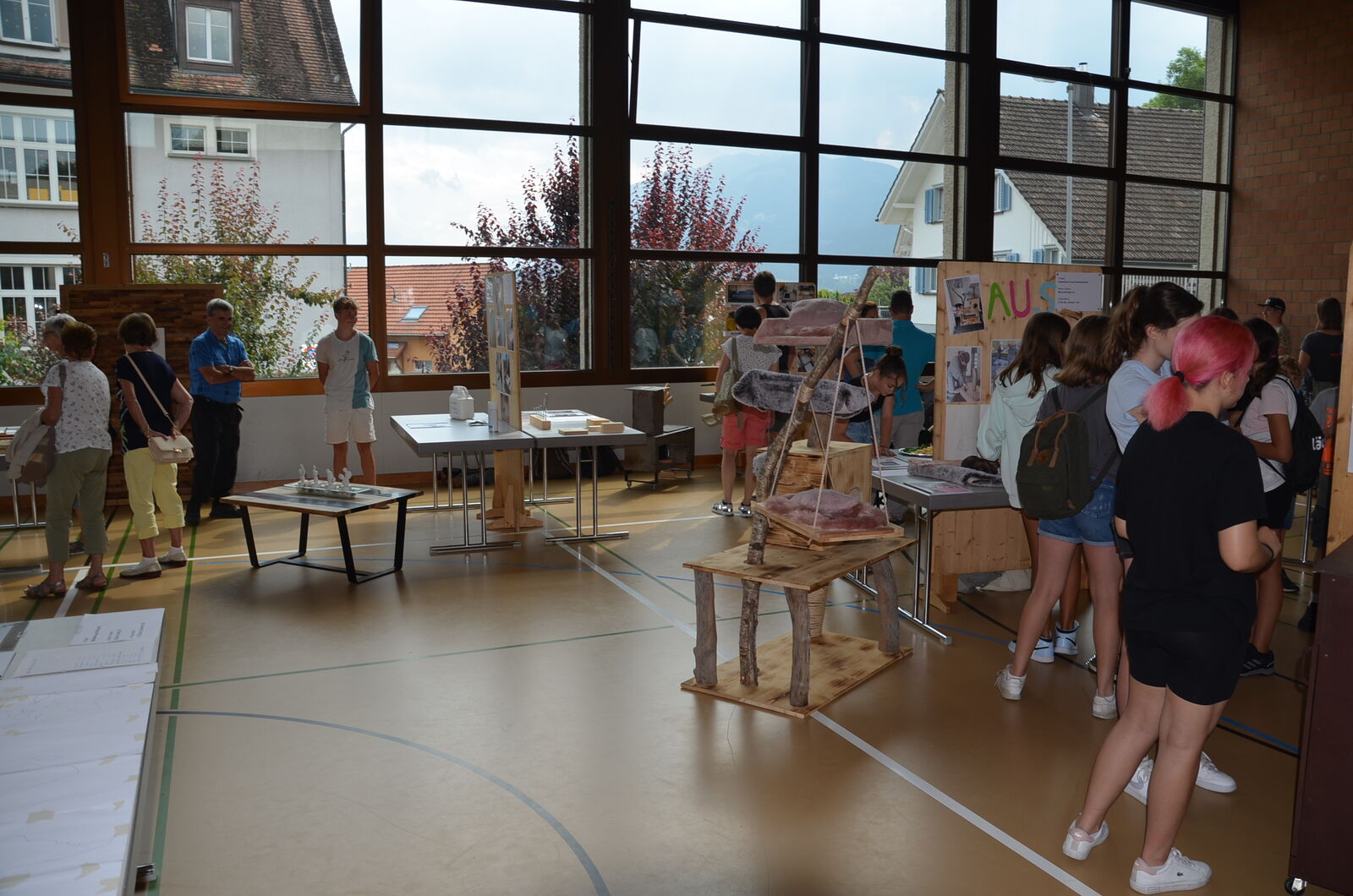 Traditionell gibt es bei der Schulausstellung in Montlingen viel zu bestaunen, schliesslich haben die Schülerinnen und Schüler im gesamten Schuljahr in vielen Fächern kreativ gearbeitet. Aber bei dem von Primarschule und Oberstufe gemeinsam veranstalteten Anlass sollte nicht nur gestaunt, sondern auch aktiv geschafft werden. An vielen Stationen konnten die Besucher verschiedene Spiele ausprobieren. Und auch das Rahmenprogramm begeisterte die rund 500 Besucher. Auf der Open-Air-Bühne begeisterten die Auftritte der Kleinsten bis zu den Aufführungen der Abschlussklassen.