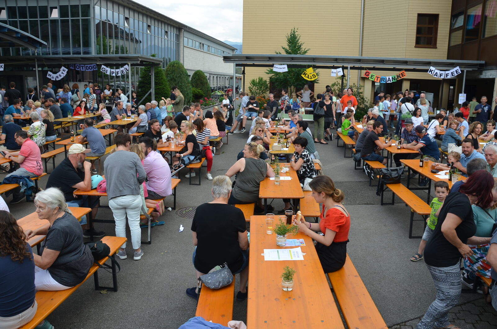 Die Festwirtschaft war sehr gut besucht und die Besucher wurden von den Schülerinnen und Schülern bestens mit Speis und Trank versorgt. Halb Montlingen war auf den Beinen und tauschte sich bei einem gemütlichen Hock auch mit den Besuchern aus Kriessern und Eichenwies aus. Die Schulausstellung von Primarschule und Oberstufe Montlingen war ein echter Erfolg – es spielte einfach alles perfekt zusammen…