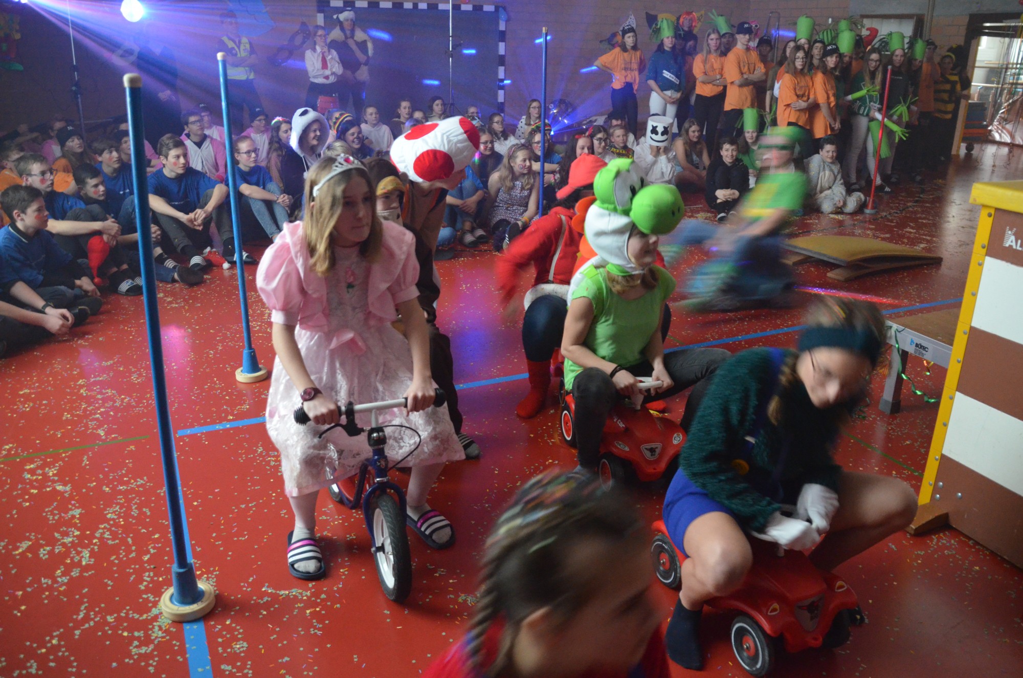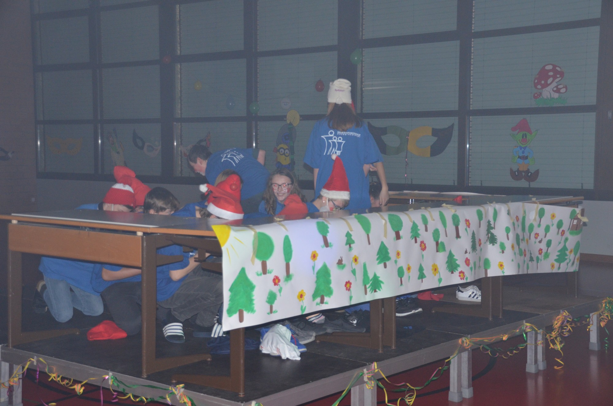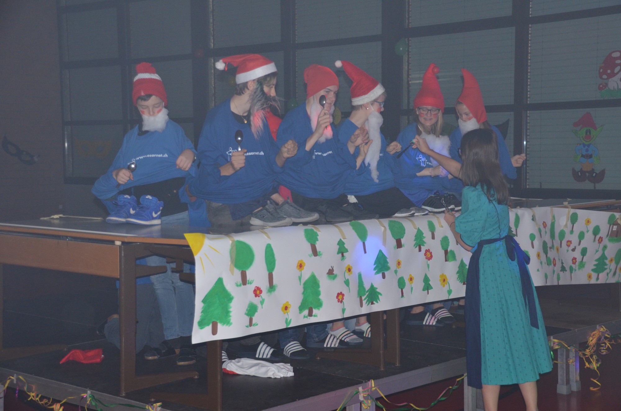 Die zahlenmässig und klanglich äusserst starke Schüler-Gugga "Berglischränzer" heizte den Schülerinnen und Schülern gleich zu Beginn mächtig ein und animierte dazu, die erste Polonaise durch die Kirchgut-Turnhalle "loszutreten". Es folgten die witzigen und toll choreografierten Auftritte der einzelnen Klassen. Eine Fachjury hatte ein ebenso gestrenges wie lachendes Auge auf die Auftritte und konnte am Ende der Siegerklasse 2sb und allen anderen Klassen gratulieren. Nach einer gründlichen Aufräumaktion wurden die Schülerinnen und Schüler schliesslich in die Wintersportferien entlassen.
