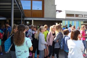 Bei traumhaftem Spätsommerwetter starteten die Schülerinnen und Schüler am Freitag, 22. September 2017, zur Dorfstafette. In Fünferteams mussten die Jugendlichen die Disziplinen Biathlon (Rennen & Schiessen), Inline-Skaten, Velofahren und Schlusslauf absolvieren. Der Bewerb führte die Schülerinnen und Schüler durch Montlingen, Oberriet und Kriessern. Der Einsatz war sehr gut und so konnten am Ende alle sehr stolz auf ihre Leistung sein.