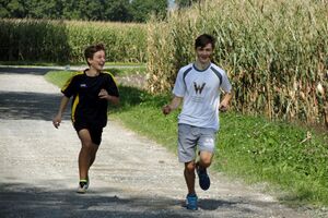 Die Dorfstafette ist Teil des jährlich stattfindenden Bewegungswettbewerbes, bei dem Die Jugendlichen mehrere verschiedene sportliche Aktivitäten absolvieren müssen. Dabei sind sie meist Teil eines zufällig erstellten Teams und müssen - neben der körperlichen Ertüchtigung - auch Teamfähigkeit beweisen. Am Ende des Schuljahres werden dann die Gesamtsieger prämiert. (nt)