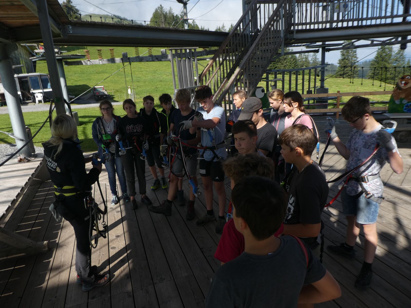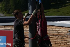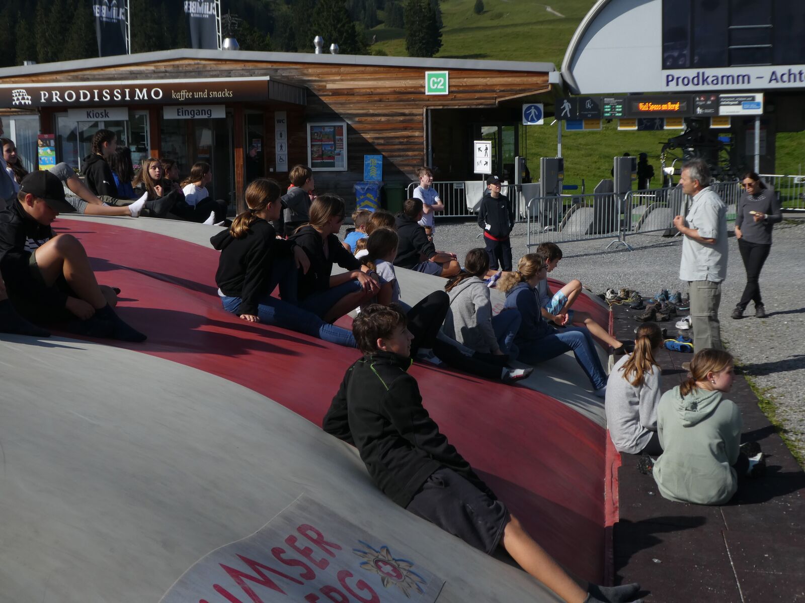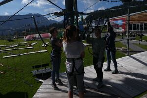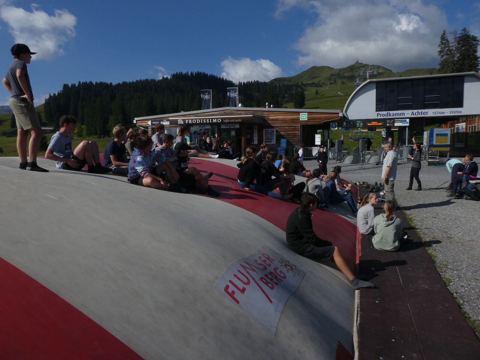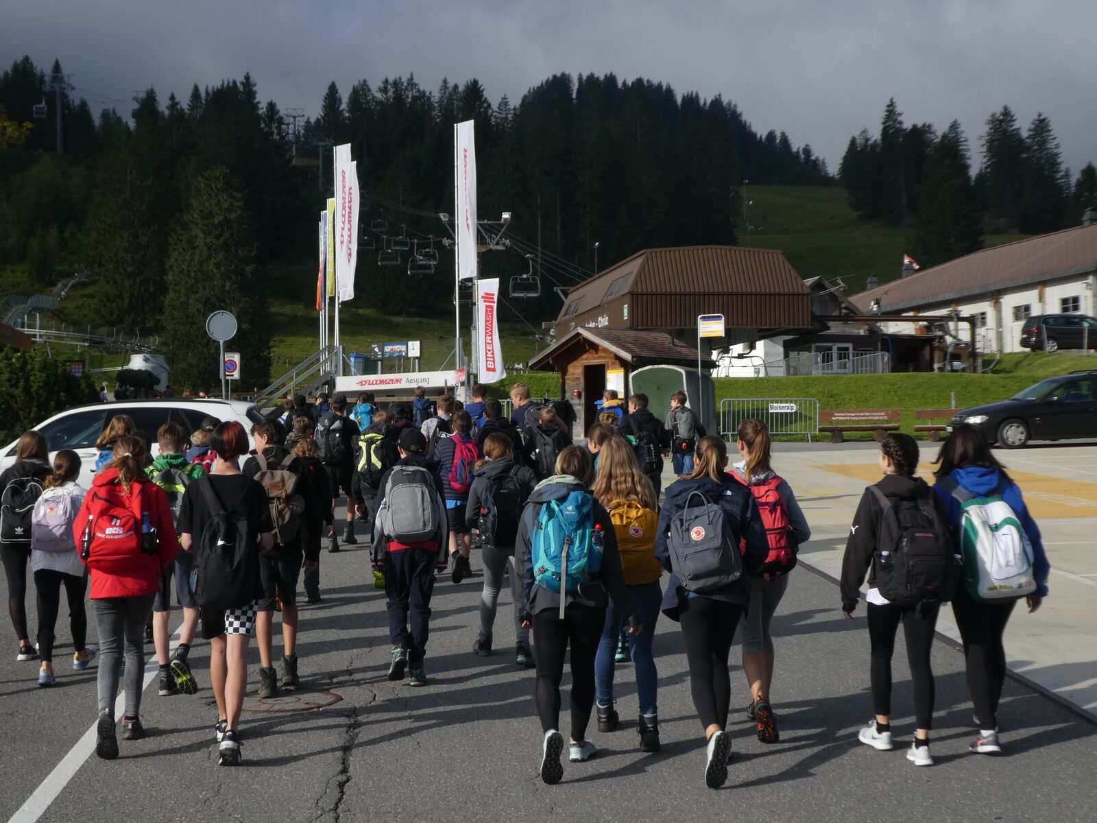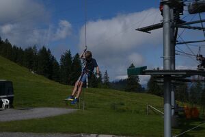 Die Klassen 2r, 2sa und 2sb trafen sich frühmorgens am Bahnhof Oberriet. Mit dem Zug ging es nach Unterterzen, wo die drei Klassen dann in die Gondeln einstiegen. Nach einer kurzen Wanderung durften die Oberstufenschülerinnen und -schüler dann ihre Kletterkünste auf dem Cliimber beweisen oder als «fliegende Füchse» durch die Luft sausen. Gestärkt durch eine Bratwurst oder ein Sandwich marschierte man dann zum Floomzer, um mit dieser Rodelbahn den Abstieg in Angriff zu nehmen. Zurück in der Gondel erlebten die Schülerinnen und Schüler, vor allem aber auch das Lehrpersonal, ein paar bange Minuten: Aufgrund starker Windböen konnten die Gondeln nur sehr langsam fahren. Das hatte zur Folge, dass beim Ausstieg alle ihre Kräfte mobilisieren mussten, um in einem Schlussspurt den Zug noch zu erwischen. Glücklicherweise klappte dies und alle kamen rechtzeitig zu Hause an.