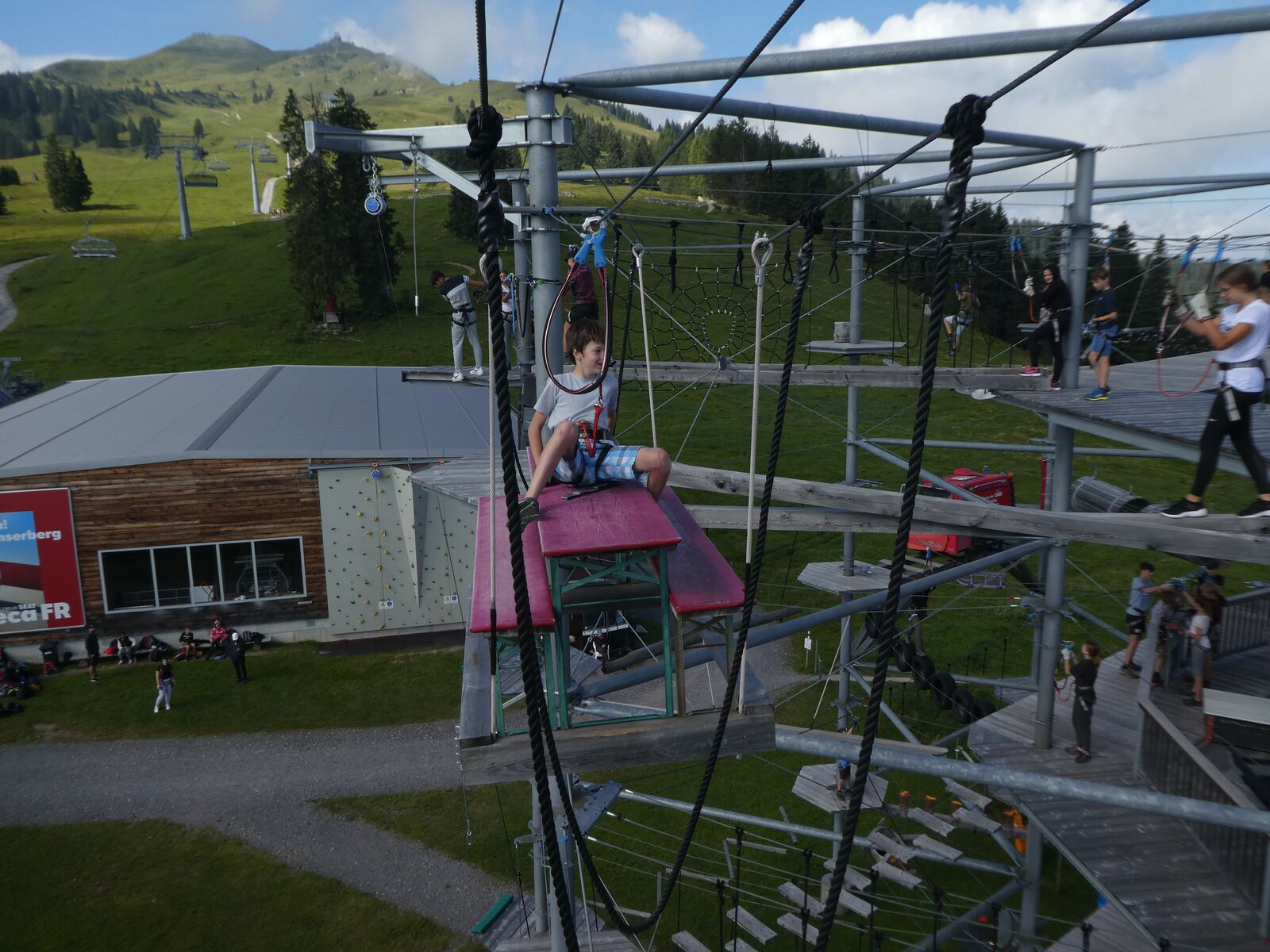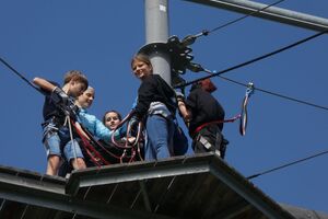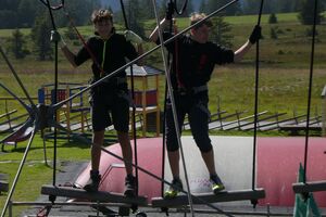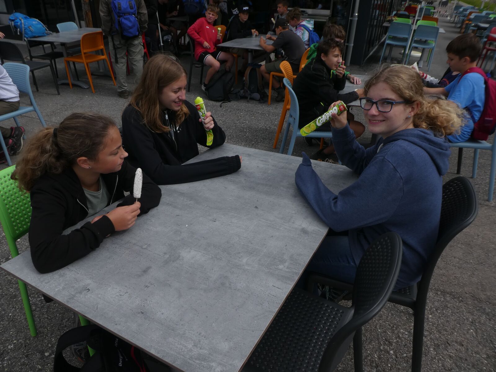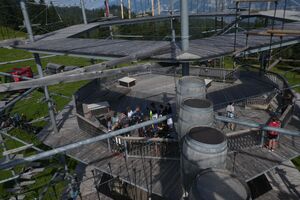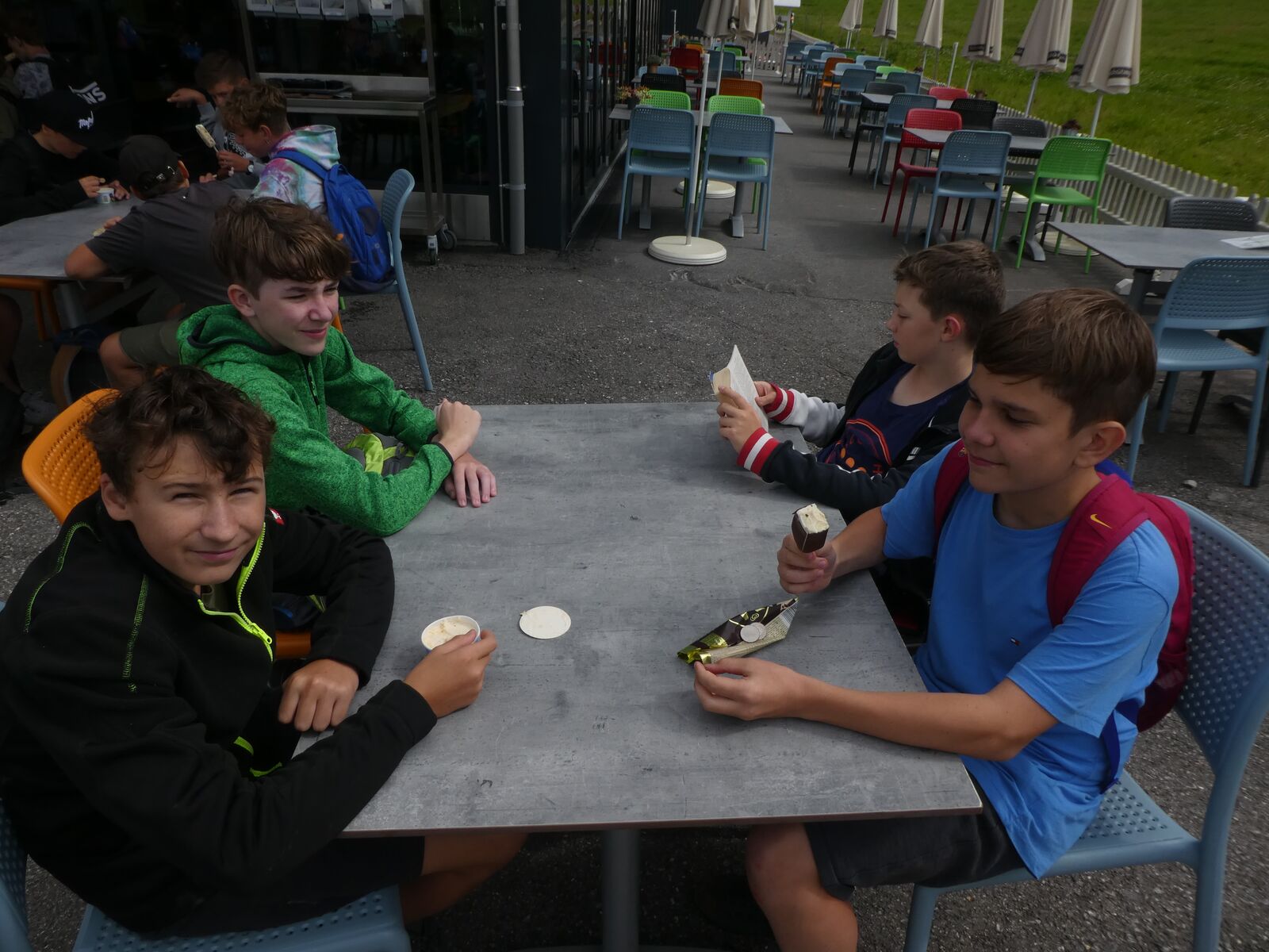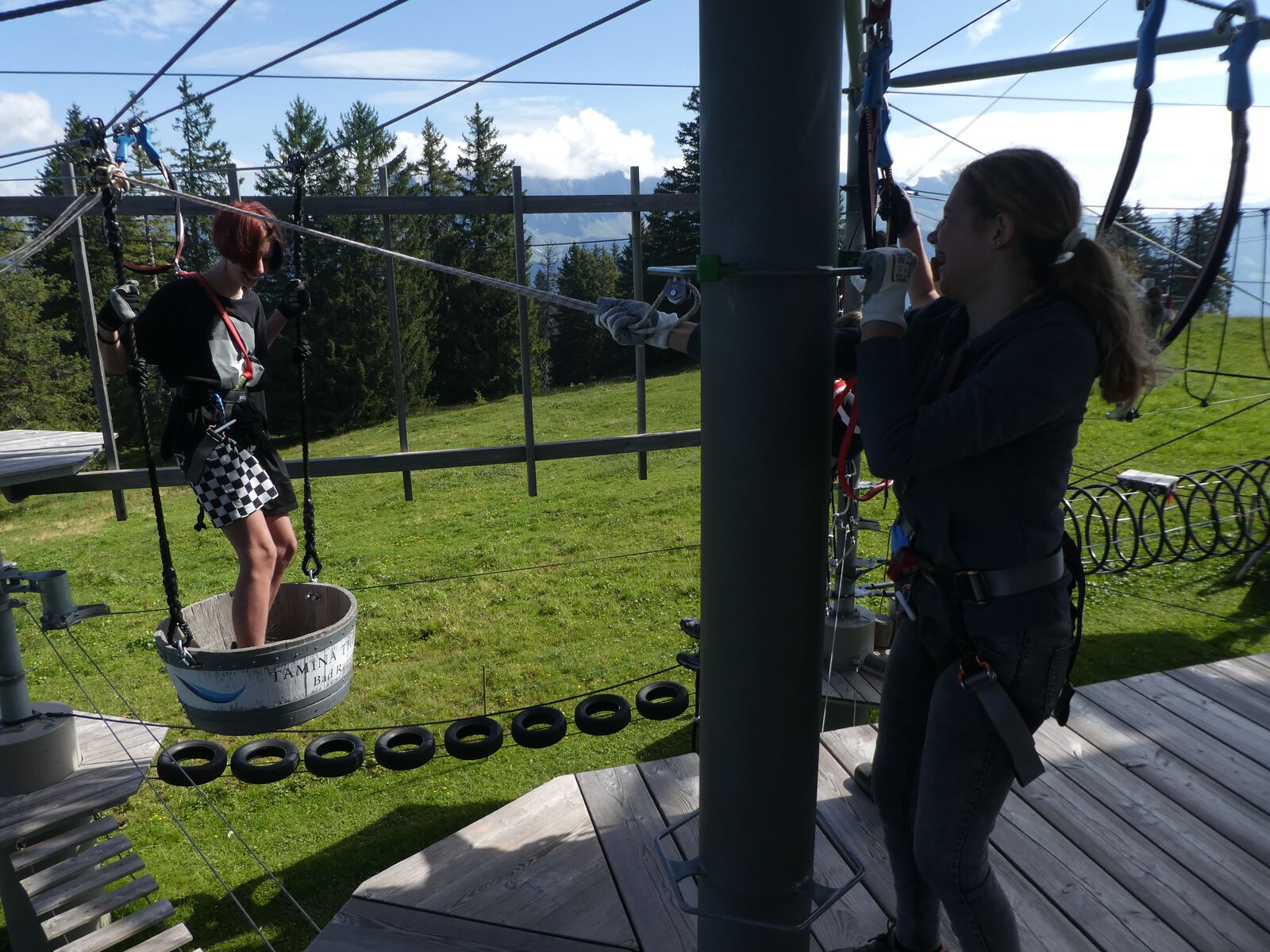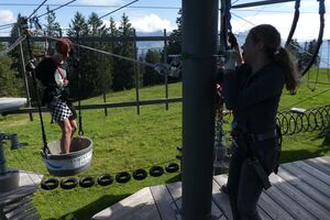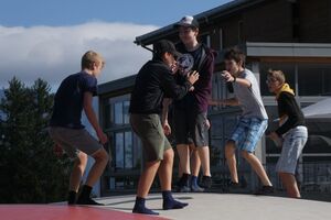 Die Klassen 2r, 2sa und 2sb trafen sich frühmorgens am Bahnhof Oberriet. Mit dem Zug ging es nach Unterterzen, wo die drei Klassen dann in die Gondeln einstiegen. Nach einer kurzen Wanderung durften die Oberstufenschülerinnen und -schüler dann ihre Kletterkünste auf dem Cliimber beweisen oder als «fliegende Füchse» durch die Luft sausen. Gestärkt durch eine Bratwurst oder ein Sandwich marschierte man dann zum Floomzer, um mit dieser Rodelbahn den Abstieg in Angriff zu nehmen. Zurück in der Gondel erlebten die Schülerinnen und Schüler, vor allem aber auch das Lehrpersonal, ein paar bange Minuten: Aufgrund starker Windböen konnten die Gondeln nur sehr langsam fahren. Das hatte zur Folge, dass beim Ausstieg alle ihre Kräfte mobilisieren mussten, um in einem Schlussspurt den Zug noch zu erwischen. Glücklicherweise klappte dies und alle kamen rechtzeitig zu Hause an.