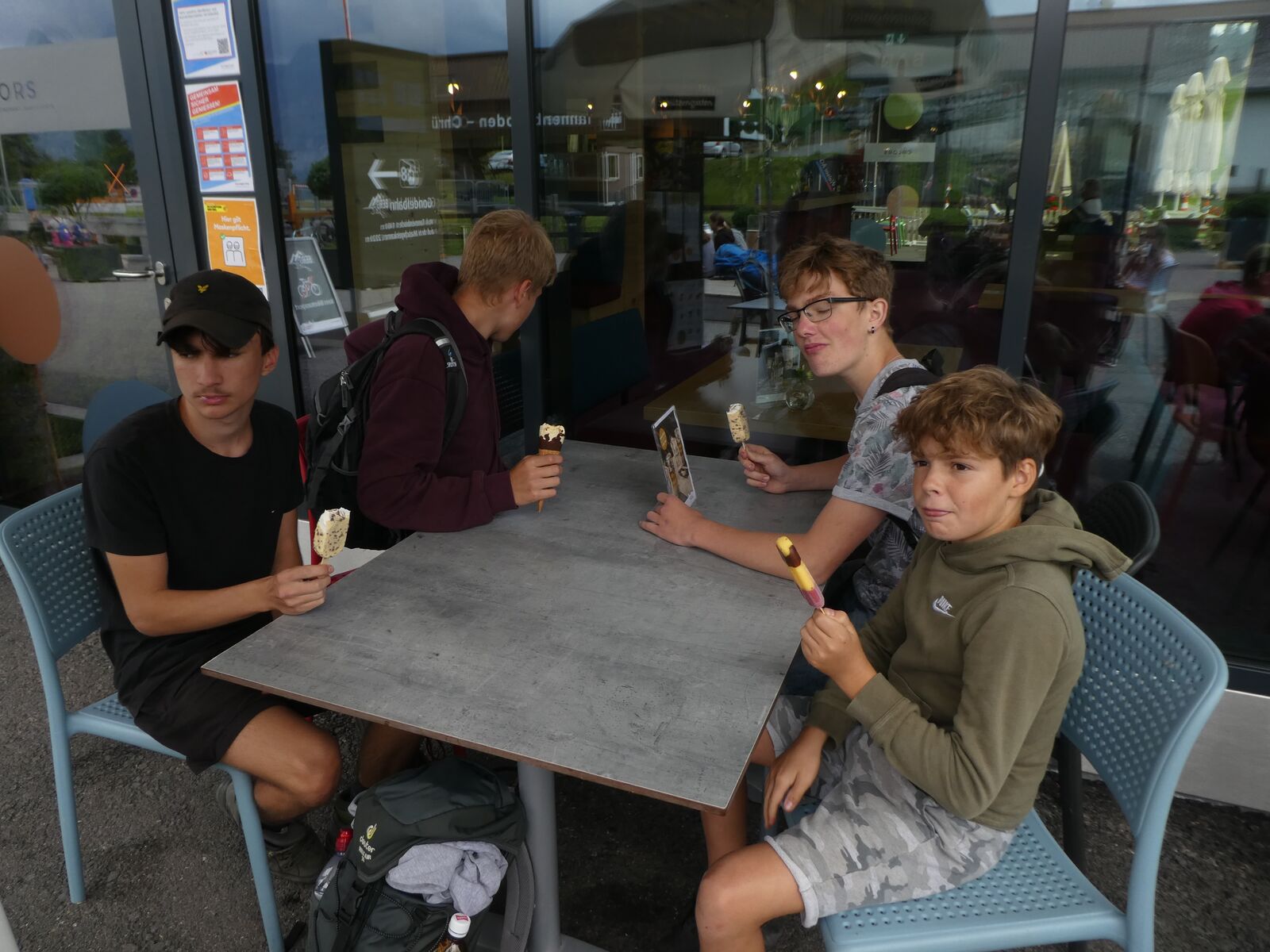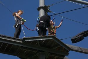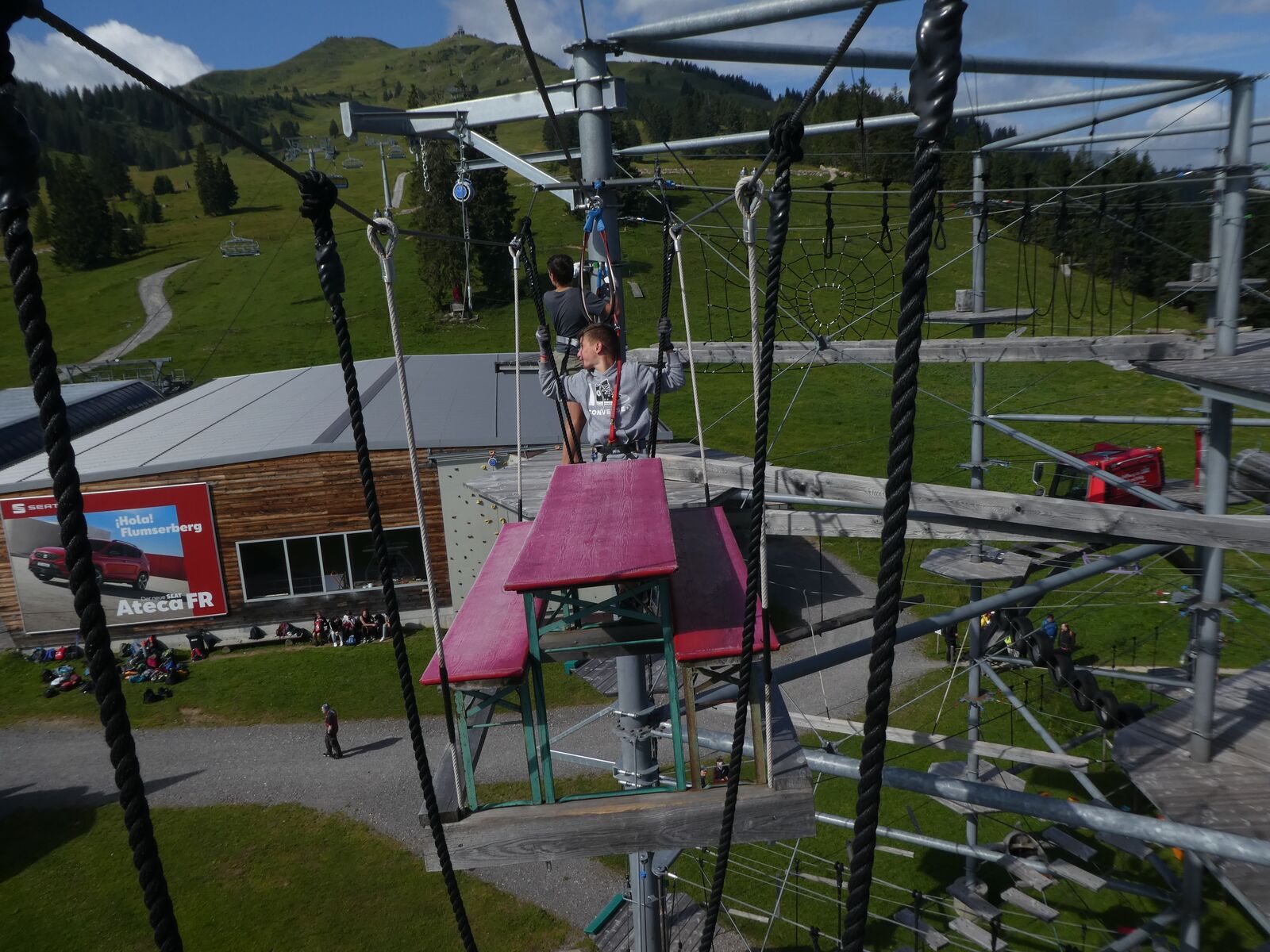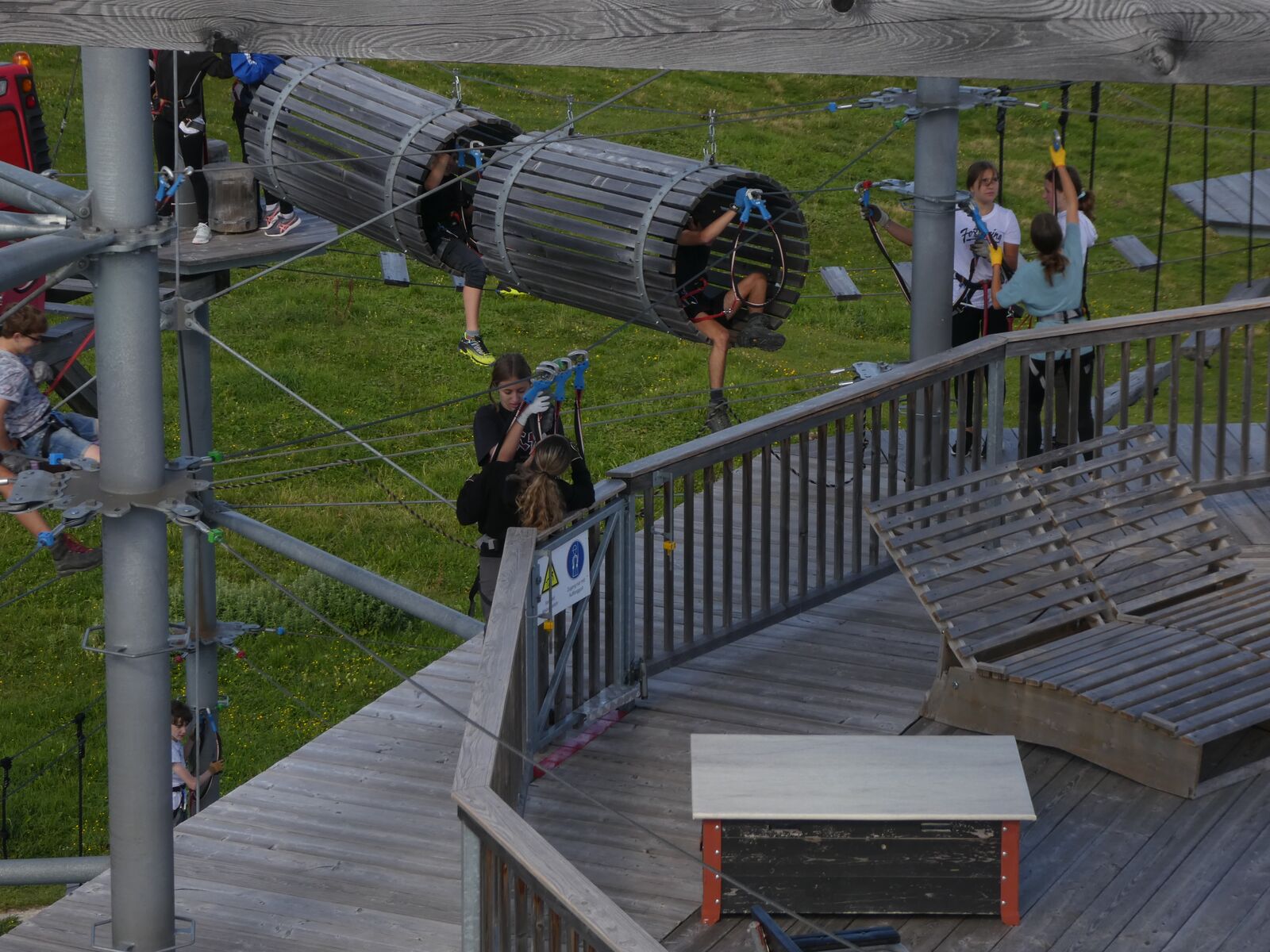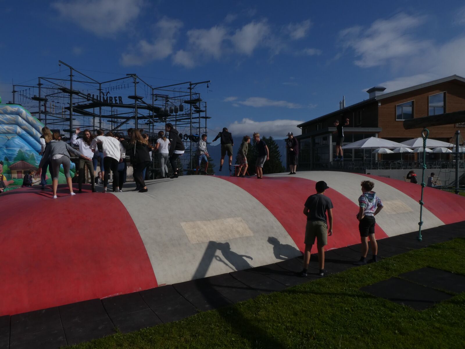 Die Klassen 2r, 2sa und 2sb trafen sich frühmorgens am Bahnhof Oberriet. Mit dem Zug ging es nach Unterterzen, wo die drei Klassen dann in die Gondeln einstiegen. Nach einer kurzen Wanderung durften die Oberstufenschülerinnen und -schüler dann ihre Kletterkünste auf dem Cliimber beweisen oder als «fliegende Füchse» durch die Luft sausen. Gestärkt durch eine Bratwurst oder ein Sandwich marschierte man dann zum Floomzer, um mit dieser Rodelbahn den Abstieg in Angriff zu nehmen. Zurück in der Gondel erlebten die Schülerinnen und Schüler, vor allem aber auch das Lehrpersonal, ein paar bange Minuten: Aufgrund starker Windböen konnten die Gondeln nur sehr langsam fahren. Das hatte zur Folge, dass beim Ausstieg alle ihre Kräfte mobilisieren mussten, um in einem Schlussspurt den Zug noch zu erwischen. Glücklicherweise klappte dies und alle kamen rechtzeitig zu Hause an.