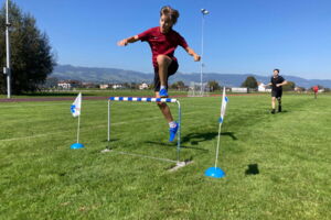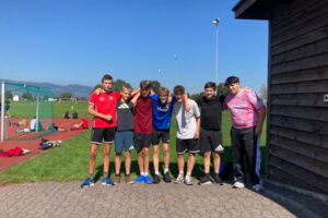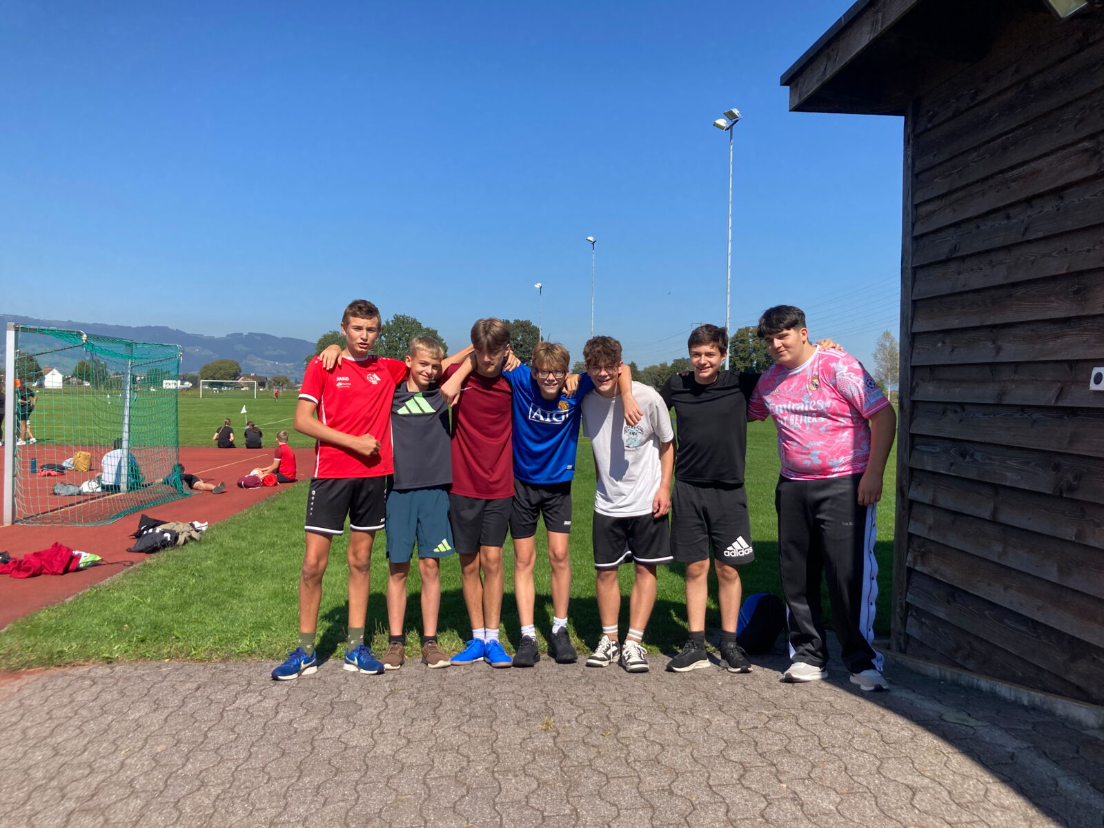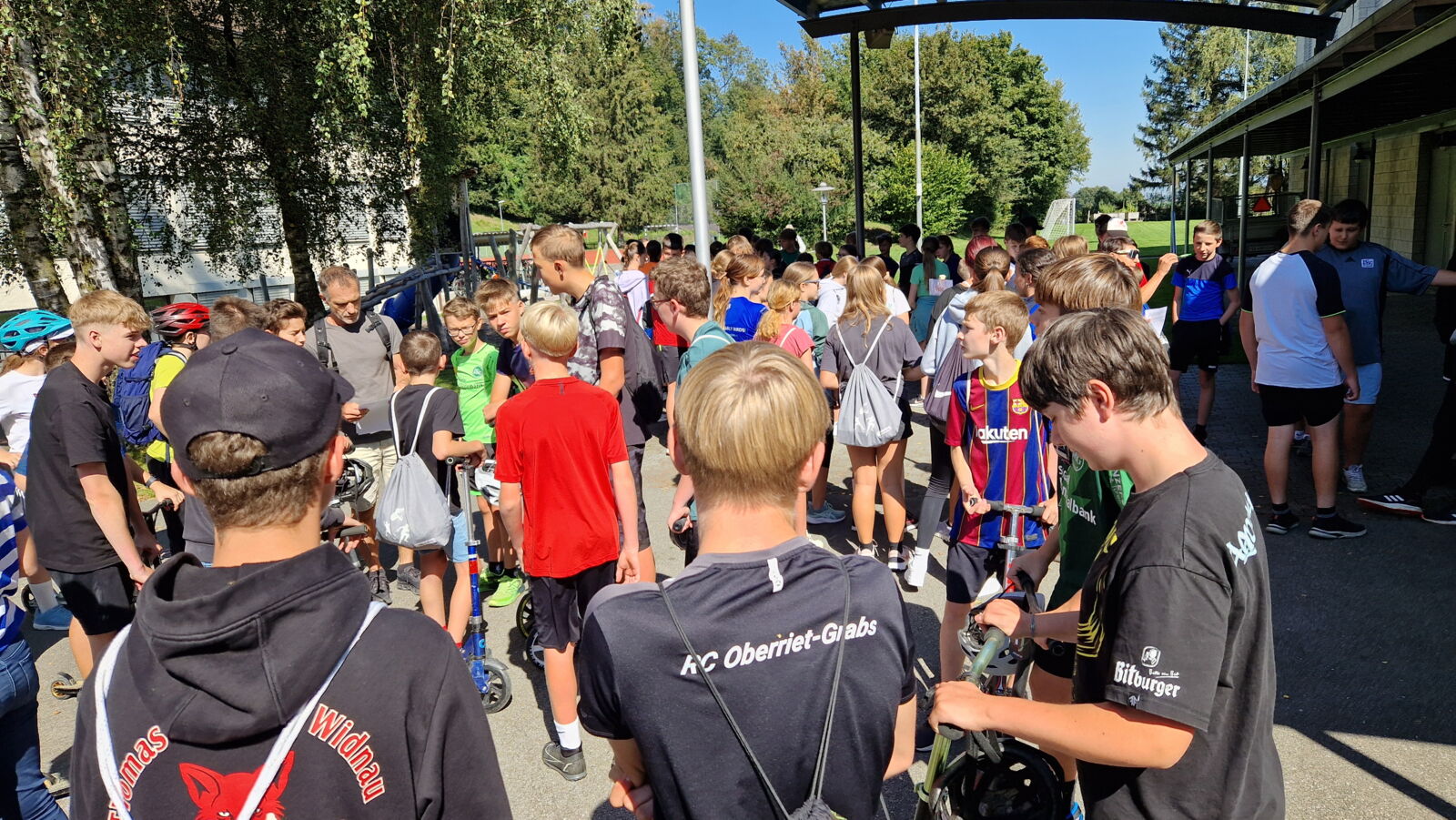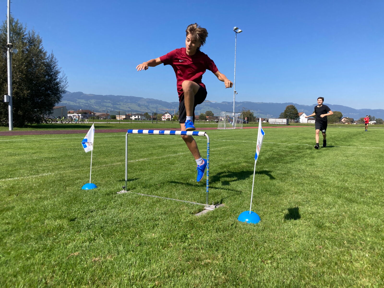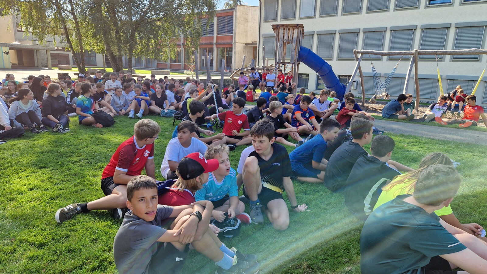 Die Dorfstafette hat am OZ Montlingen schon eine lange Tradition, auch wenn die letzte Auflage pandemiebedingt schon einige Jahre zurückliegt. Die Idee besteht darin, dass zufällig und quer über alle Klassen und Jahrgänge erstellte Teams einen sportlichen Wettkampf bestreiten. Schwimmen, Biathlon (Lauf und Schiessen), Kickboard, Velo, Lauf - das sind die fünf Disziplinen, welche zu bewältigen waren. Die frostigen Wassertemperaturen sorgten dafür, dass statt des Schwimmens ein Hürden-Lauf stattfand.