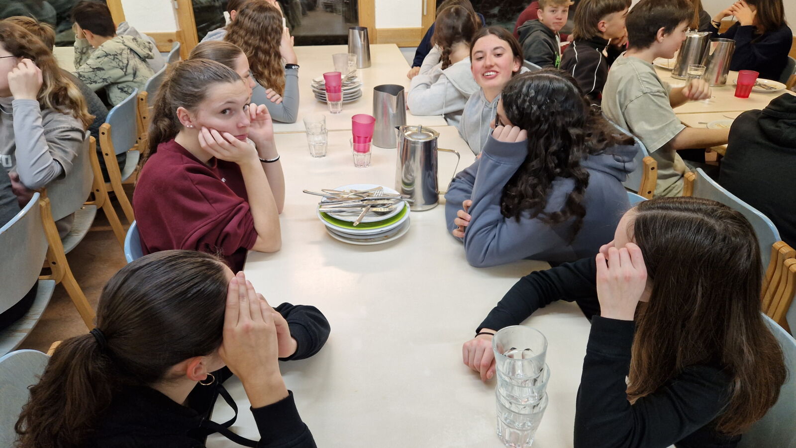 Zum Abschluss des reichhaltigen Lagerdaseins während der Oberstufe verbrachte die 3. Oberstufe ihr Winterlager in Scuol. Schon die Anreise genossen wir - im wahrsten Sinne des Wortes - in vollen Zügen. Nachdem es alle Schülerinnen und Schüler - teils mit einer Zusatzrunde über Chur - ins Unterengadin geschafft hatten, wartete ein tolles Skigebiet mit bestens präparierten Pisten auf die schneehungrigen Jugendlichen. Ein Tag war schöner als der andere und so kostete die Truppe bis zur letzten Sekunde am Freitag die sensationellen Bedingungen aus. Die Pisten wurden von allen bestens gemeistert - sogar von unseren Anfängerinnen, die teilweise zum ersten Mal auf den Skiern standen. Chapeau!