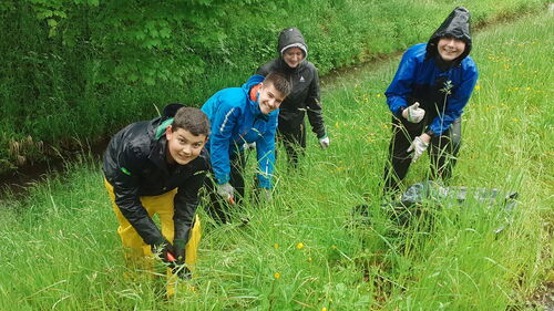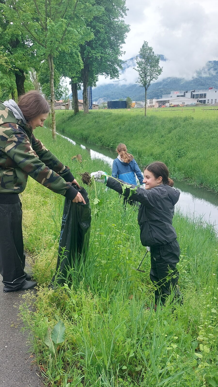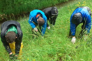 Zwei Klassen des OZ Montlingen leisteten im Mai einen Neophyten-Einsatz am Zapfenbach zwischen Montlingen und Kriessern. Nach einer Einführung durch den Fachmann Sascha Weder gingen die Jugendlichen gleich an die Arbeit. Das regnerische Wetter war dabei Hilfe und Hindernis zugleich: Einerseits liessen sich die Pflanzen relativ leicht samt Wurzel aus dem Boden reissen, andererseits waren die Jugendlichen dem niederprasselnden Regen ausgesetzt. Mehrere Säcke konnten die Schülerinnen und Schüler schliesslich mit Neophyten füllen und damit einen wertvollen Einsatz für die heimische Pflanzenwelt leisten.