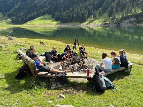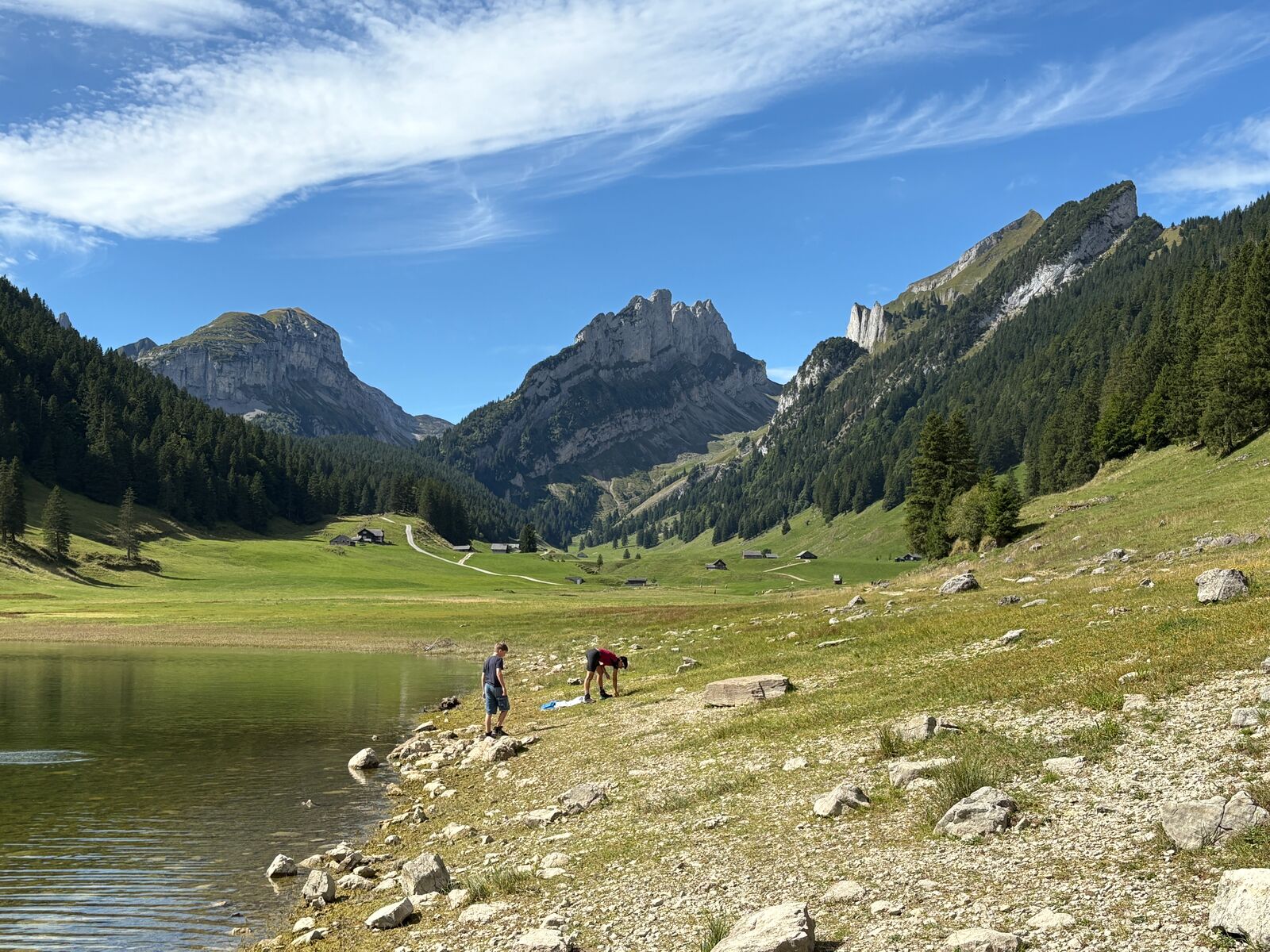 Die Klasse 1r verbrachte zwei tolle Tage im Alpstein. Mit der Seilbahn ging es auf den Hohen Kasten, dann zu Fuss zum Sämtisersee und nach einem Abstecher in die Furgglenhöhle zur Bollenwees. Baden im Fälensee, Grillieren und Spiele am Abend rundeten den ersten Tag ab. Am zweiten Tag wanderten wir zum Ruhesitz, sausten mit den Trottinetts ins Tal und liessen die Reise gemütlich in Weissbad ausklingen.
