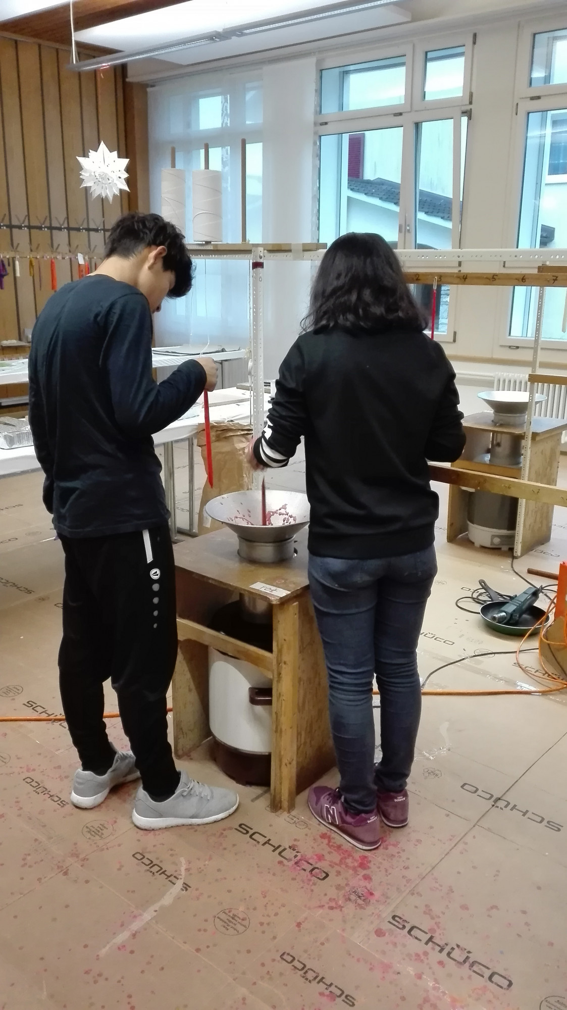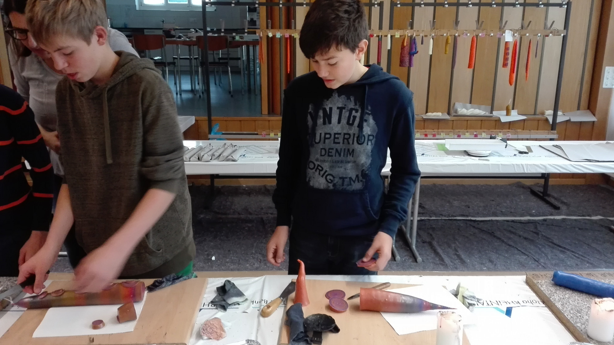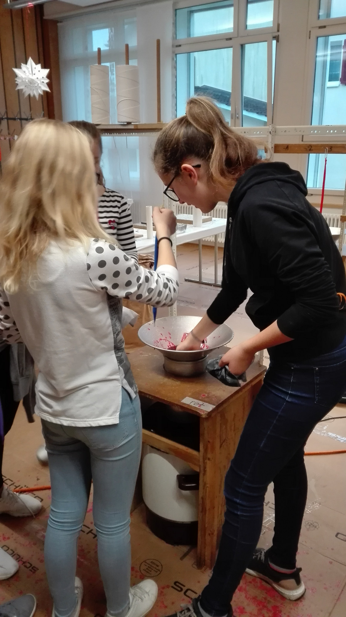 Die Schülerinnen und Schüler der Klasse 1r stellten beim Kerzenziehen ihre Kreativität, Ausdauer, Kollegialität und Geschicklichkeit unter Beweis. So entstanden wunderschöne Kerzen.