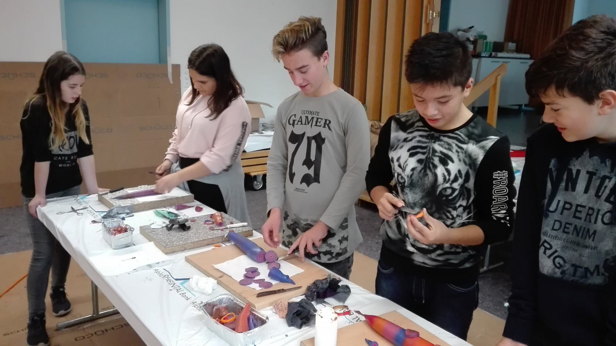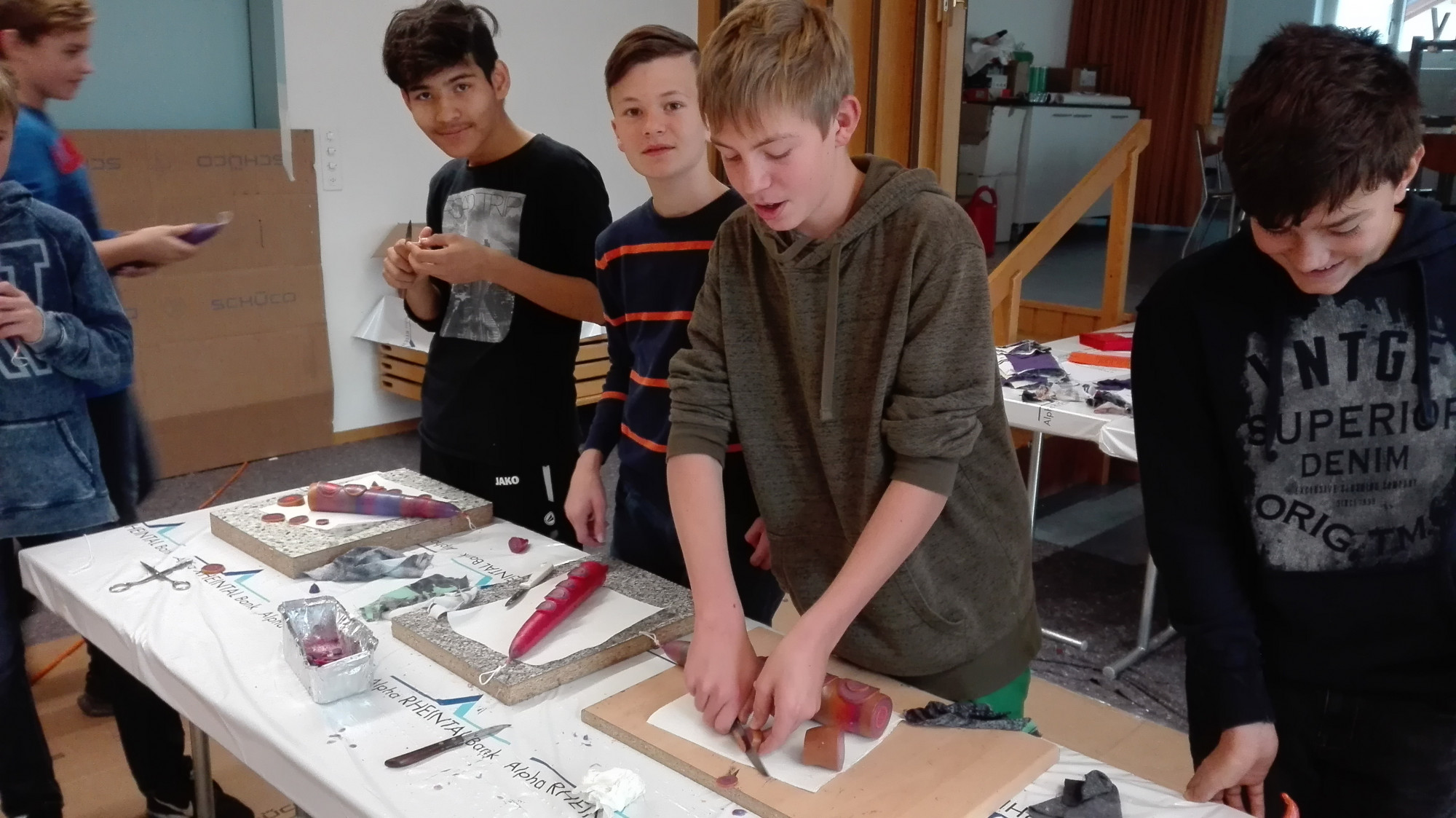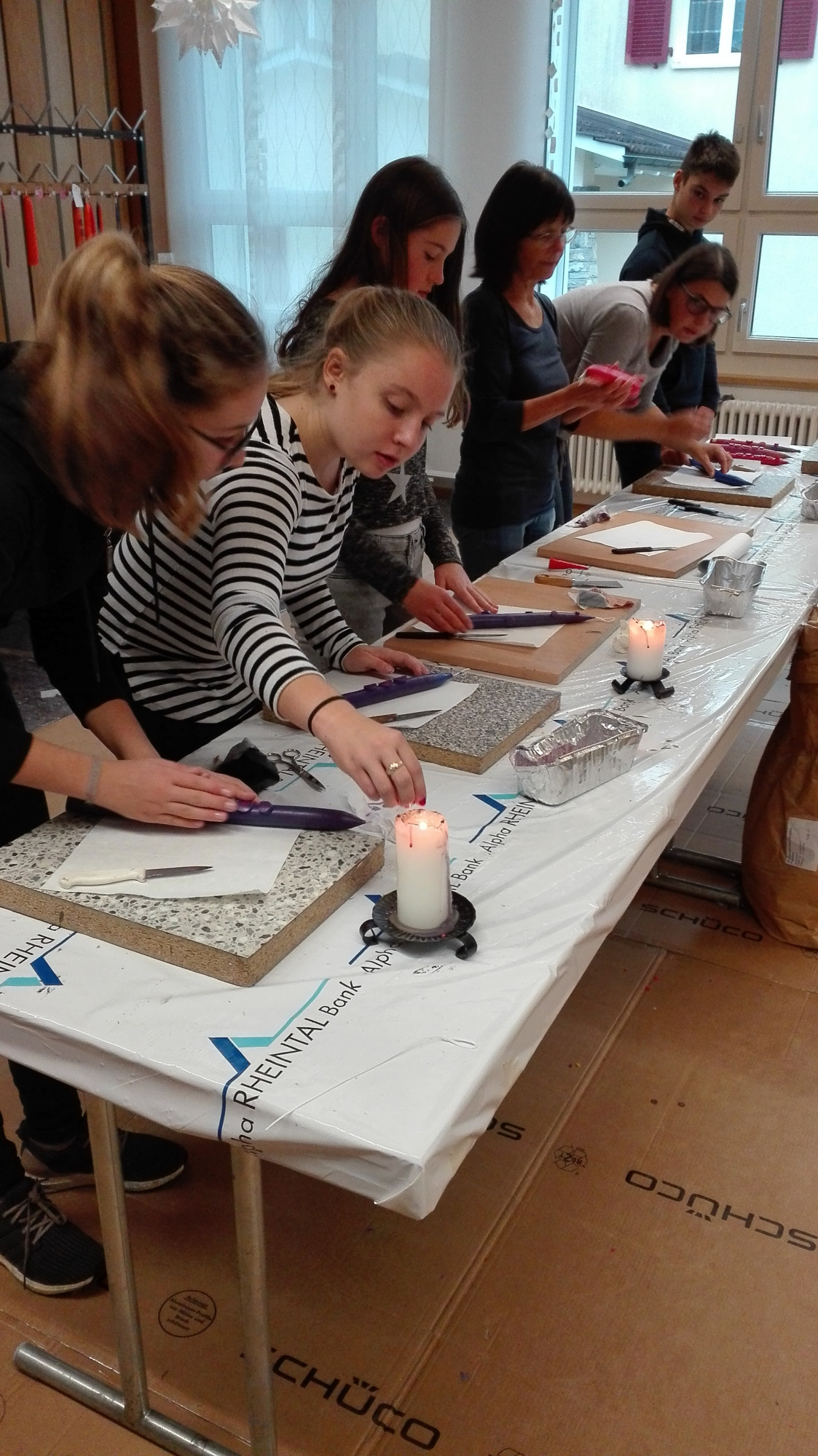 Die Schülerinnen und Schüler der Klasse 1r stellten beim Kerzenziehen ihre Kreativität, Ausdauer, Kollegialität und Geschicklichkeit unter Beweis. So entstanden wunderschöne Kerzen.