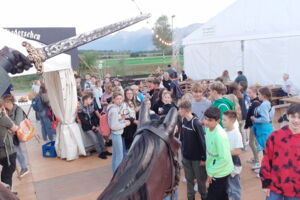 Im September besuchten 4 Klassen des OZ Montlingen die Freilichtbühne in Rüthi. Die Schüler und Schülerinnen hatten das Vergnügen, das böse Treiben «des kopflosen Reiters» hautnah mitzuerleben. Vor der Aufführung hatten die Jugendlichen zudem die Gelegenheit einen Blick hinter die Kulissen zu werfen.