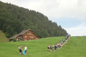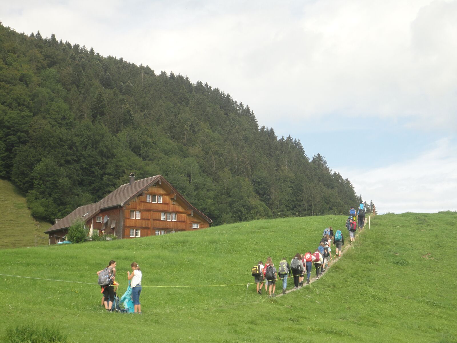 Am Montag, 24. August begaben sich die beiden ersten Sekklassen auf die zweitägige Schulreise. Mit dem Gaiserbähnli ging es via Gais und Appenzell nach Weissbad, wo die Wanderung startete. Nach einer guten halben Stunde trennten sich die Klassen, um sich nach dem Mittagessen zum Zvieri in der Scheidegg wieder zu treffen. Von dort wanderte man gemeinsam weiter bis zum Kronberg. Nach Spaghettiplausch, Werwölfen, Jassen und Blackstorys-Raten hiess es dann „Gute Nacht“.