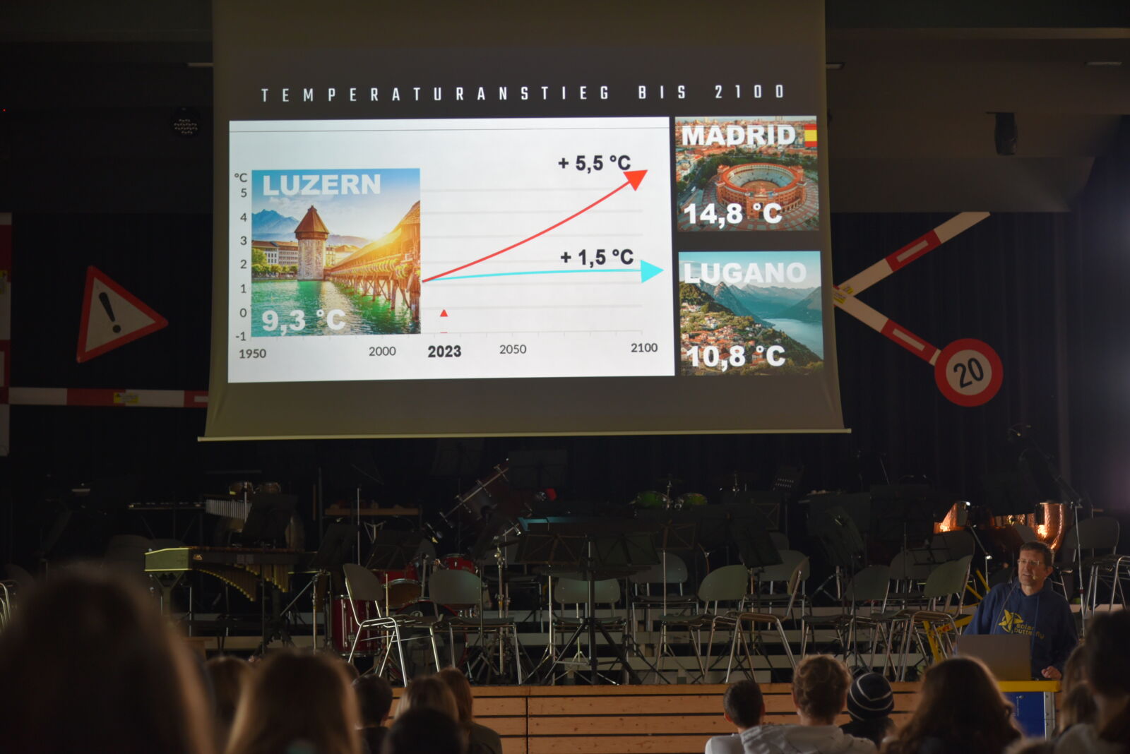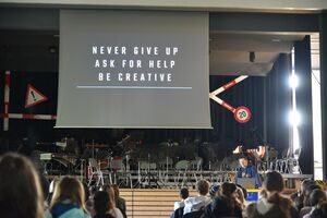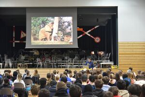 Ein zweiter Programmpunkt war der Vortrag von Louis Palmer selbst. Bereits in den 90er Jahren machte sich der Solarpionier Gedanken zum nachhaltigen, ressourcenschonenden Umgang mit dem Planet Erde. Louis Palmer tourte vor rund einem Jahrzehnt mit einem Solartaxi um die Welt und transportierte dabei hochrangige Politiker, wie beispielswiese Ban Ki-moon, was ihm weltweiten Bekanntheitsgrad einbrachte. Während der Pandemie, als die Möglichkeit für öffentliche Vorträge von heute auf morgen wegfiel, widmete sich Louis Palmer seinem neusten Projekt. Zusammen mit der Hochschule Luzern baute er den Solar Butterfly. Im Vortrag war es Louis Palmer wichtig nicht nur seine Idee rüberzubringen, sondern die jugendlichen Zuhörerinnen und Zuhörer zu ermutigen ihre eigenen Ziele zu verfolgen. Seine drei wichtigsten Aussagen waren: Never give up! Ask for help! Be creative!