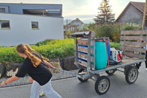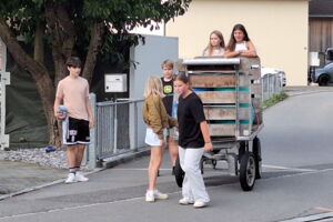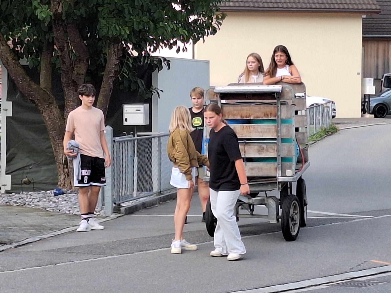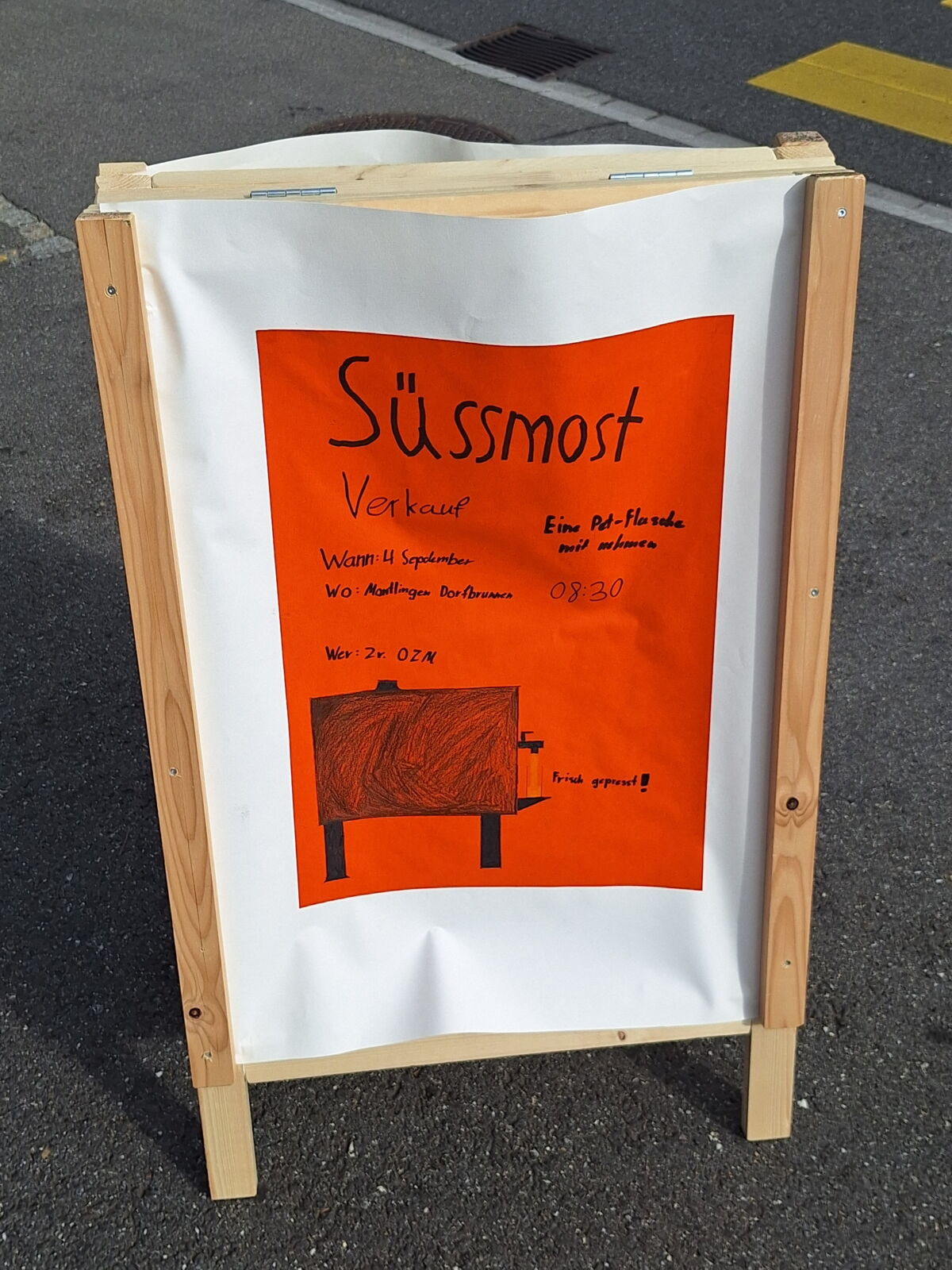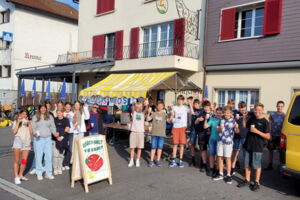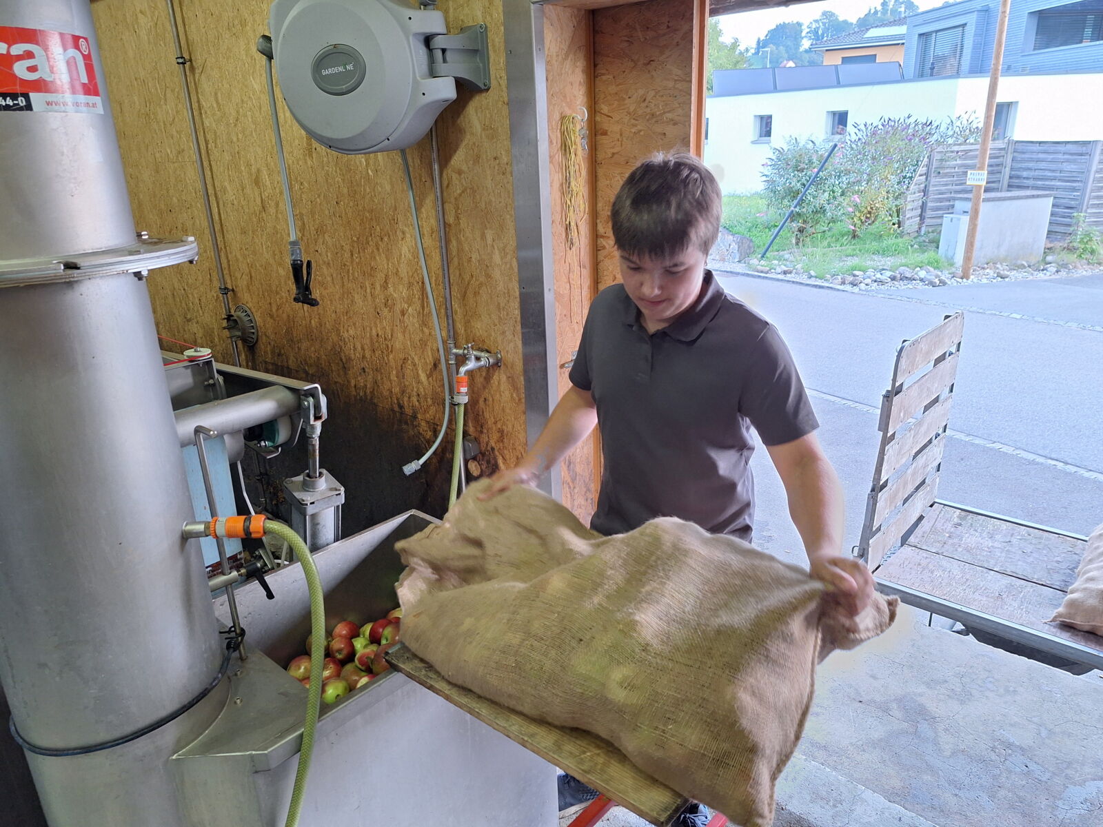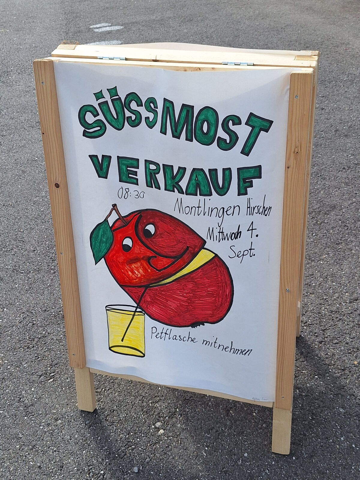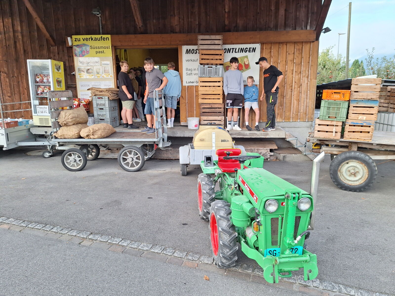 Die 2. Realklasse vom OZ Montlingen hat im September ihre fast schon traditionelle Süssmostaktion durchgeführt. Nach dem Auflesen der Äpfel, wurden diese am darauffolgenden Tag zu Süssmost gepresst und in den Dörfern Kriessern und Montlingen verkauft. Es wurden ca. 380 Liter Süssmost verkauft. Der Erlös aus dem Verkauf geht zur Hälfte in die Klassenkasse und an den Tierschutz Rheintal.