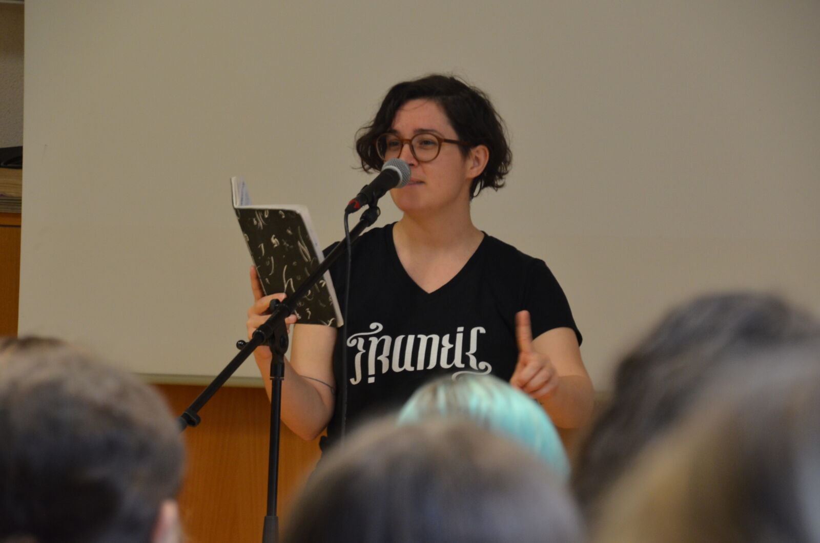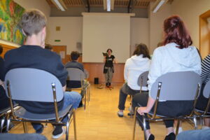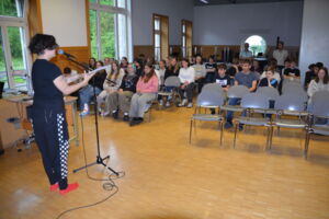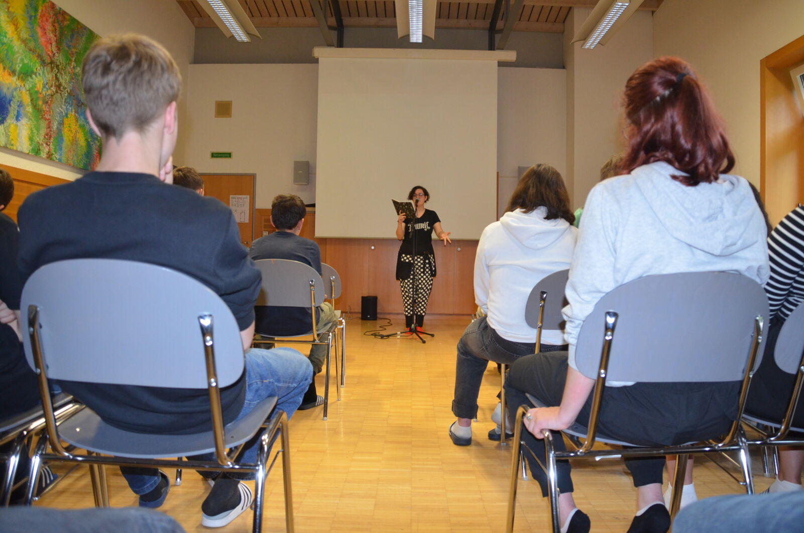 Poetry Slam goes OZM: Piera Cadruvi besuchte das OZ Montlingen und erklärte den Jugendlichen, was Poetry Slam ist. Diese Form der literarischen Wettbewerbes ist seit einem Vierteljahrhundert auch in der Schweiz beliebt und sorgt immer wieder für volle Hallen. Die gebürtige Bündnerin trug eigene Texte vor und bot einen Einblick in die Welt des "schnellen" Textes. Sie zeigte auf, wie ihr Weg vom Auftritt vor einer Handvoll Zuschauer bis zum Anlass im Hallenstadion Zürich vor Tausenden Besuchern war. Es waren kurzweilige und spannende 70 Minuten!