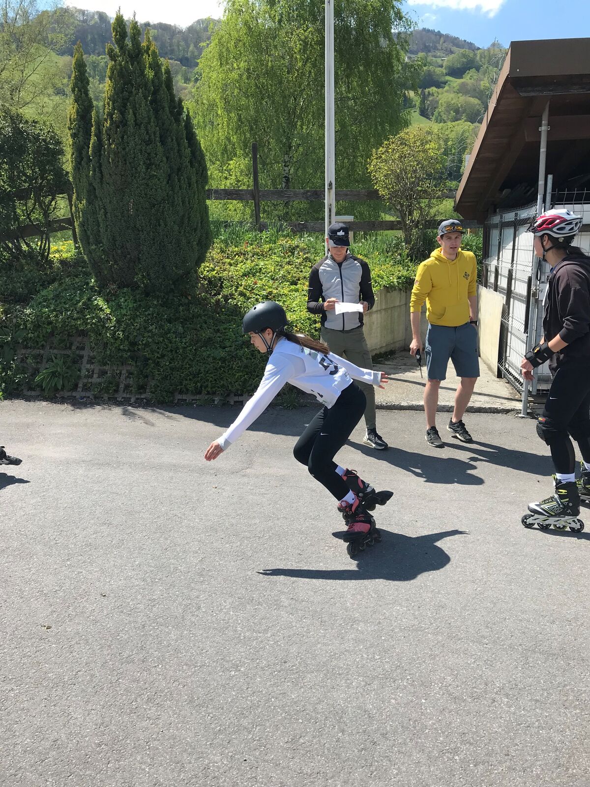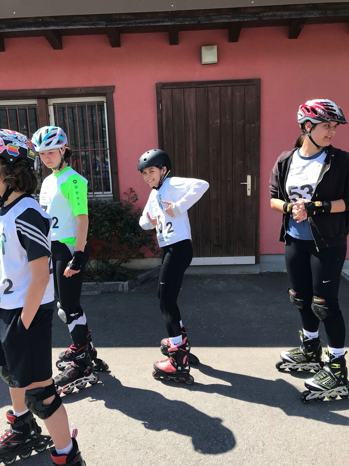 Am Mittwoch 27. April fand bei idealem Frühlingswetter die polysportive Stafette in Flums statt. Fünf Mädchen vom OZ Montlingen trafen sich noch vor dem Mittag zur Anreise nach Flums. Bereits um 12 Uhr fuhr das Postauto mit der Schwimmerin Melinda Ruch von Flums nach Mels ins Hallenbad. Melinda zeigte eine sehr gute Leistung über die 300m und konnte sich nach einigen Spitzenschwimmerinnen im Mittelfeld klassieren. Das bedeutete eine gute Ausgangsposition für die Inlinerin Stella Büchel. Der Inlinestart war wieder zurück in Mels. Es erfolgte dort ein Jagdstart, wobei die Inliner mit den schnellsten Schwimmern im Team als erstes starten durften und die nachfolgenden dann gemäss Rückstand im Schwimmen. Stella konnte die gute Position halten und kämpfte erfolgreich um jeden Meter. Nach der Übergabe wiederum beim Fussballplatz in Flums nahm Jana Kluser ihre Strecke über 2.5 Kilometer unter ihre Füsse. Jana teilte ihre Kräfte optimal ein und absolvierte die Strecke mit der sechstbesten Zeit bei den Mädchen. Als nächstes startete Elin Loher mit dem Mountainbike. Auf dem ersten Teil der Strecke hatte sie Rückenwind, auf dem zweiten Teil dann leider Gegenwind. Elin hatte zum Glück noch genügend Reserven um nochmals mit viel Kraft in die Pedalen zu treten. Zurück in Mels übergab Elin an ihre jüngere Schwester Aino, welche zum Schluss einen Biathlon absolvieren durfte. Nach 1.5 Kilometer laufen mussten fünf Schuss liegend mit einem Lasergewehr gemacht werden und anschliessend noch einmal 1 Kilometer gelaufen werden. Vor dem Lauf hatten alle die Möglichkeit das Schiessen auf die 10 Meter-Distanz auszuprobieren. Nach der Vorermüdung aus dem Lauf war es dann natürlich viel schwieriger zu treffen. Dank ihrer guten Laufleistung kompensierte Aino die drei Fehlschüsse inklusive Strafrunde aber bestens und kam sogar als drittes Mädchen auf der Biathlonstrecke ins Ziel. Mit dieser Aufholjagd resultierte am Schluss ein toller achter Rang. Da die Mädchen aus Montlingen mit drei Schülerinnen aus der ersten Oberstufe am Start waren und gegen einige ältere Mädchen antreten mussten ist dieses Resultat umso wertvoller.