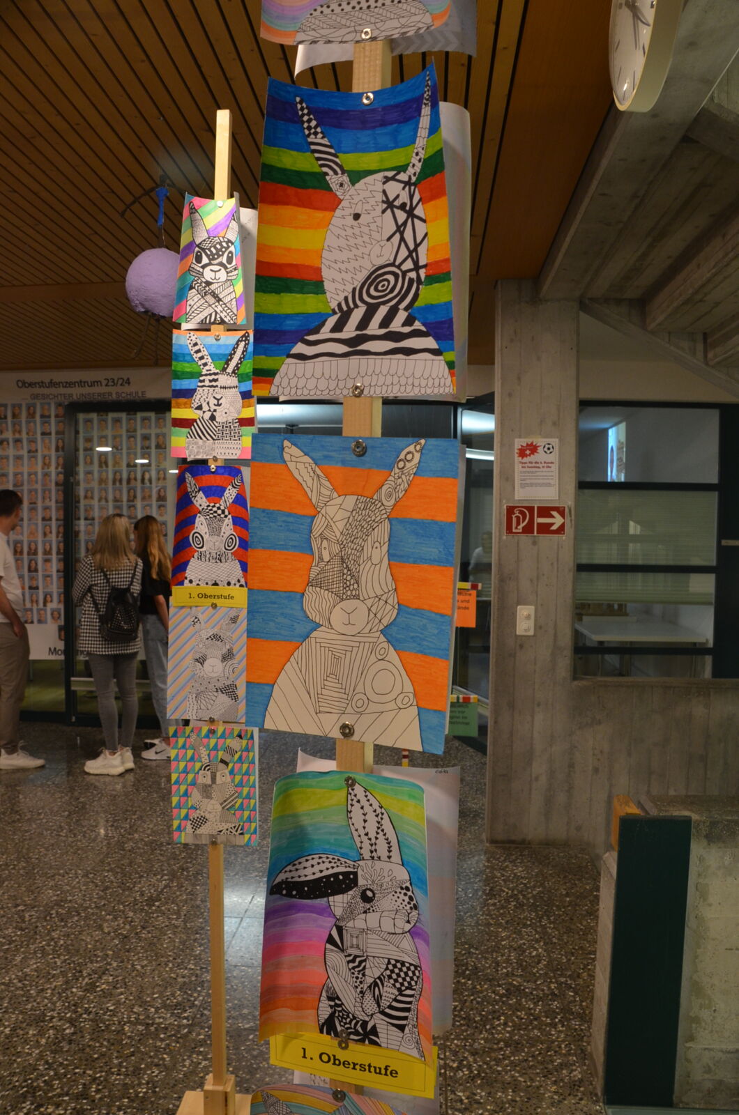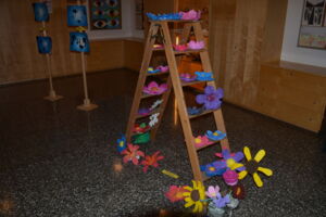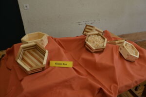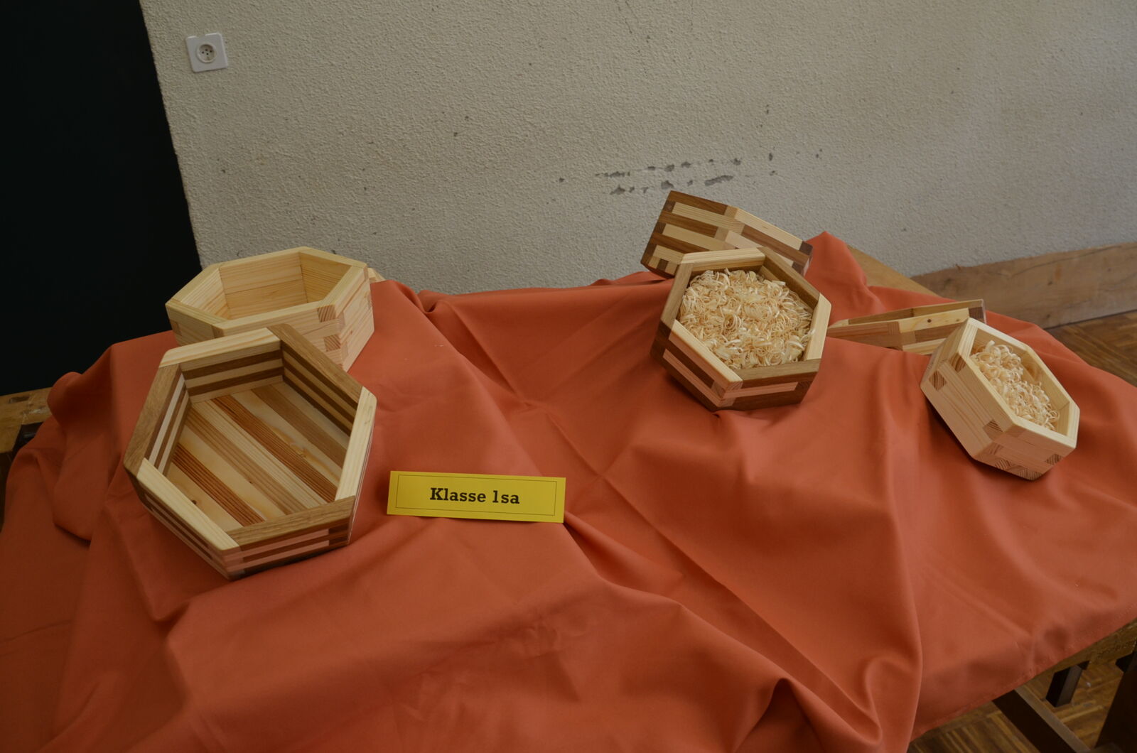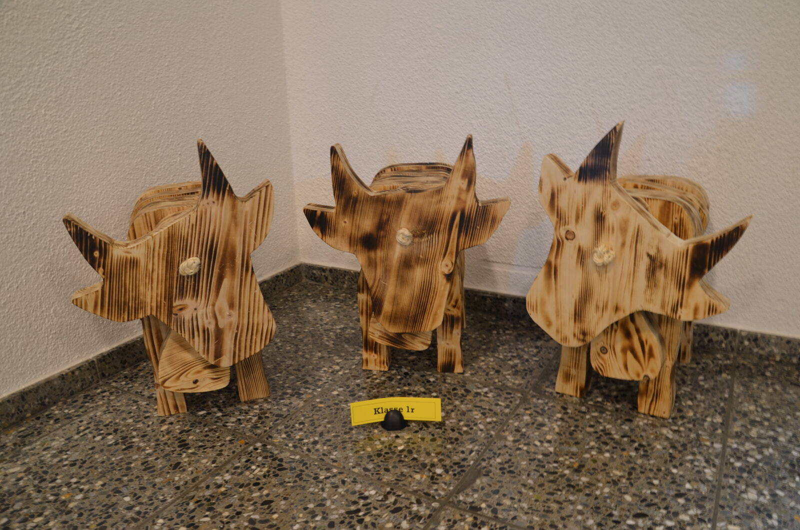 Auch die Jugendlichen der ersten und zweiten Klassen konnten Textil- Werk- und Kunstarbeiten ausstellen. Diese hatten sie in den verschiedensten Fächern und auch während der Sondertage hergestellt.