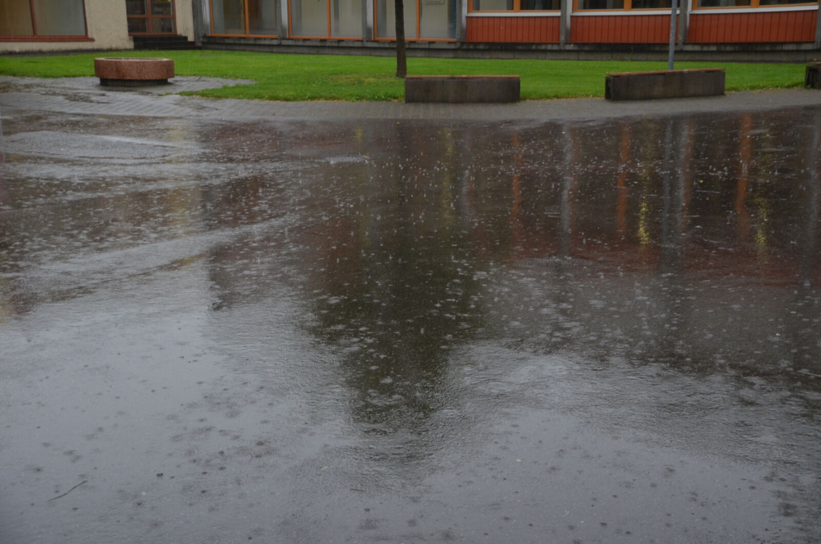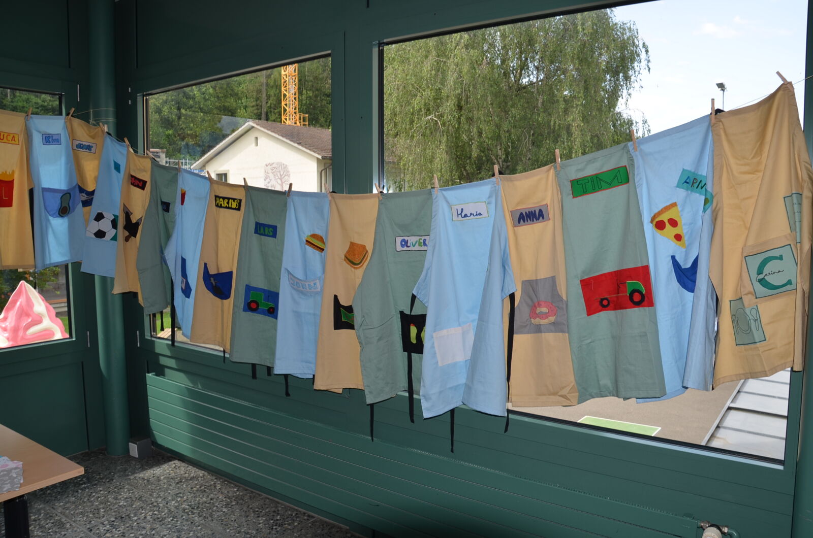 Vom Regen wurde die auch die gut besuchte Festwirtschaft heimgesucht. Schnell wurden die Festbänke unter Dach gebracht und dort liess man die Schulausstellung auch gemütlich ausklingen.