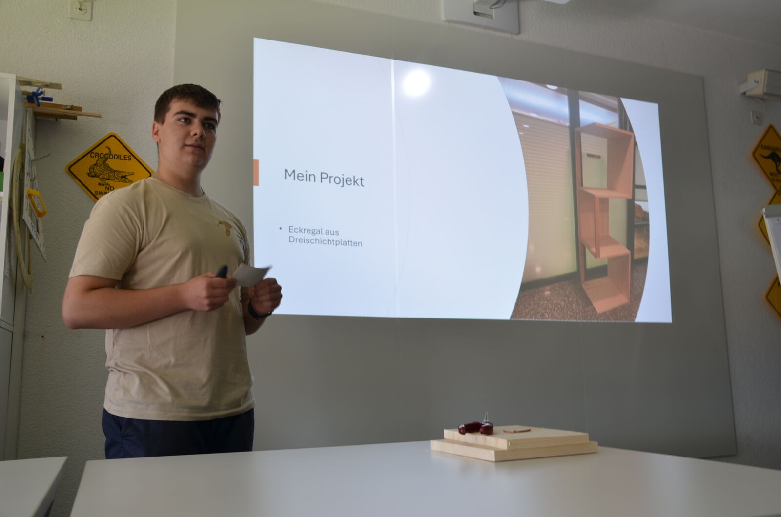 Hauptmagnet der Schulausstellung war wie jedes Jahr die Schau der in diesem Schuljahr geschaffenen Projektarbeiten. Die Jugendlichen der Abschlussklassen hatten sich ein halbes Jahr lang einen Nachmittag lang nur einem selbst gewählten Projekt gewidmet und konnten nun stolz ihre Werke präsentieren. Die Phantasie, die Kreativität und die Arbeitsmoral begeisterte die Besucher. Aus einer alten Tür eine Garderobe zu erstellen, einen Reiseführer für das Rheintal zu schreiben, einen Brunnen aus Beton zu bauen, ein Kinderspielbuch zu verfassen – die Ideen für die Projektarbeiten kannten (fast) keine Grenzen. Die Schülerinnen und Schüler stellten ihre Arbeiten nicht nur aus, sondern schilderten in jeweils knapp 10-minütigen Präsentationen auch, wie es ihnen bei der Erstellung und Dokumentation ihrer Arbeiten ergangen war.