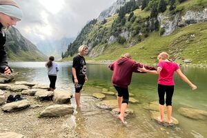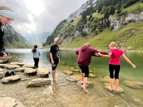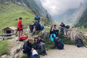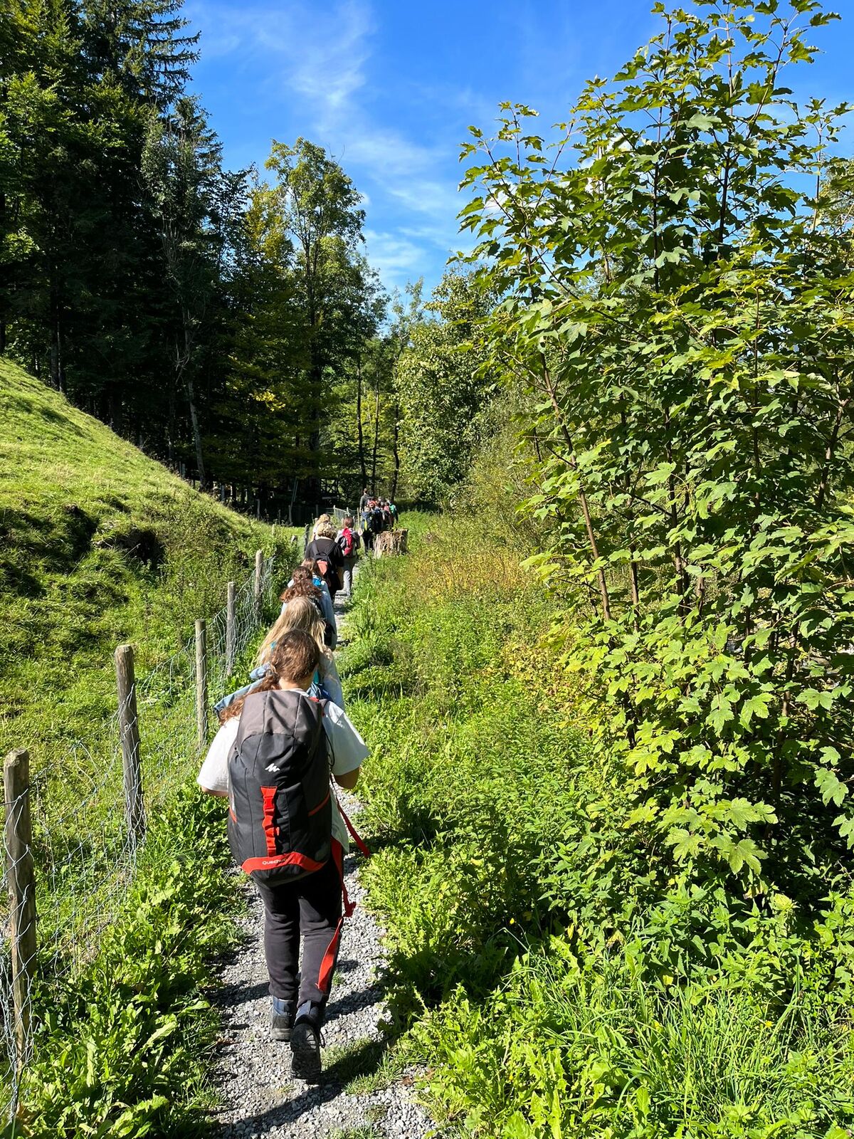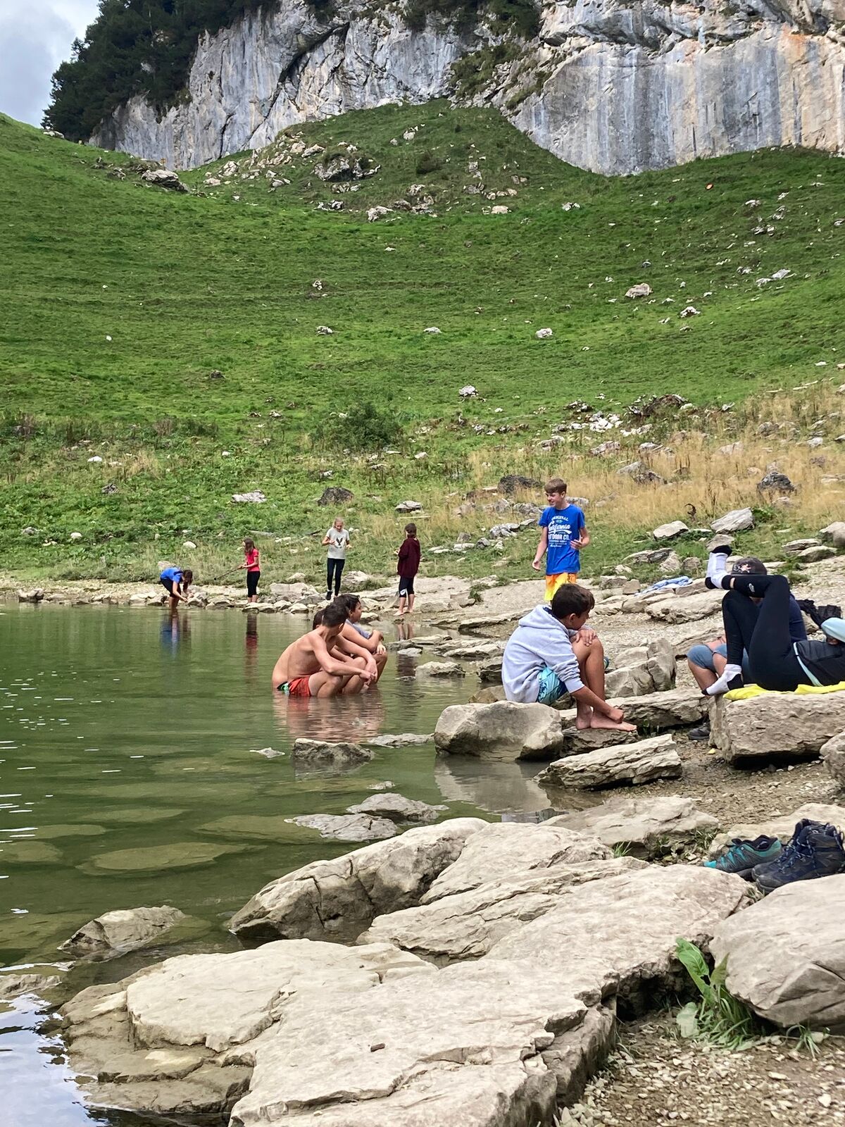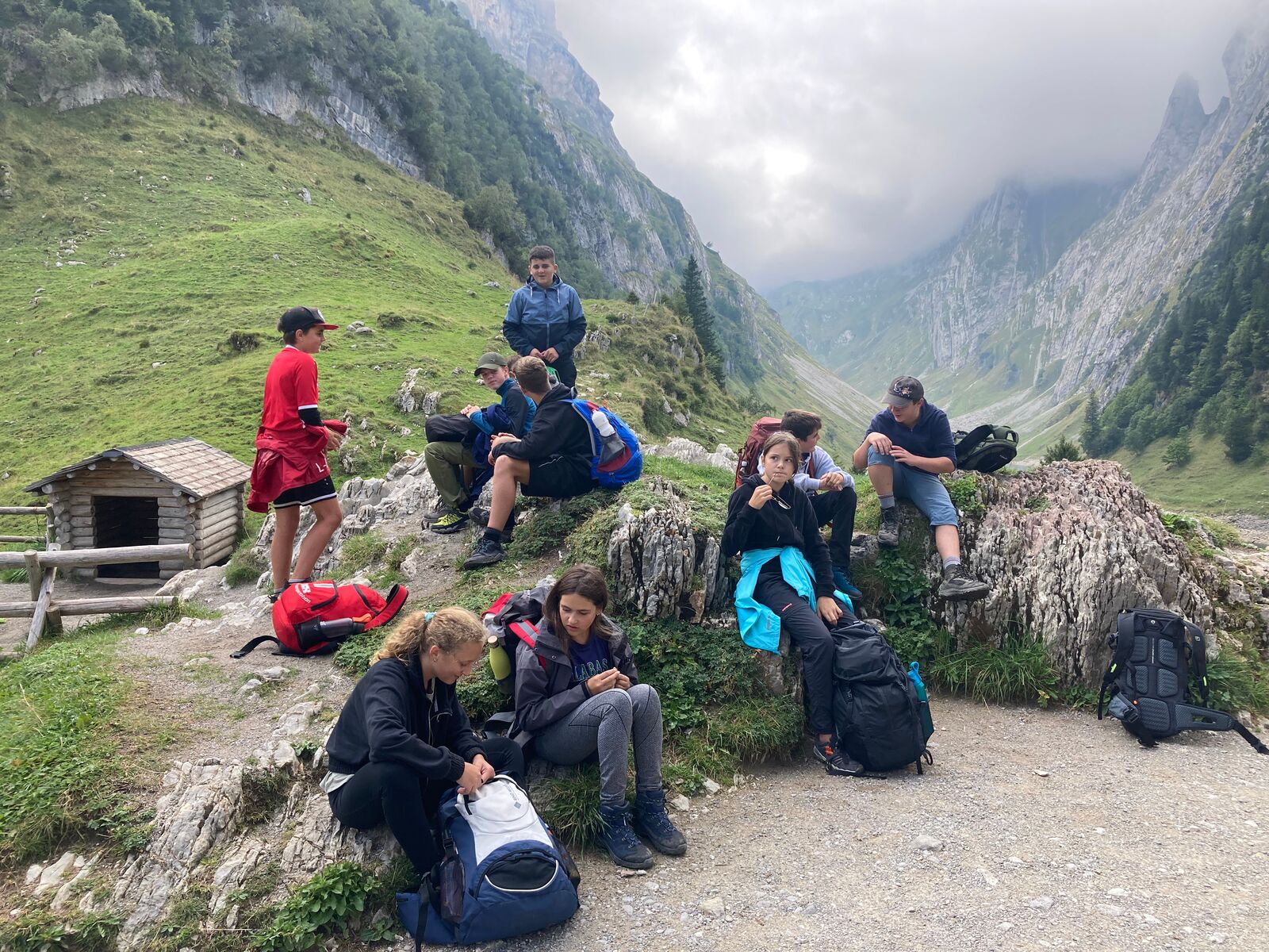 In der dritten Schulwoche verbrachte die Klasse 1r zwei Tage im Alpstein. Mit dem «Gaiserbähnli» ging es nach Brülisau, wo wir die ca. 1000 Höhenmeter mit der Seilbahn auf den Hohen Kasten überwanden. Wir genossen die fantastische Aussicht übers Rheintal und den Alpstein. Anschliessend wanderten wir via Staubern und Saxer Lücke zum Berggasthaus Bollenwees. Im kalten Fälensee konnten sich die Jugendlichen vor dem Nachtessen abkühlen. Den Abend verbrachten sie mit «Werwölfeln», «Mäxle» und Jassen.