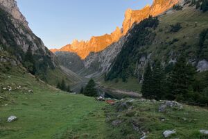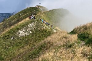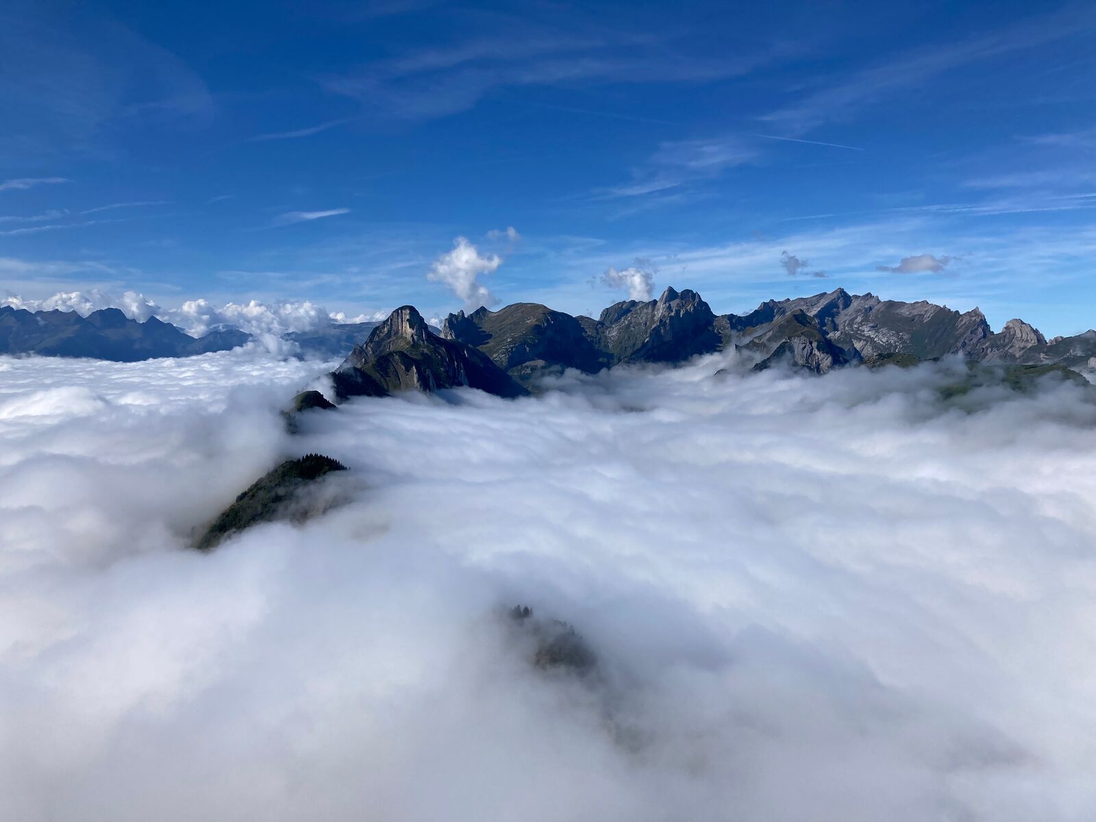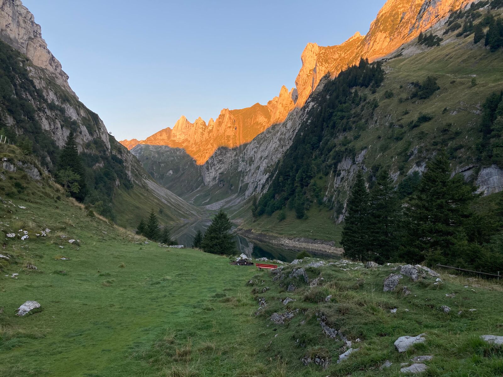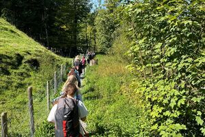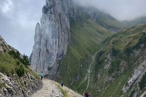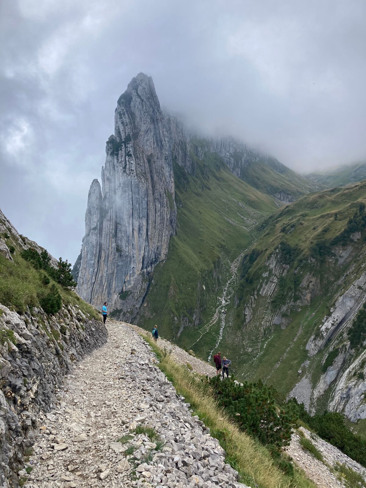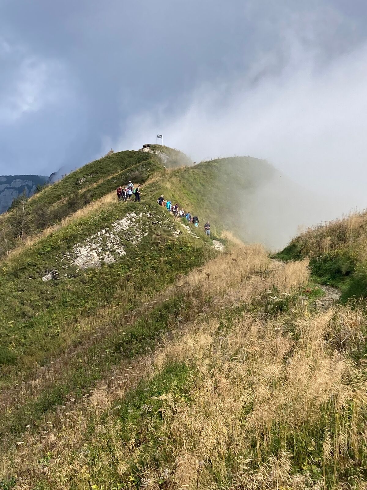 In der dritten Schulwoche verbrachte die Klasse 1r zwei Tage im Alpstein. Mit dem «Gaiserbähnli» ging es nach Brülisau, wo wir die ca. 1000 Höhenmeter mit der Seilbahn auf den Hohen Kasten überwanden. Wir genossen die fantastische Aussicht übers Rheintal und den Alpstein. Anschliessend wanderten wir via Staubern und Saxer Lücke zum Berggasthaus Bollenwees. Im kalten Fälensee konnten sich die Jugendlichen vor dem Nachtessen abkühlen. Den Abend verbrachten sie mit «Werwölfeln», «Mäxle» und Jassen.