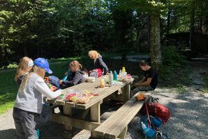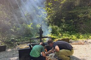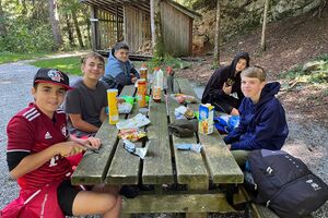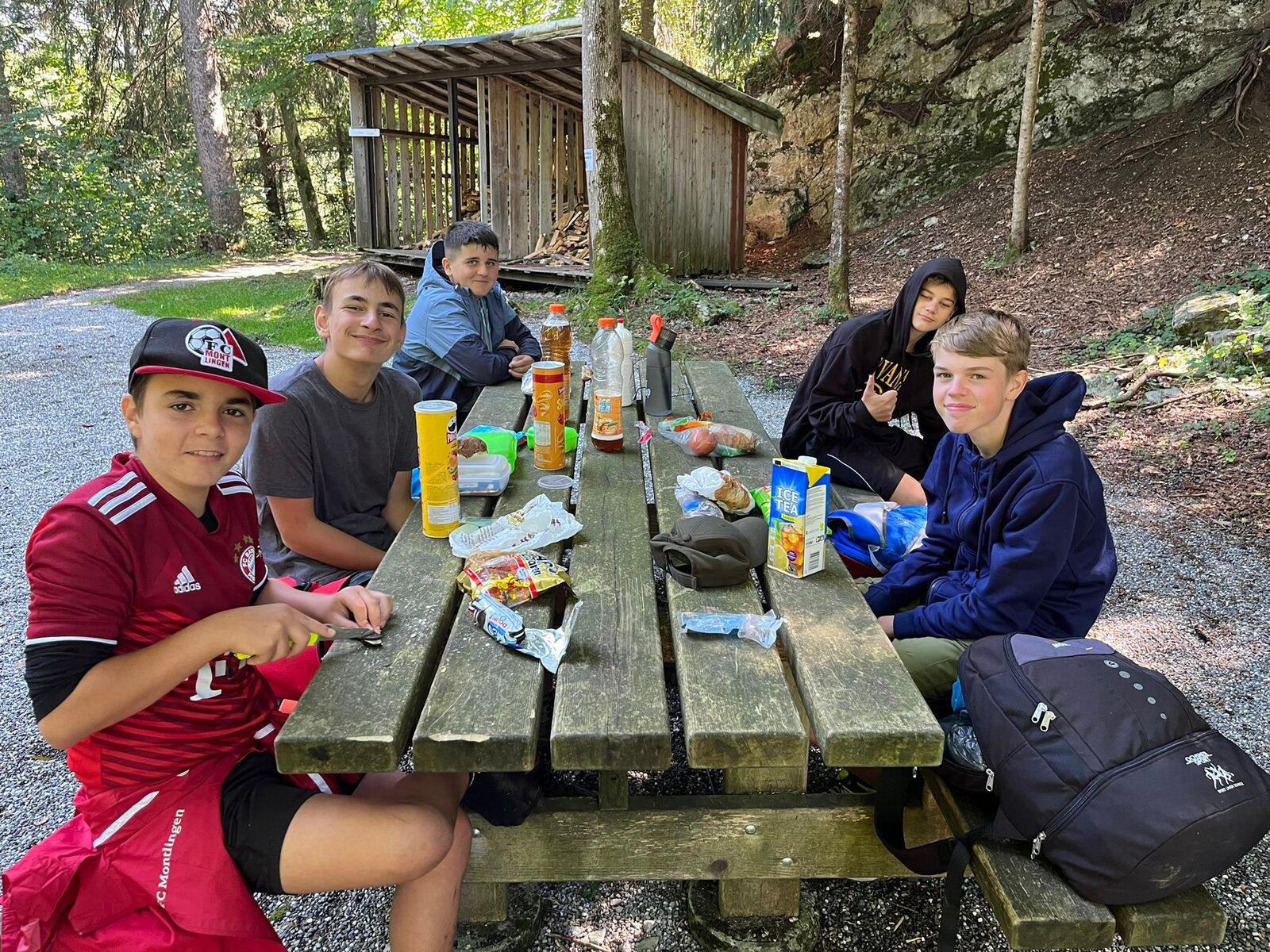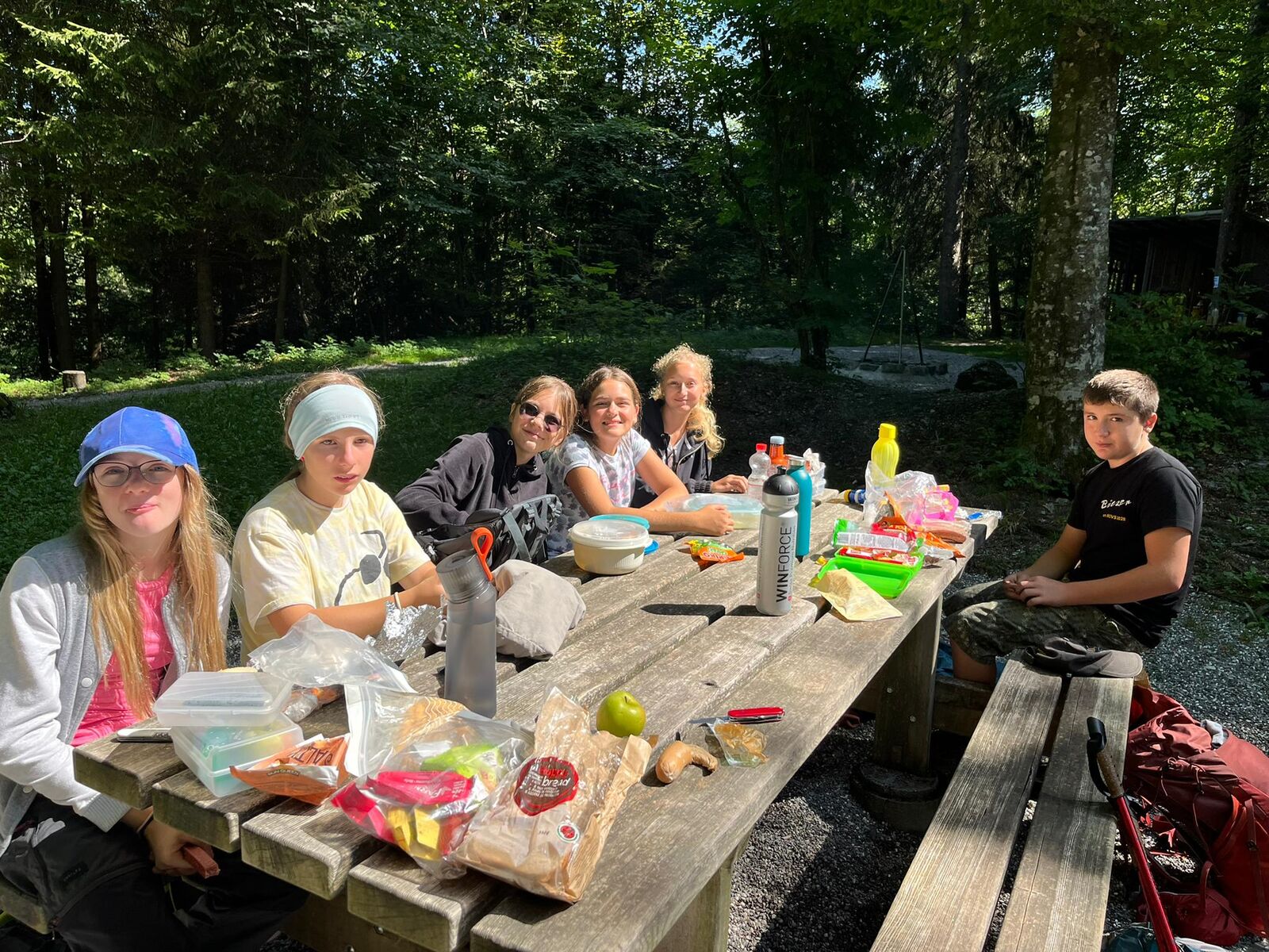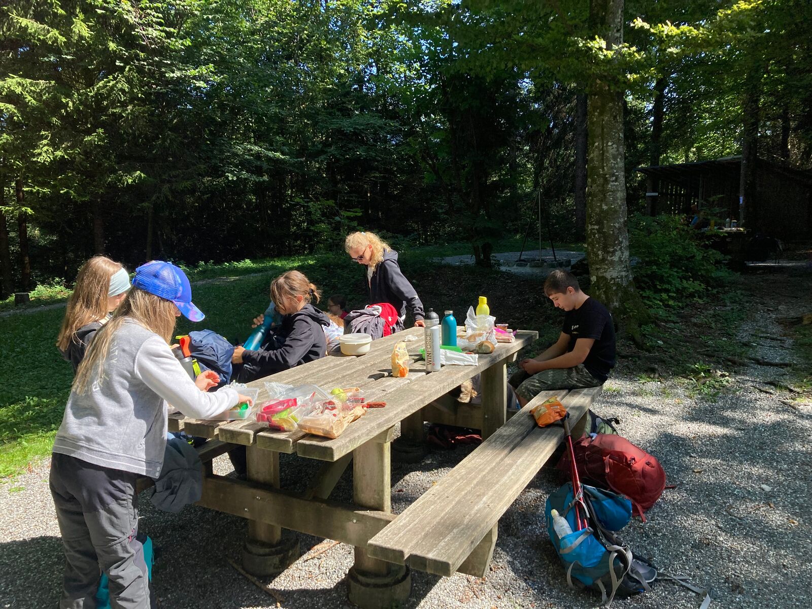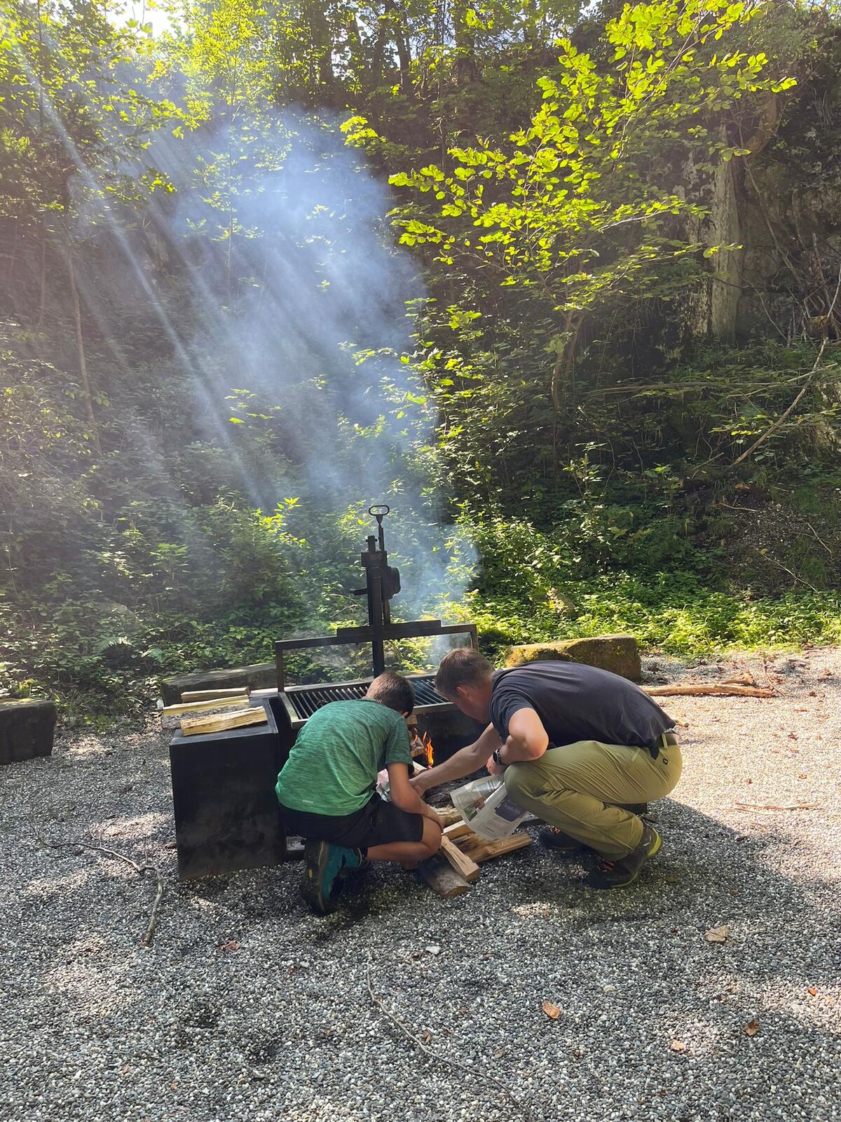 Am zweiten Tag wanderten wir von der Bollenwees über Rainhütten zum Ruhesitz. Den Weg hinunter nach Brülisau fuhren wir mit den Trottinetts. Über den «Chlustobelweg» erreichten wir nach einem Spaziergang gegen Mittag die Feuerstelle vor Weissbad, an welcher wir grillierten.