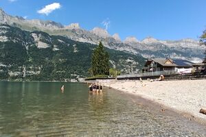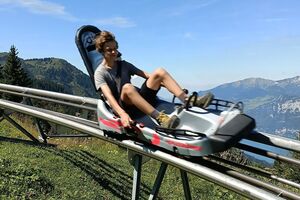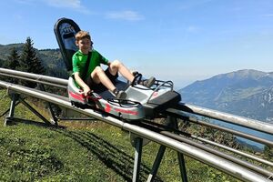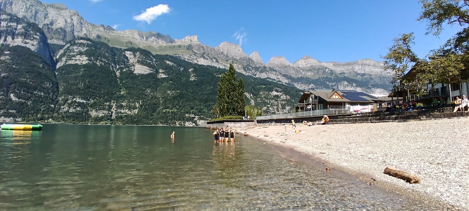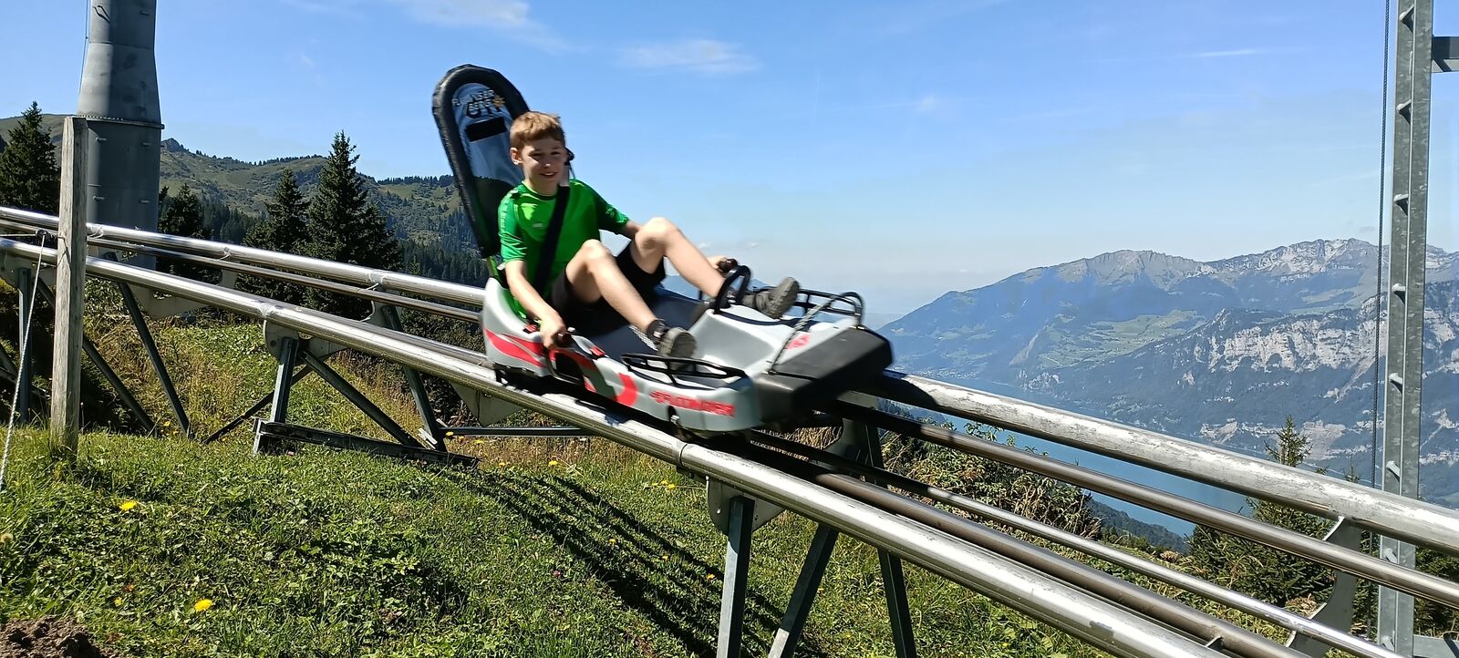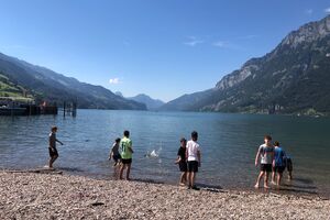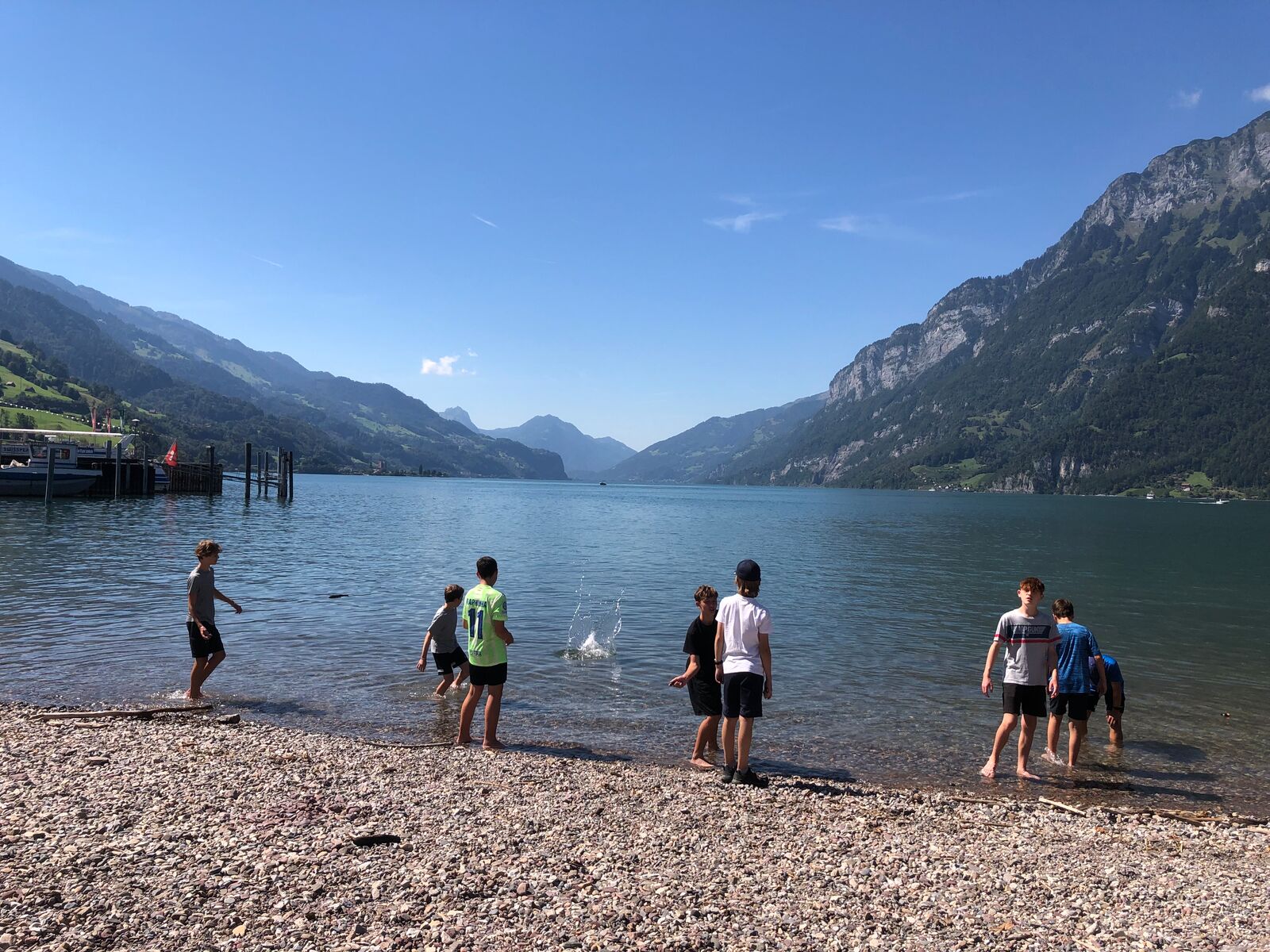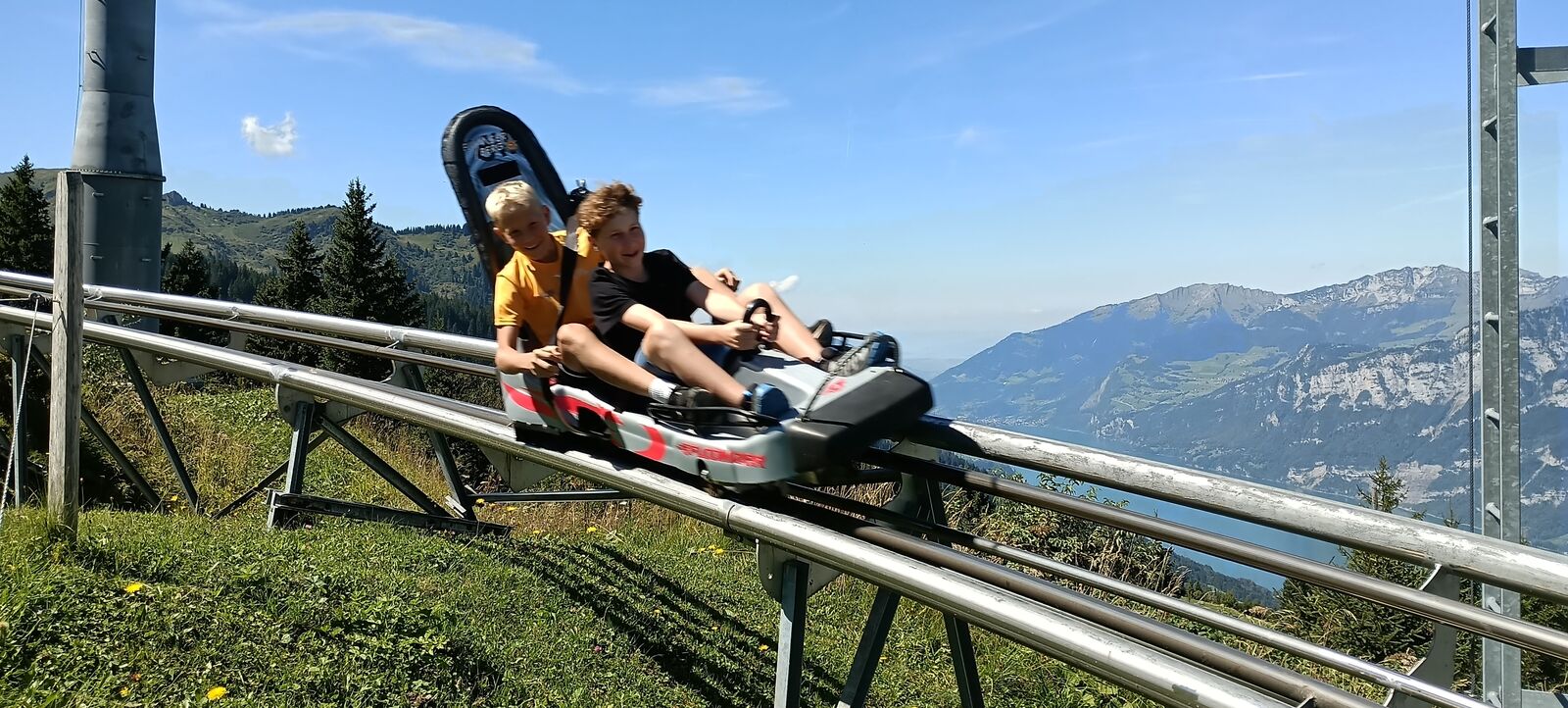 Um 13 Uhr wanderten wir weiter zur Bergstation der Sesselbahn Chrüz. Dort startet auch die Sommerrodelbahn Floomzer. Die rasante Fahrt machte allen richtig Spass! Danach ging es zurück nach Unterterzen. Bevor wir wieder in den Zug stiegen, durften wir sogar noch unsere Füsse im Walensee abkühlen.