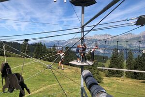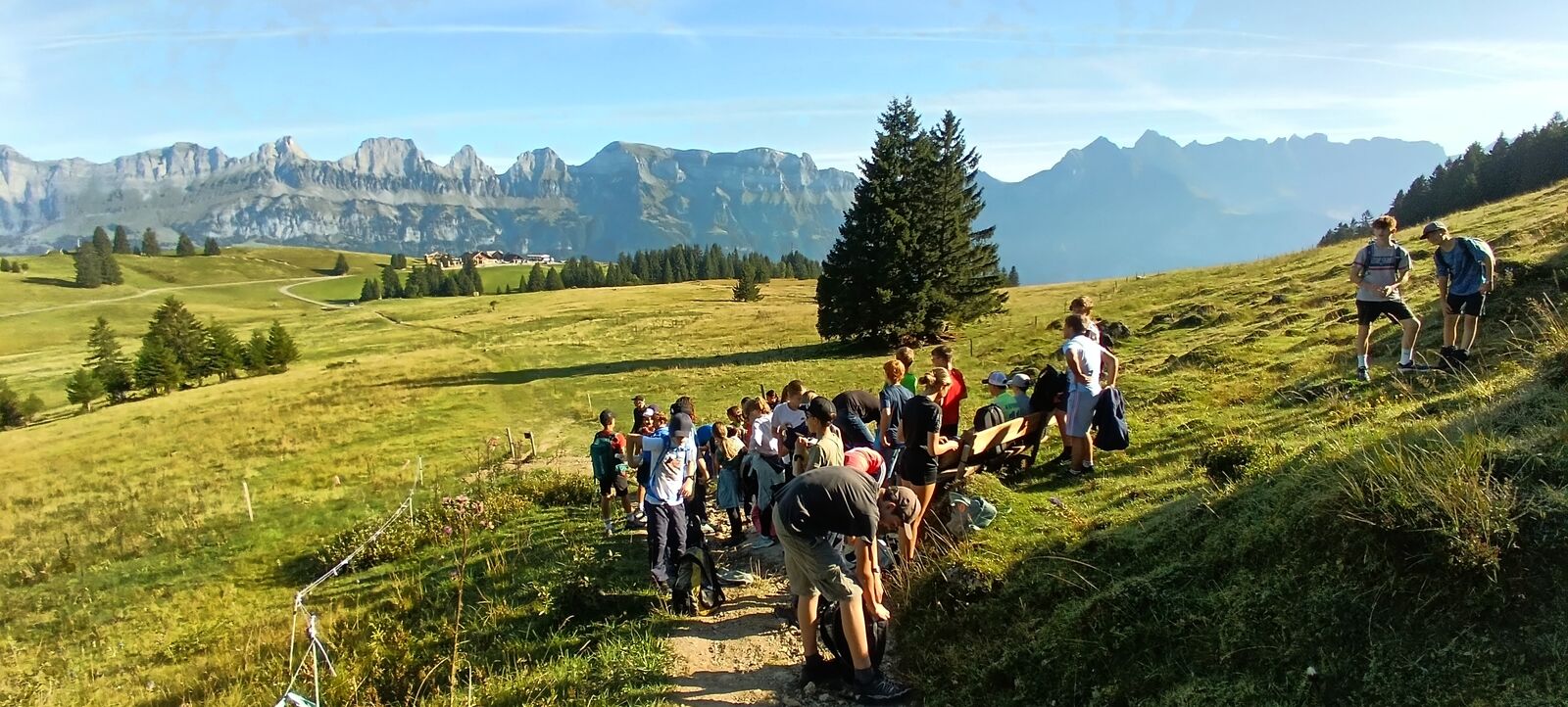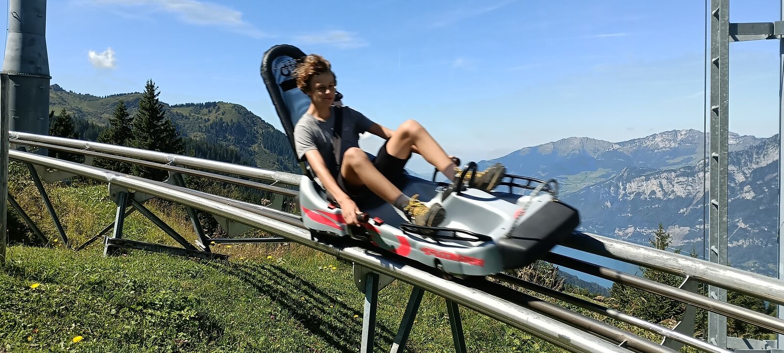 Am Montag, den 25. August 2025, trafen sich die Klassen 2Sa und 2Sb vom OZ Montlingen früh am Morgen am Bahnhof in Oberriet. Um 7:15 Uhr standen schon alle bereit, voller Vorfreude auf den Tag. Mit dem Zug fuhren wir rund 50 Minuten nach Unterterzen, wo wir in die Gondelbahn ‘SeeJet’ einstiegen. Diese brachte uns in etwa 20 Minuten hoch auf den Flumserberg.