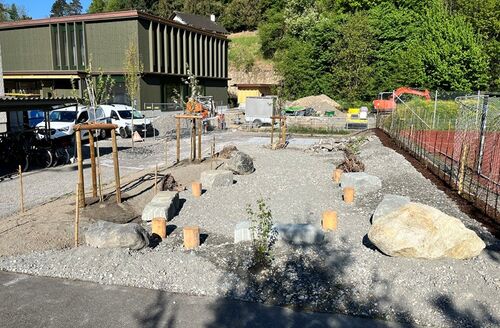 Ab dem 2. Juni 2025 werden alle Schulkinder - auch die Kindergärtner - von Montlingen im Bergli zu Schule gehen. Mit dem neuen Kindi am Bergli vereinen wir alle Kinder auf unserem wunderschönen Schulhof. Ein weiterer Sitzplatz hat sich mit der Umgestaltung des Littenwegs und des Veloständers für die Kriessner Oberstufenschüler*innen ergeben. Unter dem roten Platz ist neu ein Aufenthaltsort entstanden, welcher zum Verweilen und Spielen für Gross und Klein einlädt.