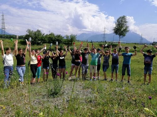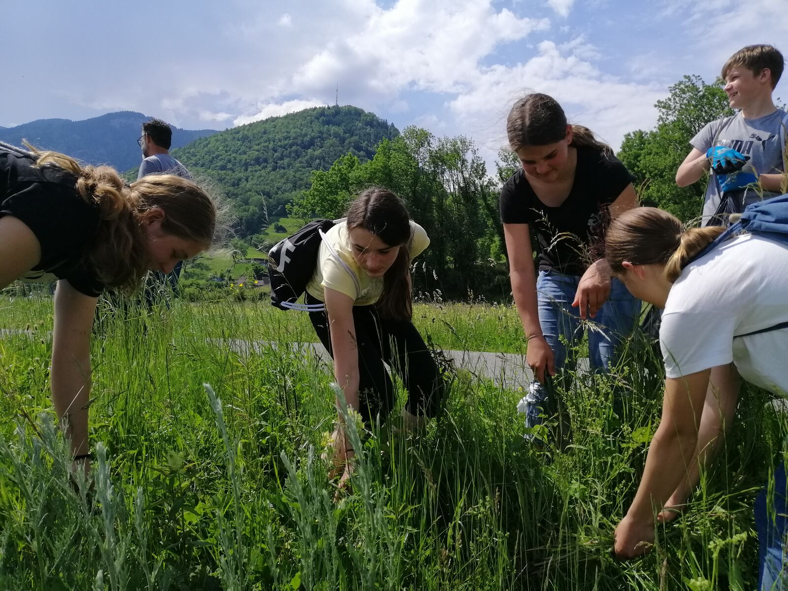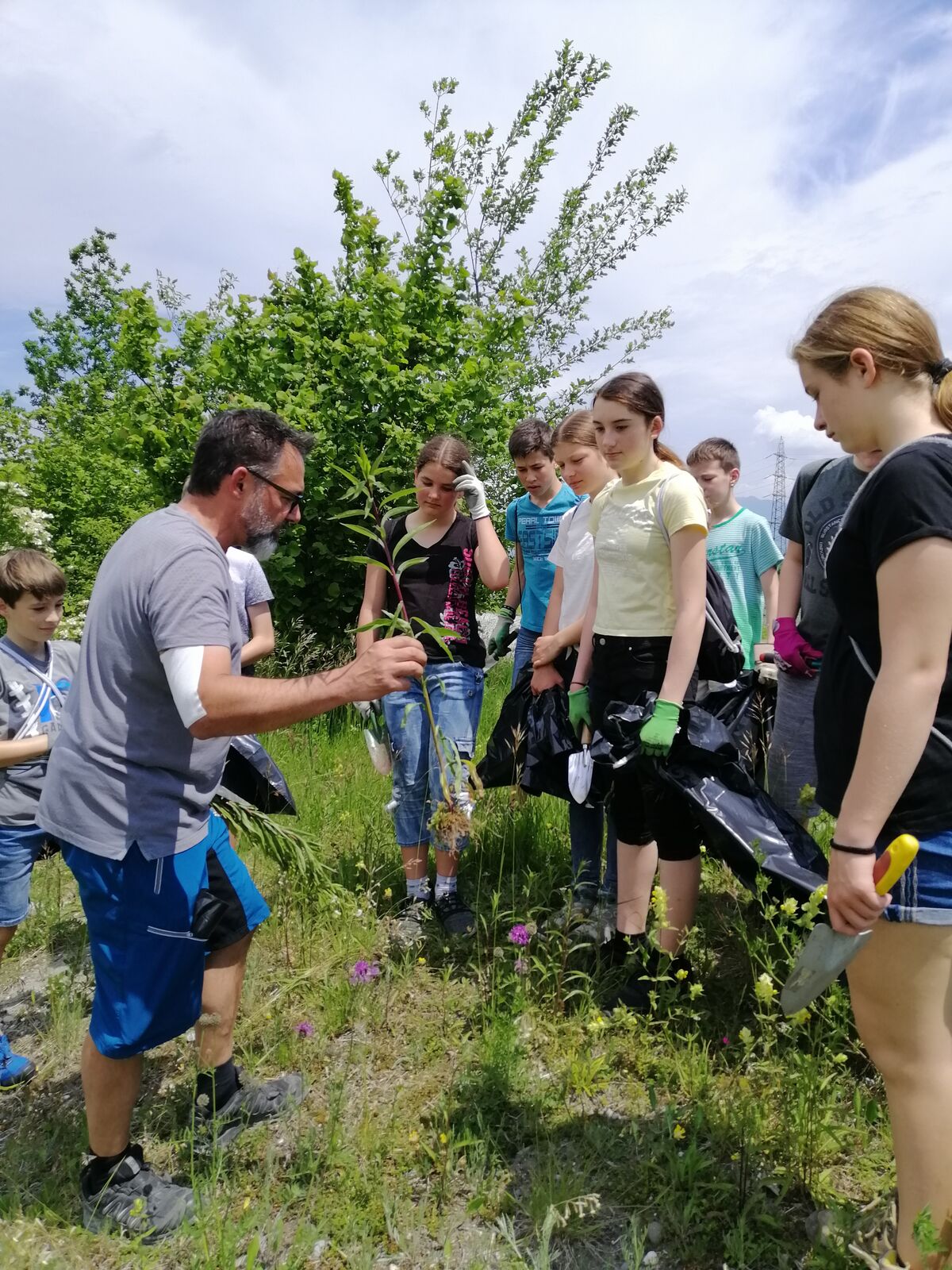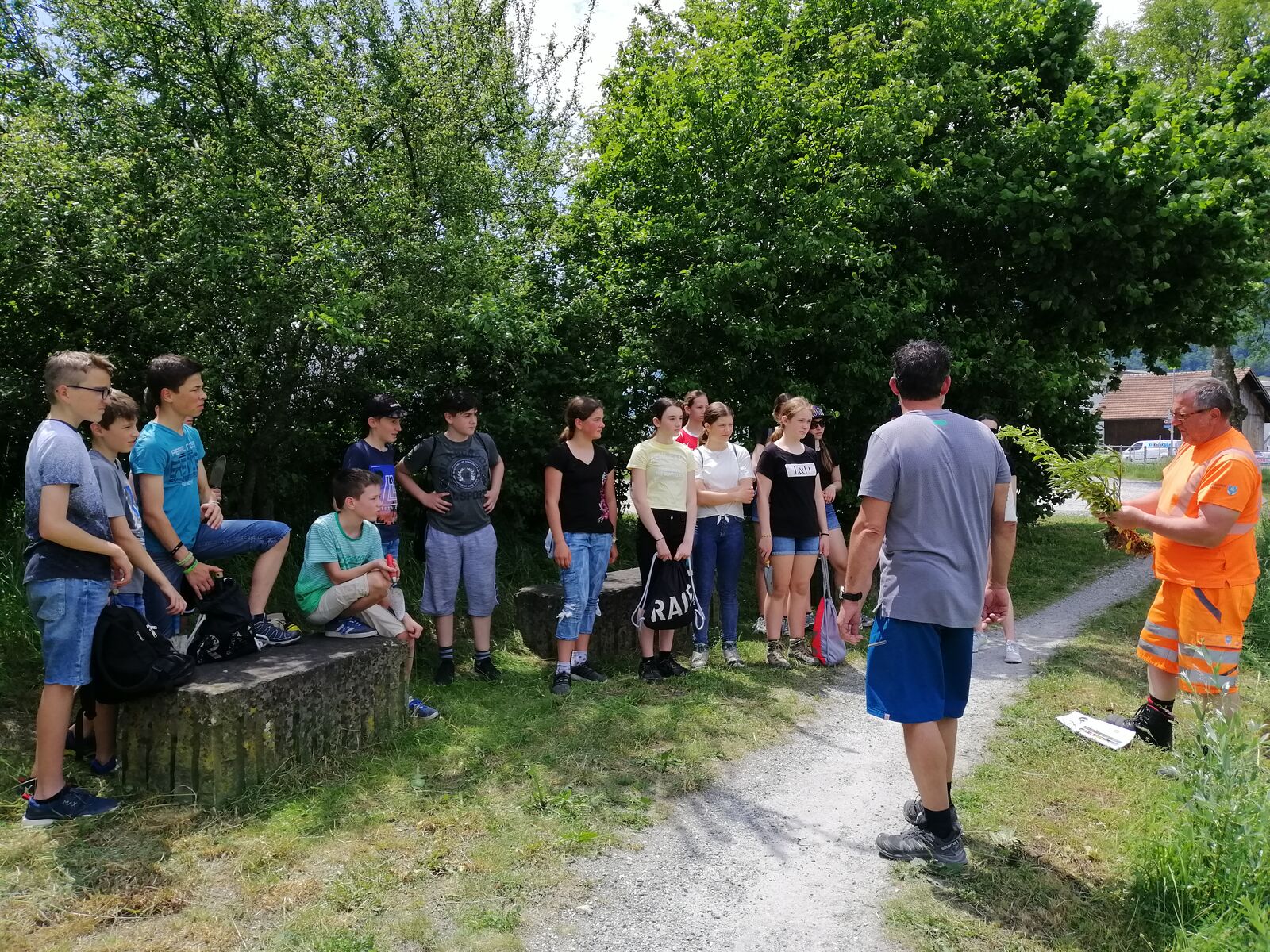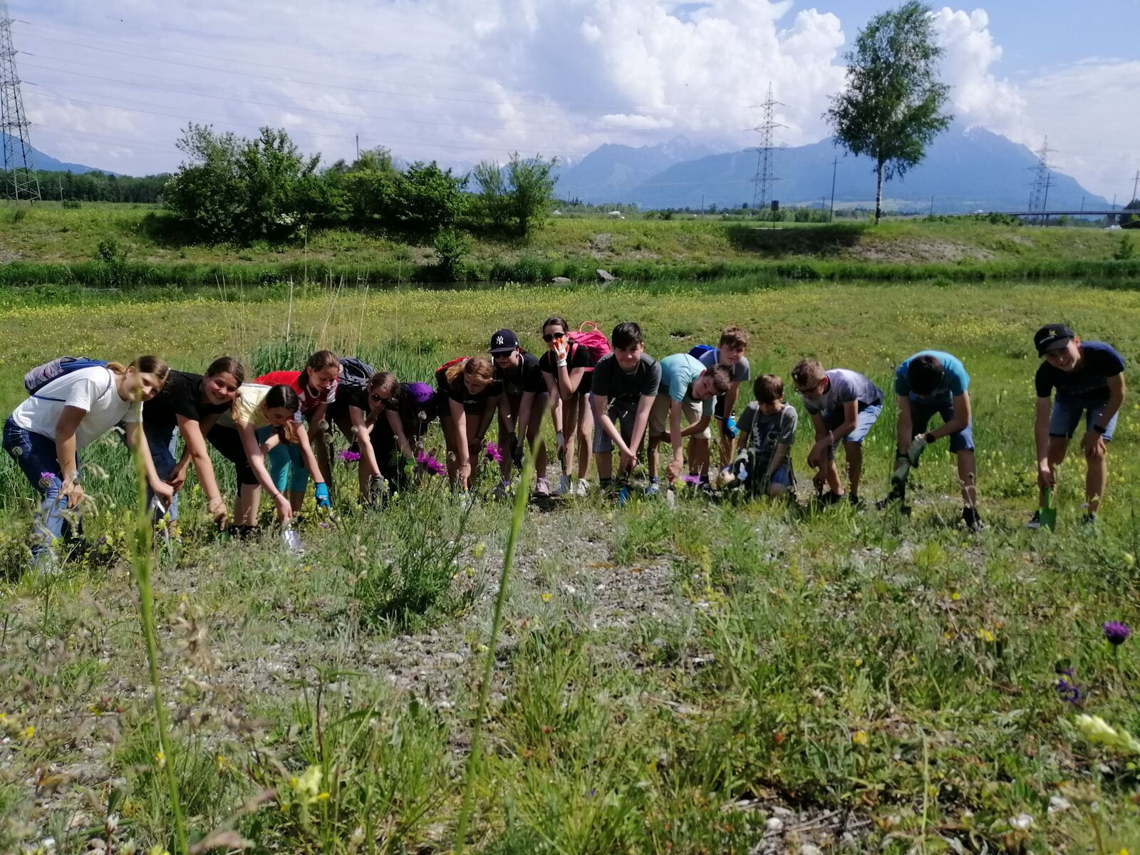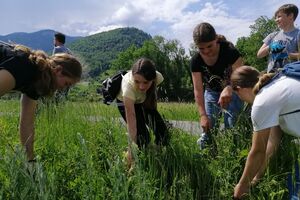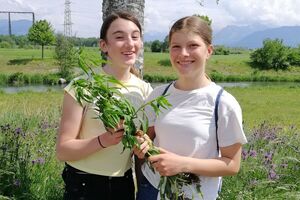 Goldrute und Berufskraut? Vielleicht noch nie gehört, aber sicher schon gesehen. Sie gehören nämlich zu den Neophyten, also Pflanzen, die eingeschleppt wurden und bei uns nicht heimisch sind. Da sie sich schnell verbreiten und einheimische Pflanzen verdrängen, sagte die Klasse 1sa an einem schwülen Freitagnachmittag im Juni ihnen den Kampf an. Bewaffnet mit Schaufeln und Gartenhandschuhen rupften die fleissigen Schülerinnen und Schüler zahlreiche Neophyten in der Renaturierung in Rüthi aus.