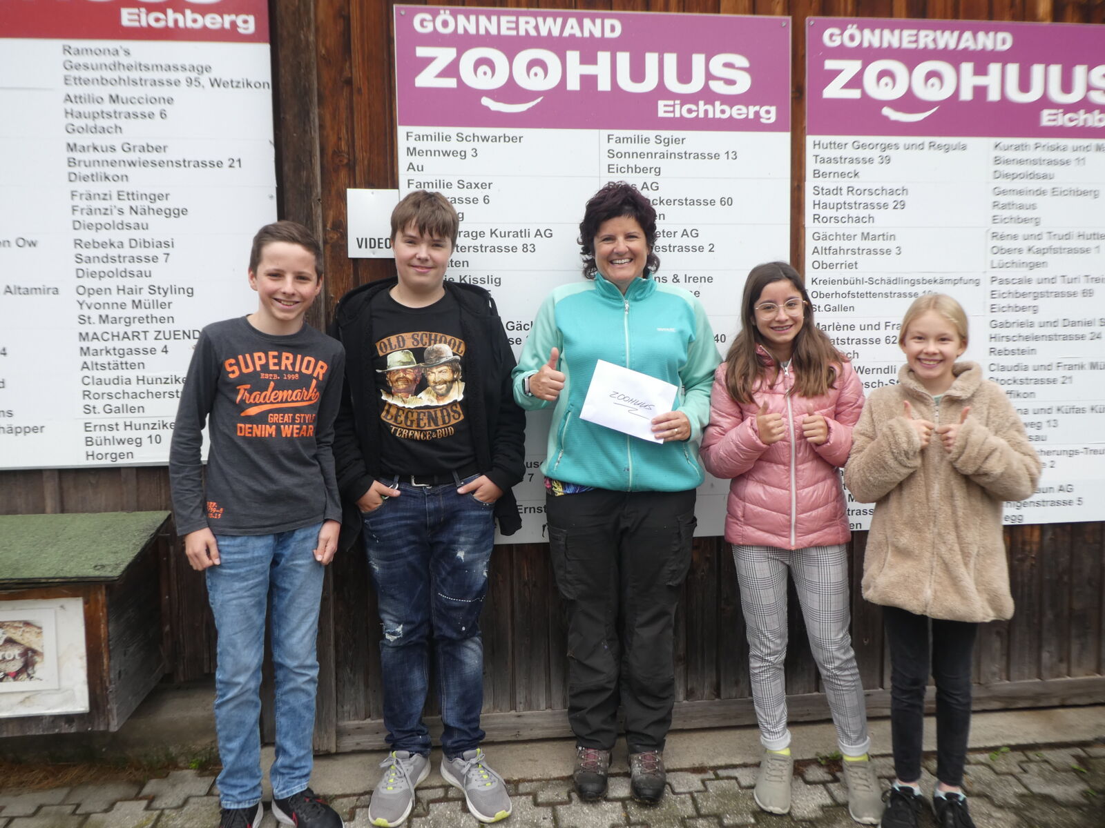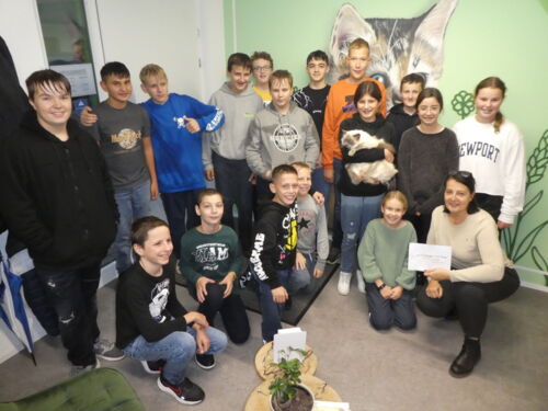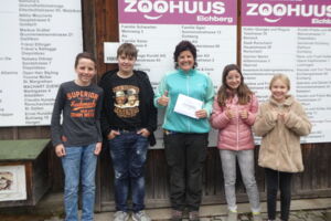 Ende September verkaufte die 1. Realklasse vom OZ Montlingen frisch gepressten Süssmost bei der Kirche in Kriessern. Die Klasse legte fest, dass ein Teil des Verkaufserlöses zwei wohltätigen Institutionen zukommen soll. Kürzlich fand nun die Spendenübergabe beim Zoohuus in Eichberg statt. Vier Schülerinnen und Schüler überreichten stellvertretend für die Klasse 1r Jasmin Hutter den Betrag über 225.- Franken.