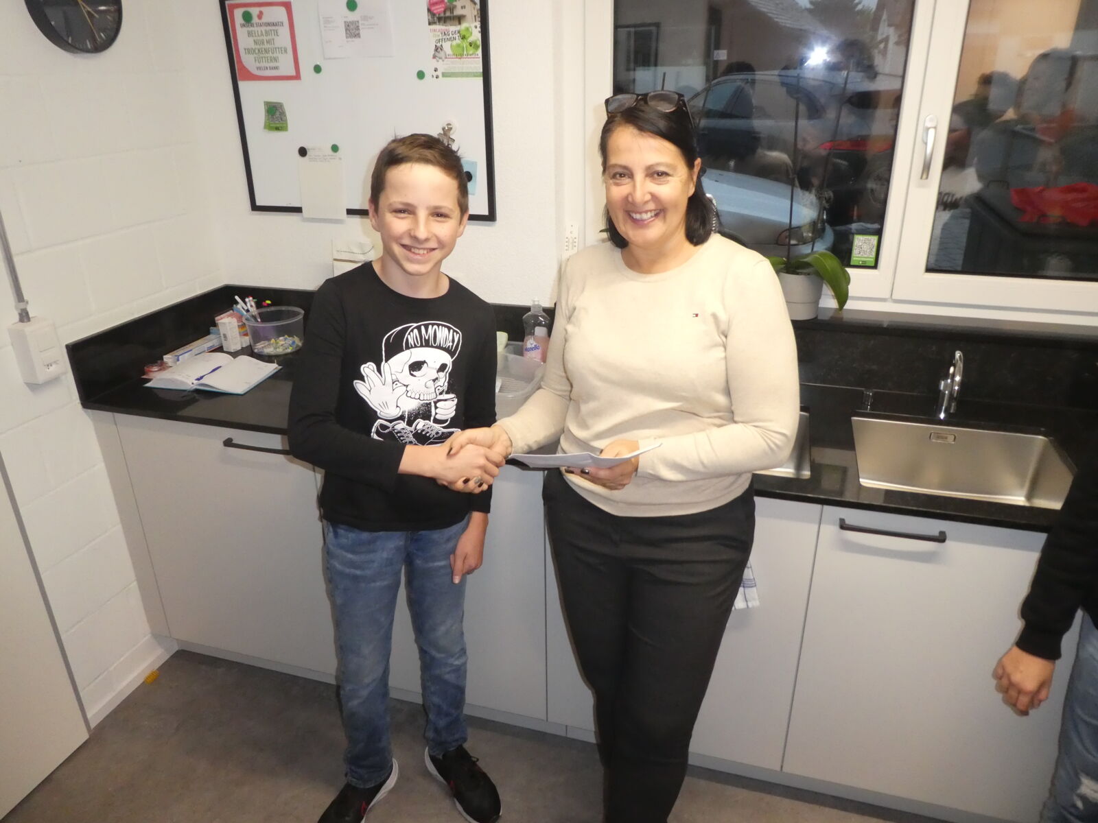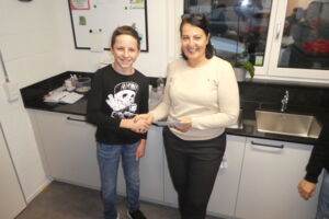 Eine weitere Spende in der gleichen Höhe geht an die Katzenstation in Oberriet. Die Klasse 1r durfte Nicole Rohner ebenfalls den Betrag von 225.- Franken übergeben.