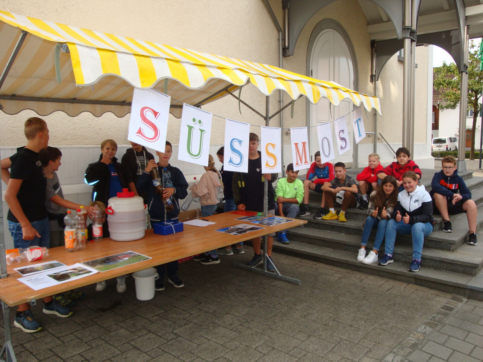 So einfach ist die Rechnung, welche die Klasse 1r mit ihrer Süssmostaktion locker lösen konnte. Zuerst wurden die Äpfel gesammelt, dann zur Mosterei gebracht und schliesslich in Kriessern verkauft. Der erlöste Gewinn geht zu 50 Prozent an das Zoohaus in Eichberg und an die Katzenstation in Oberriet. Das hat sich gerechnet!