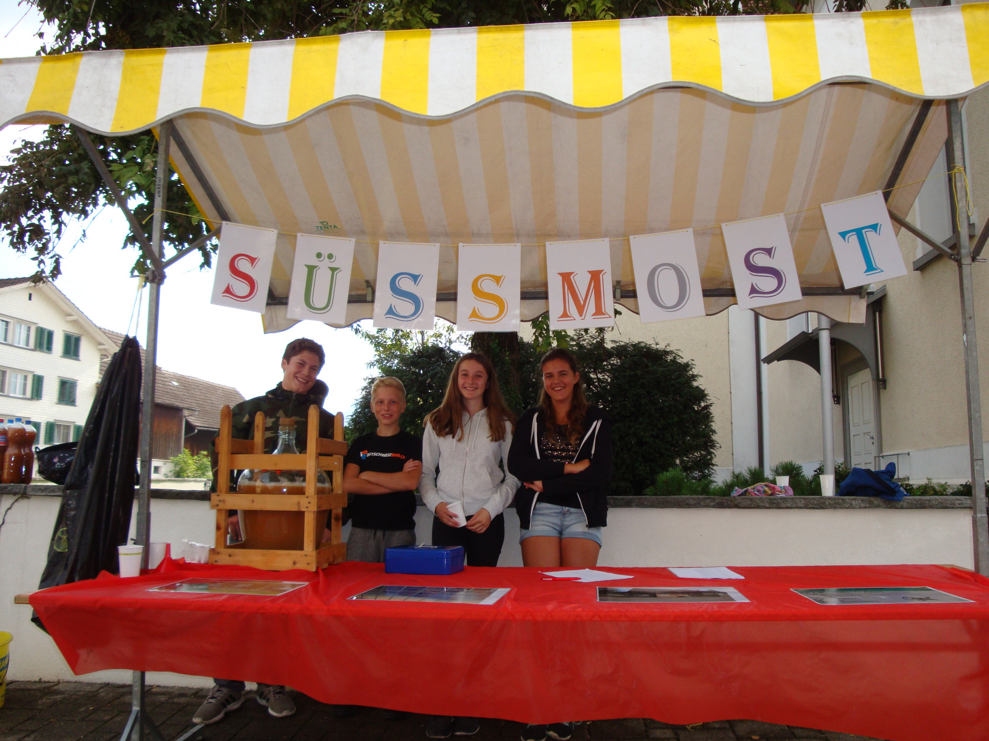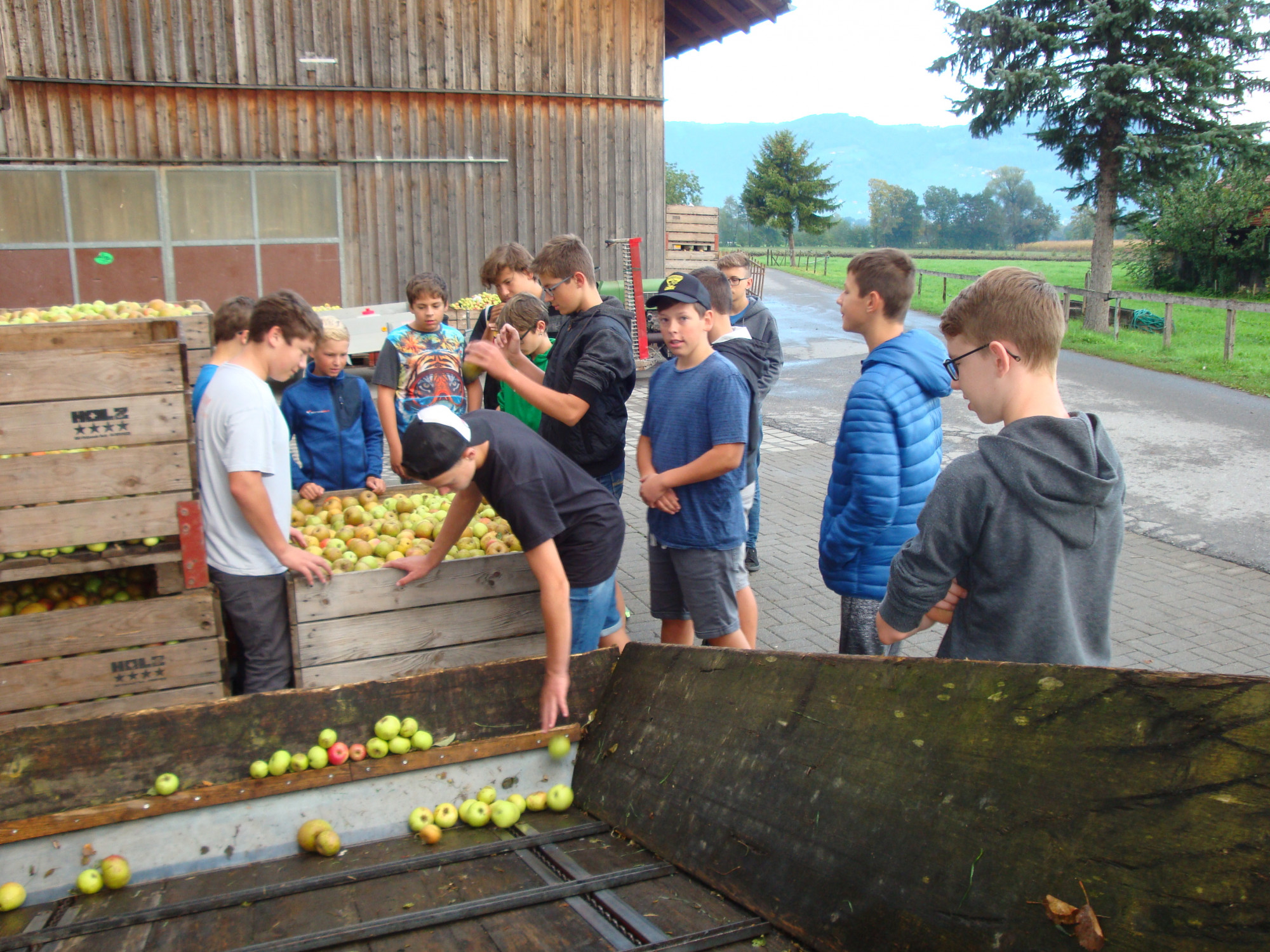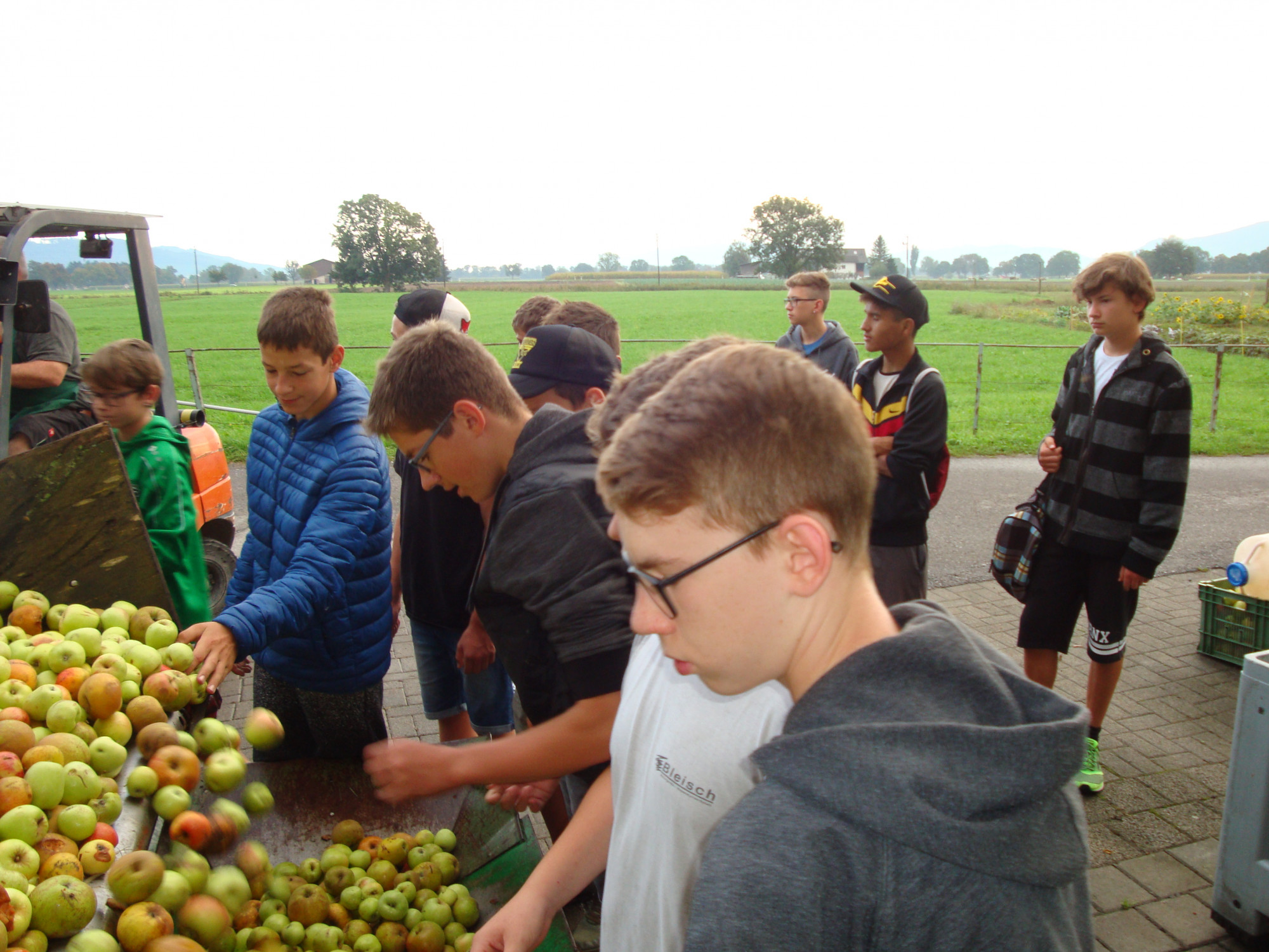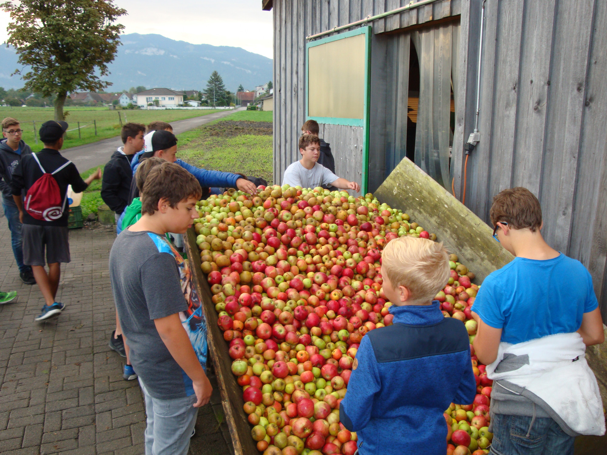Die Klasse 2r vom OZM führte am Donnerstag (13.9.2018) das Projekt Süssmostverkauf durch. 1,2 Tonnen Äpfel lasen die Schülerinnen und Schüler am Dienstag und am Mittwoch beim Beck Hasler in Montlingen auf der Wiese auf. Am Donnerstagmorgen wurden die Äpfel in Kriessern bei der Mosterei Baumgartner gemostet und ab 09:00 Uhr der frische Most vor der Kirche in Kriessern bis zum Mittag verkauft. Der Most schmeckte vorzüglich.