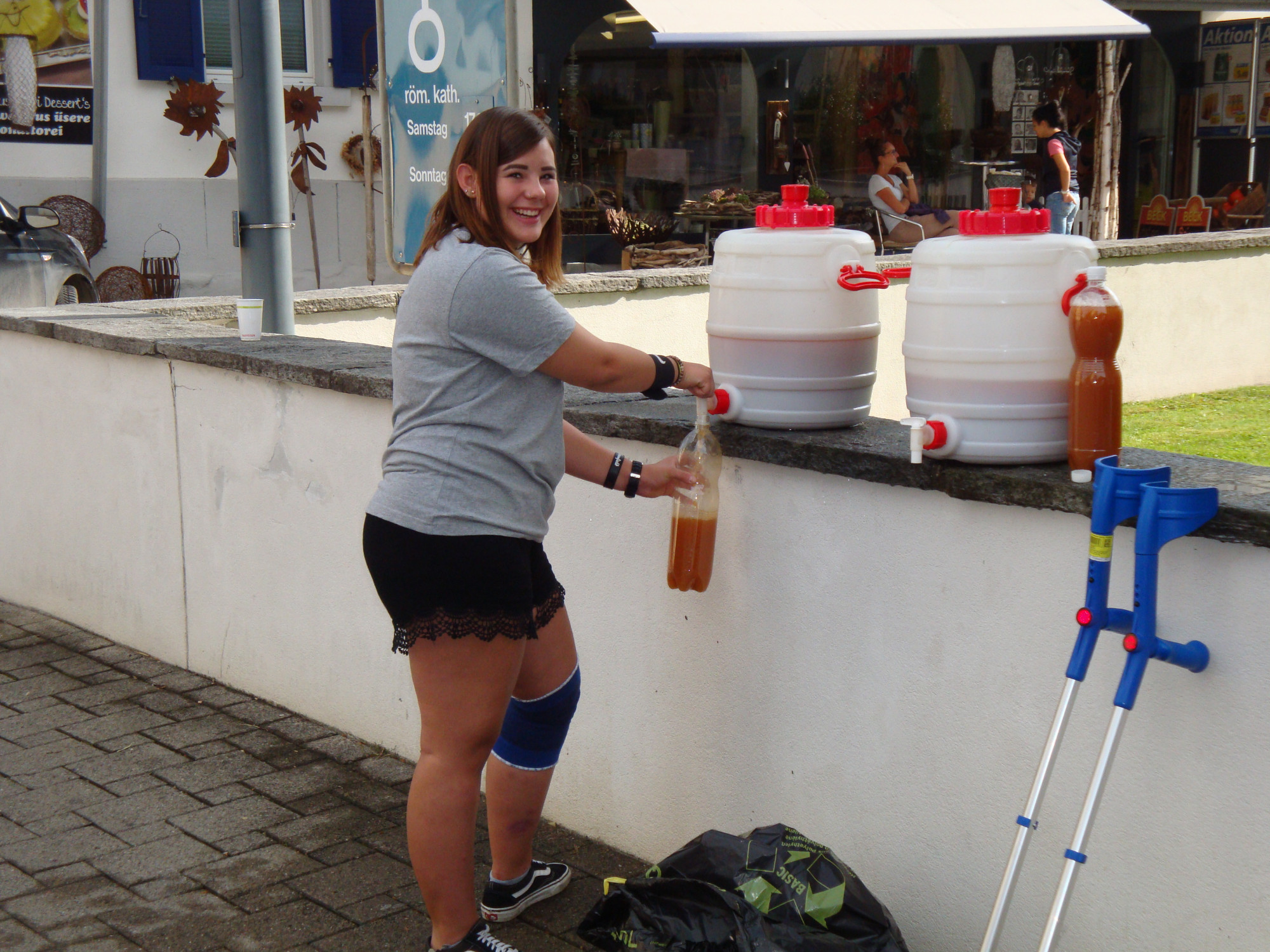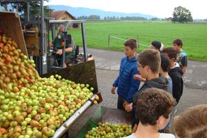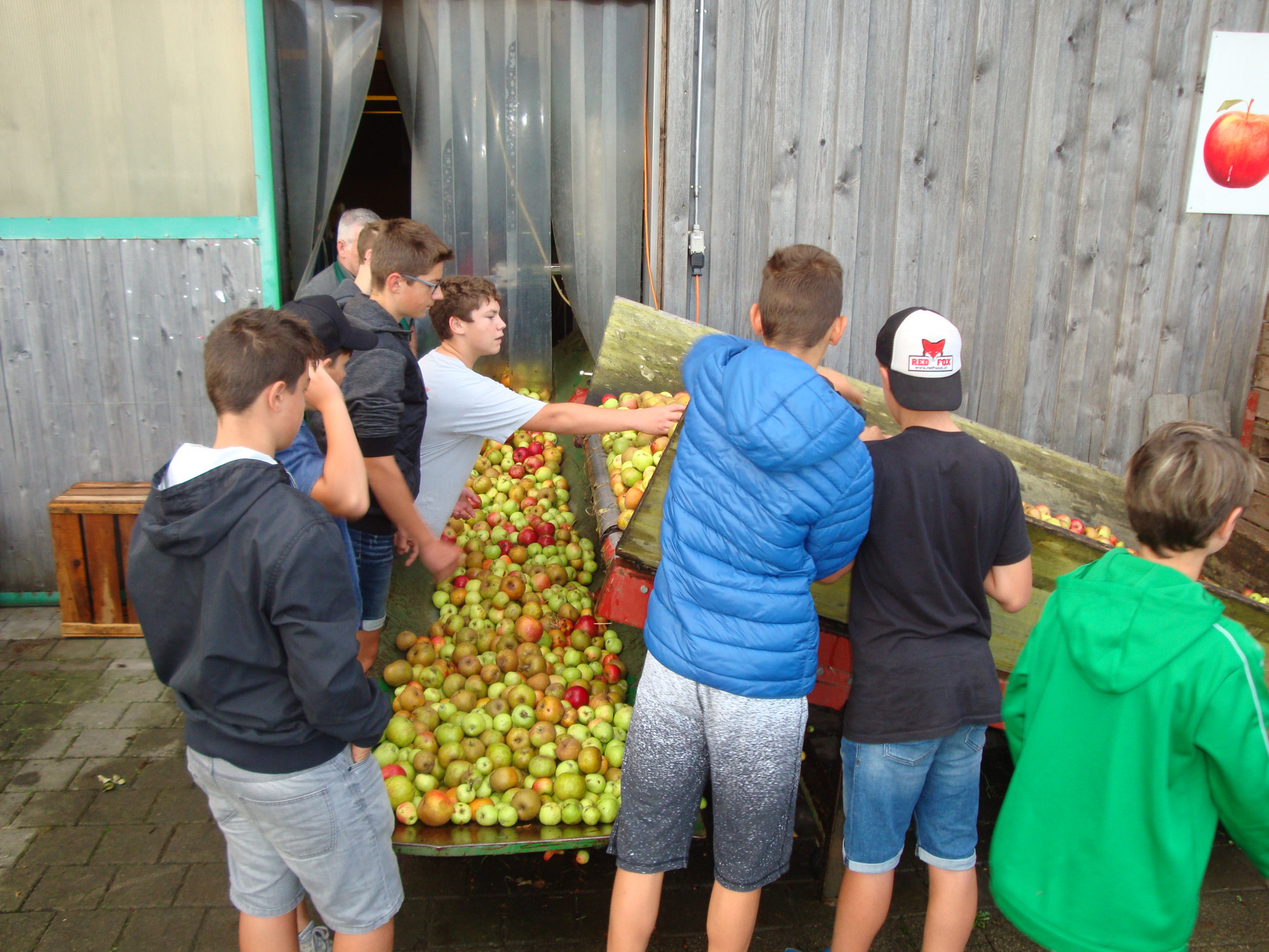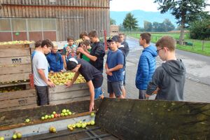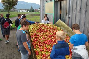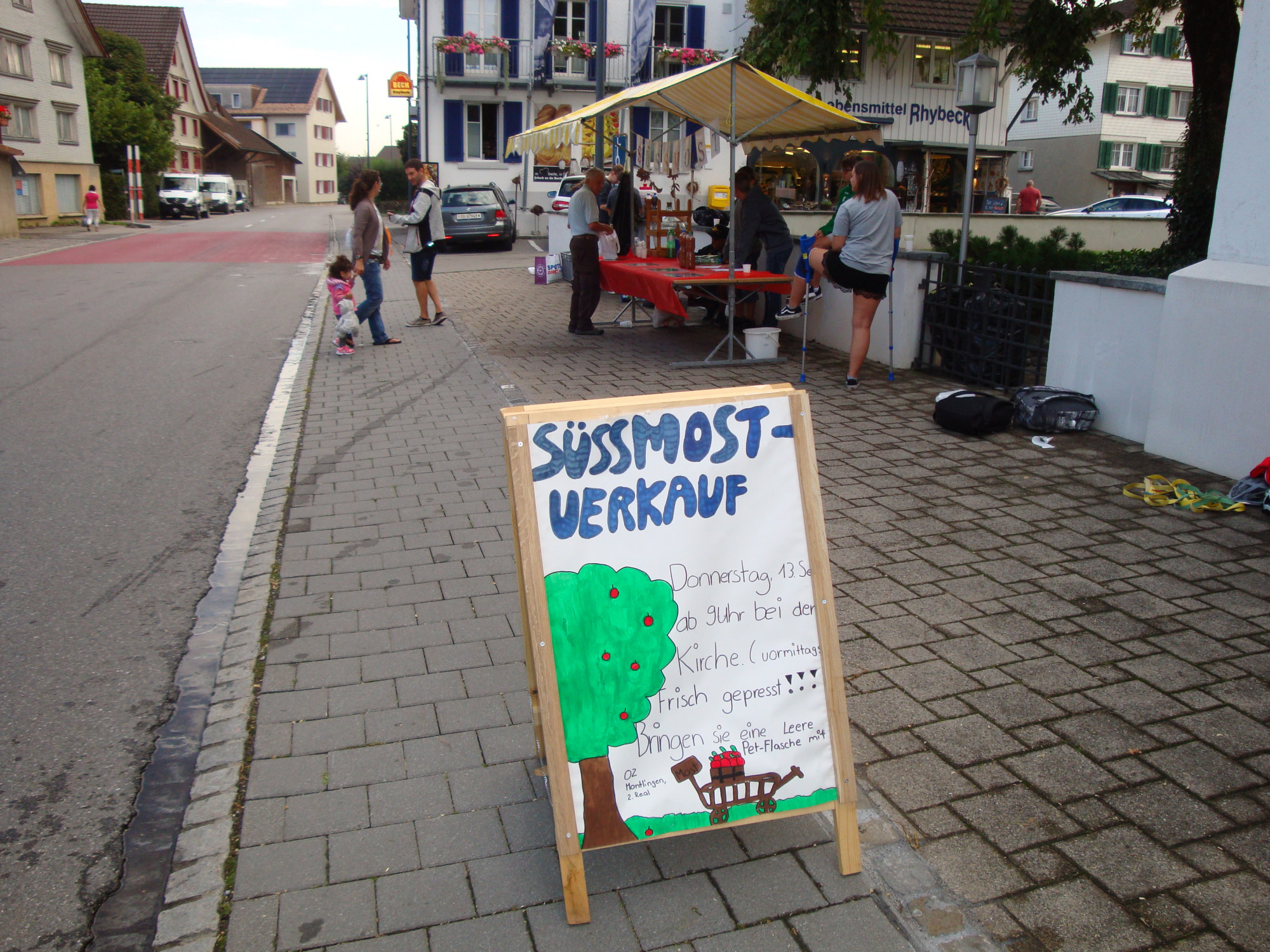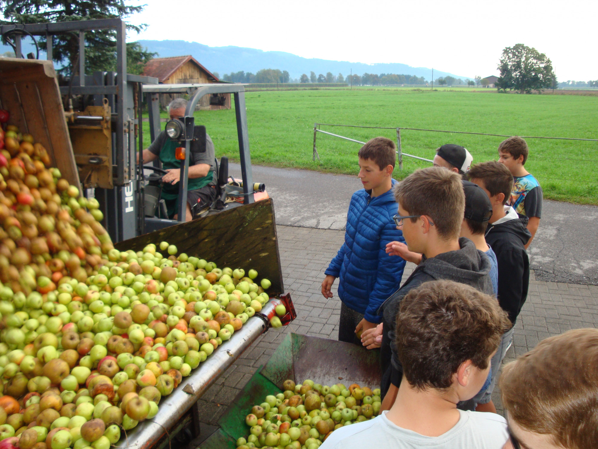 Die Klasse 2r vom OZM führte am Donnerstag (13.9.2018) das Projekt Süssmostverkauf durch. 1,2 Tonnen Äpfel lasen die Schülerinnen und Schüler am Dienstag und am Mittwoch beim Beck Hasler in Montlingen auf der Wiese auf. Am Donnerstagmorgen wurden die Äpfel in Kriessern bei der Mosterei Baumgartner gemostet und ab 09:00 Uhr der frische Most vor der Kirche in Kriessern bis zum Mittag verkauft. Der Most schmeckte vorzüglich.