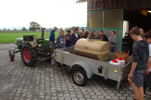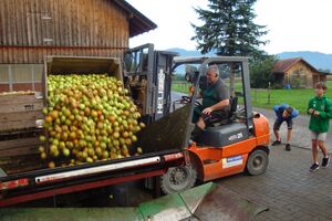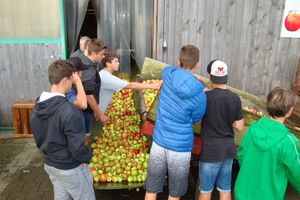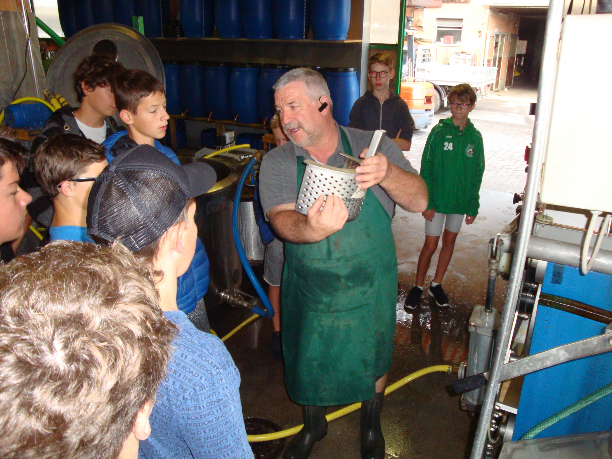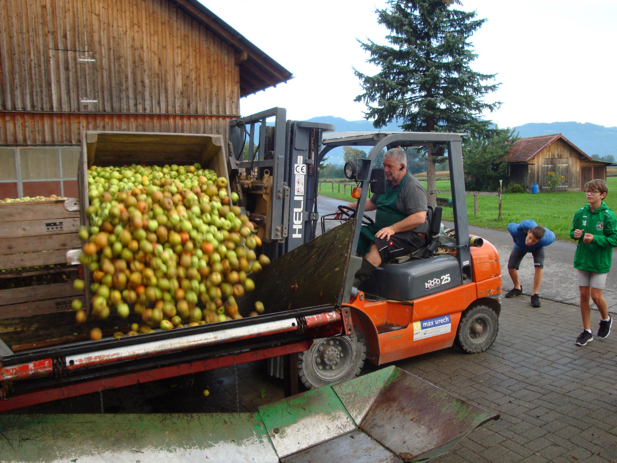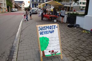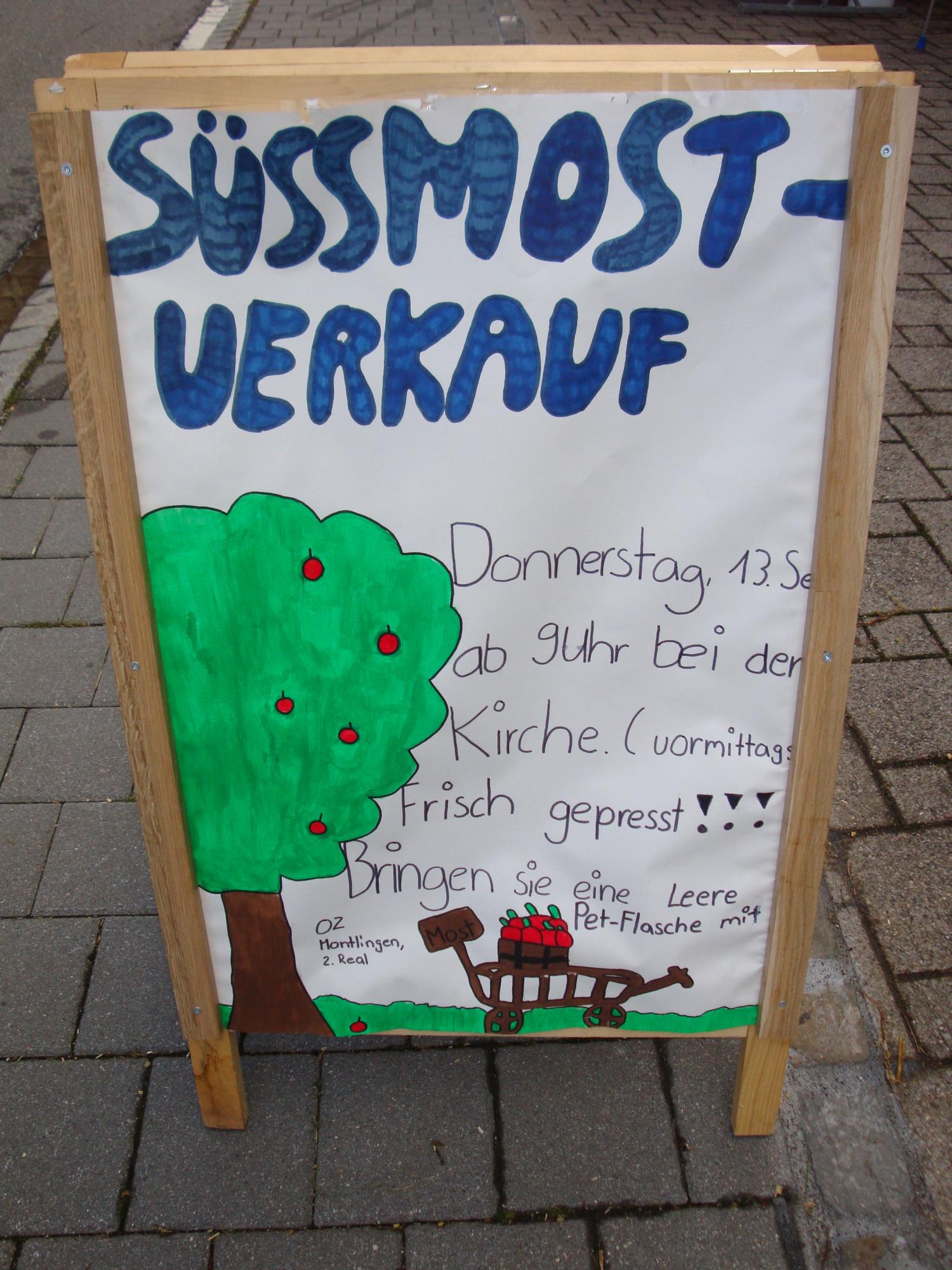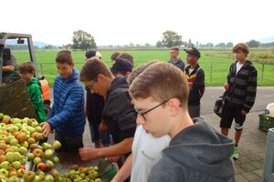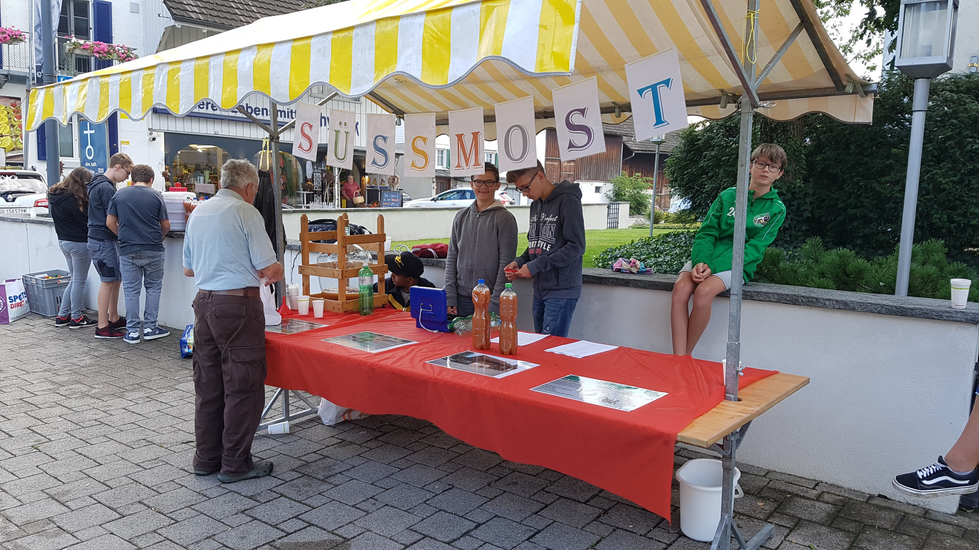Die Klasse 2r vom OZM führte am Donnerstag (13.9.2018) das Projekt Süssmostverkauf durch. 1,2 Tonnen Äpfel lasen die Schülerinnen und Schüler am Dienstag und am Mittwoch beim Beck Hasler in Montlingen auf der Wiese auf. Am Donnerstagmorgen wurden die Äpfel in Kriessern bei der Mosterei Baumgartner gemostet und ab 09:00 Uhr der frische Most vor der Kirche in Kriessern bis zum Mittag verkauft. Der Most schmeckte vorzüglich.
