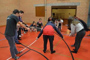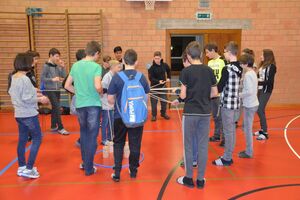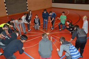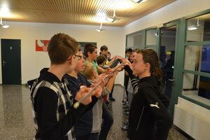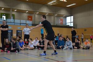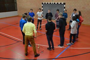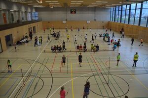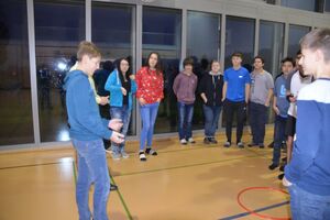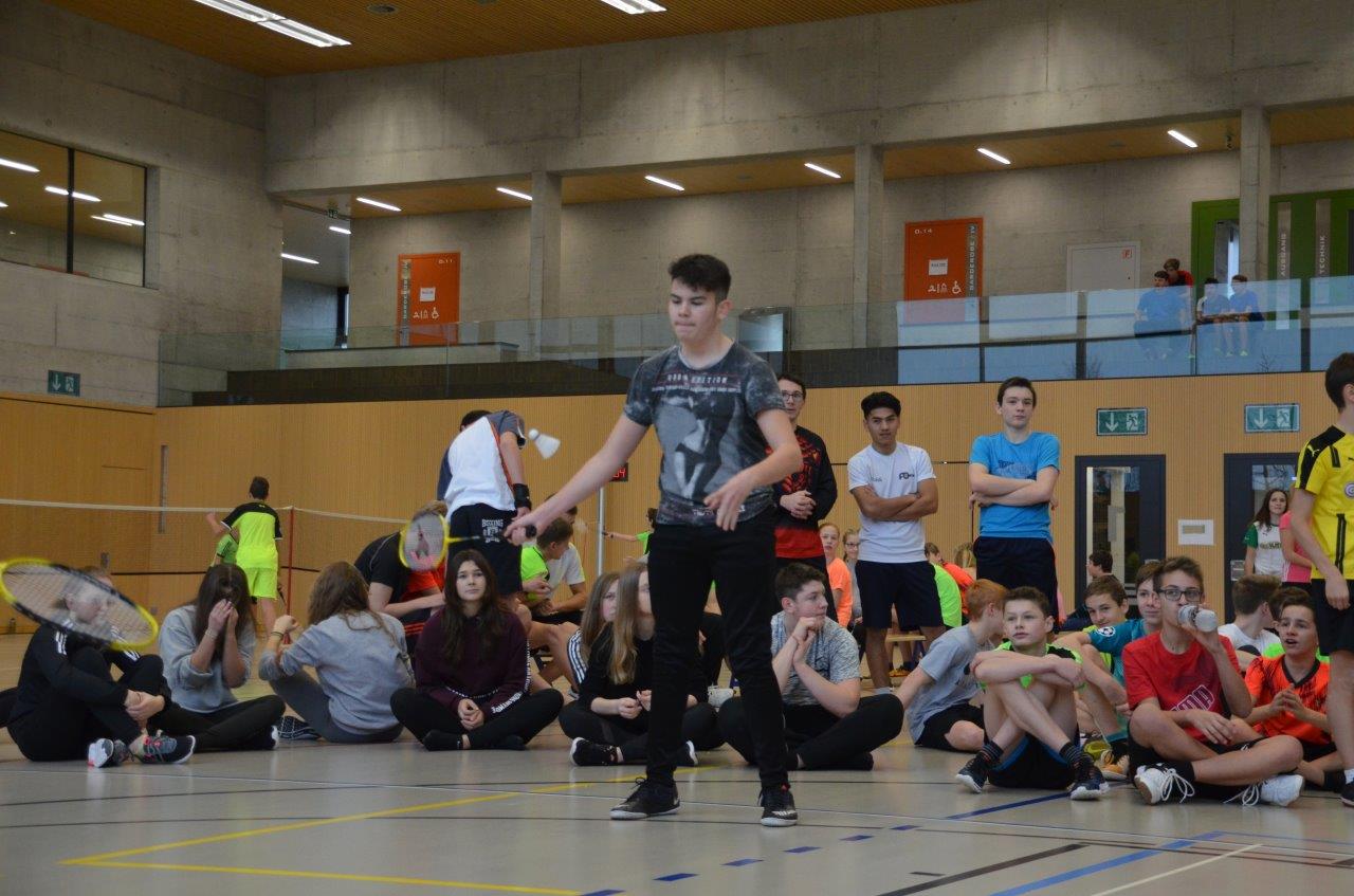 Anstatt die Schulbank zu drücken, zeigten sich die Schülerinnen und Schüler des OZ Montlingen am letzten Schultag vor Weihnachten von ihrer sportlichen und geschickten Seite. Deutlich früher als an normalen Schultagen trafen sich die Jugendliche um 6.45 Uhr, um dann im Klassenverband in und um den Turnhallen Geschicklichkeits- und Ratespiele zu absolvieren. Anschliessend ging es im Fussmarsch zur Sporthalle Bildstöckli. Dort präsentierte jede Klasse einen einstudierten Tanz. Dann wurden fleissig die Badminton-Rackets geschwungen. Selbst mit den Lehrern massen sich die Jugendlichen am Badminton-Platz.