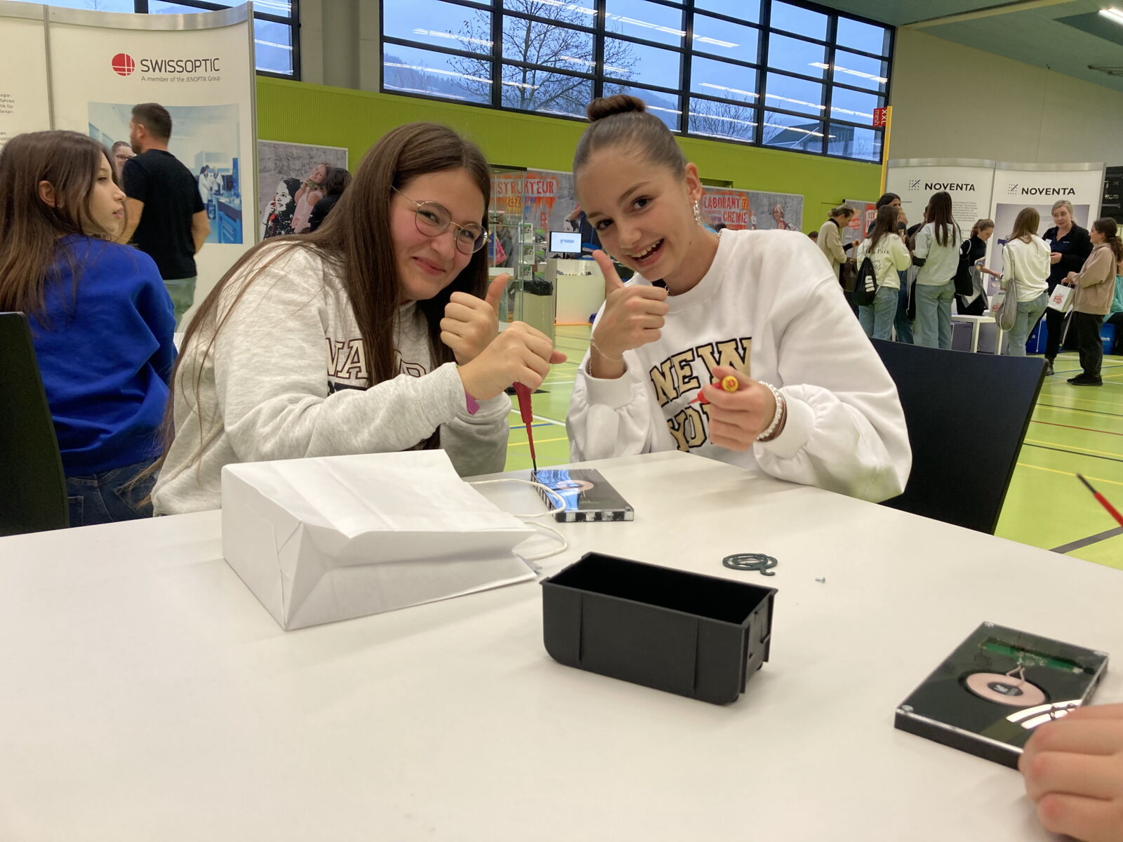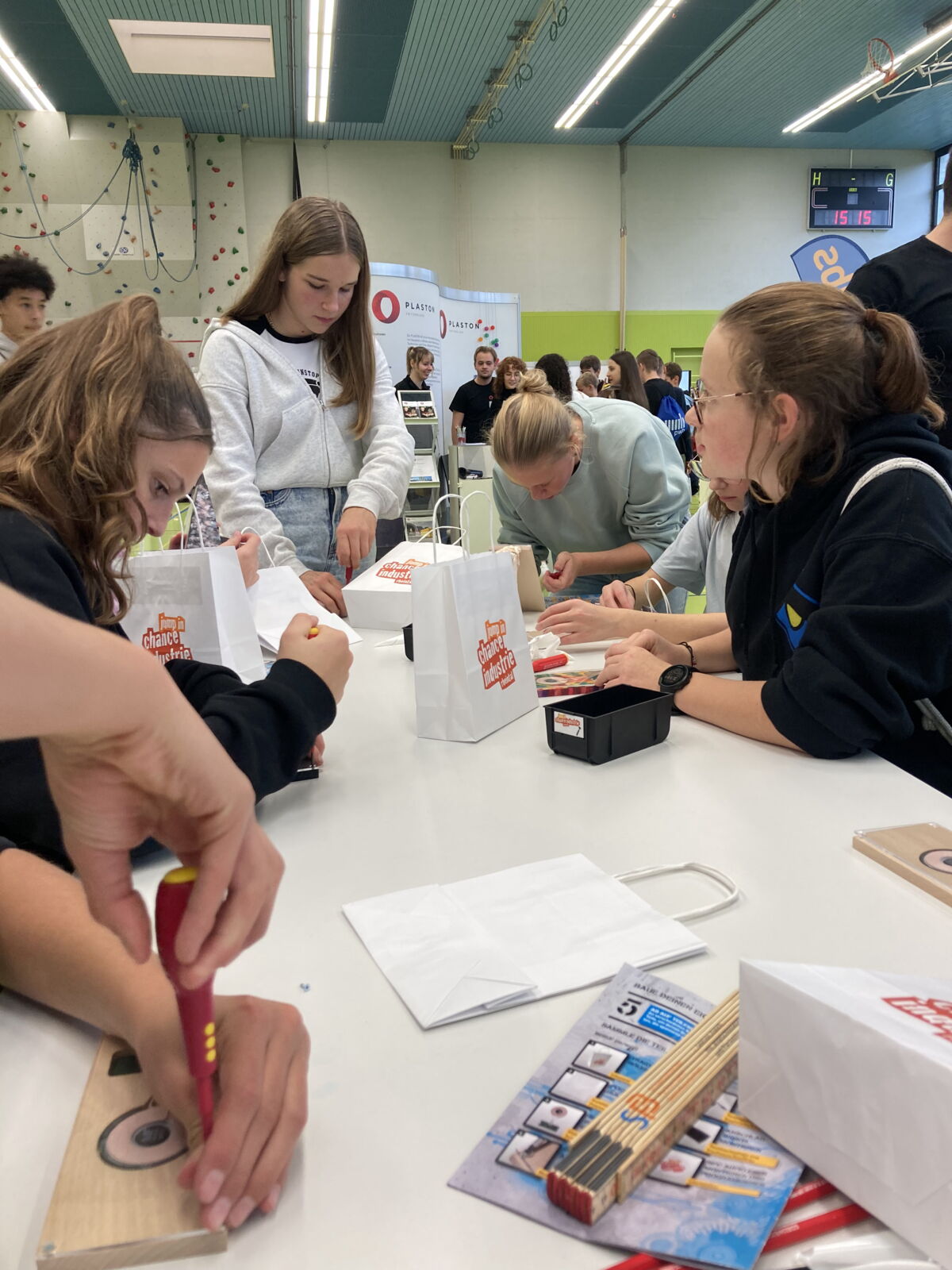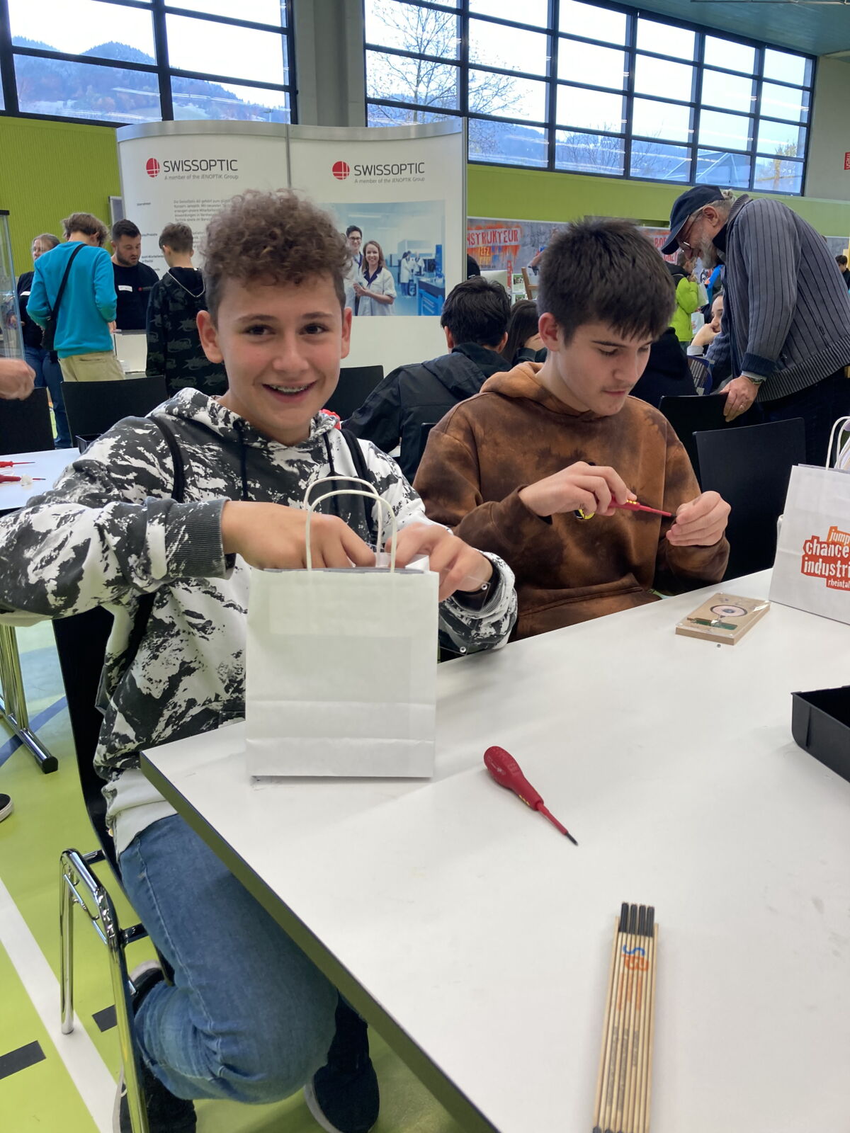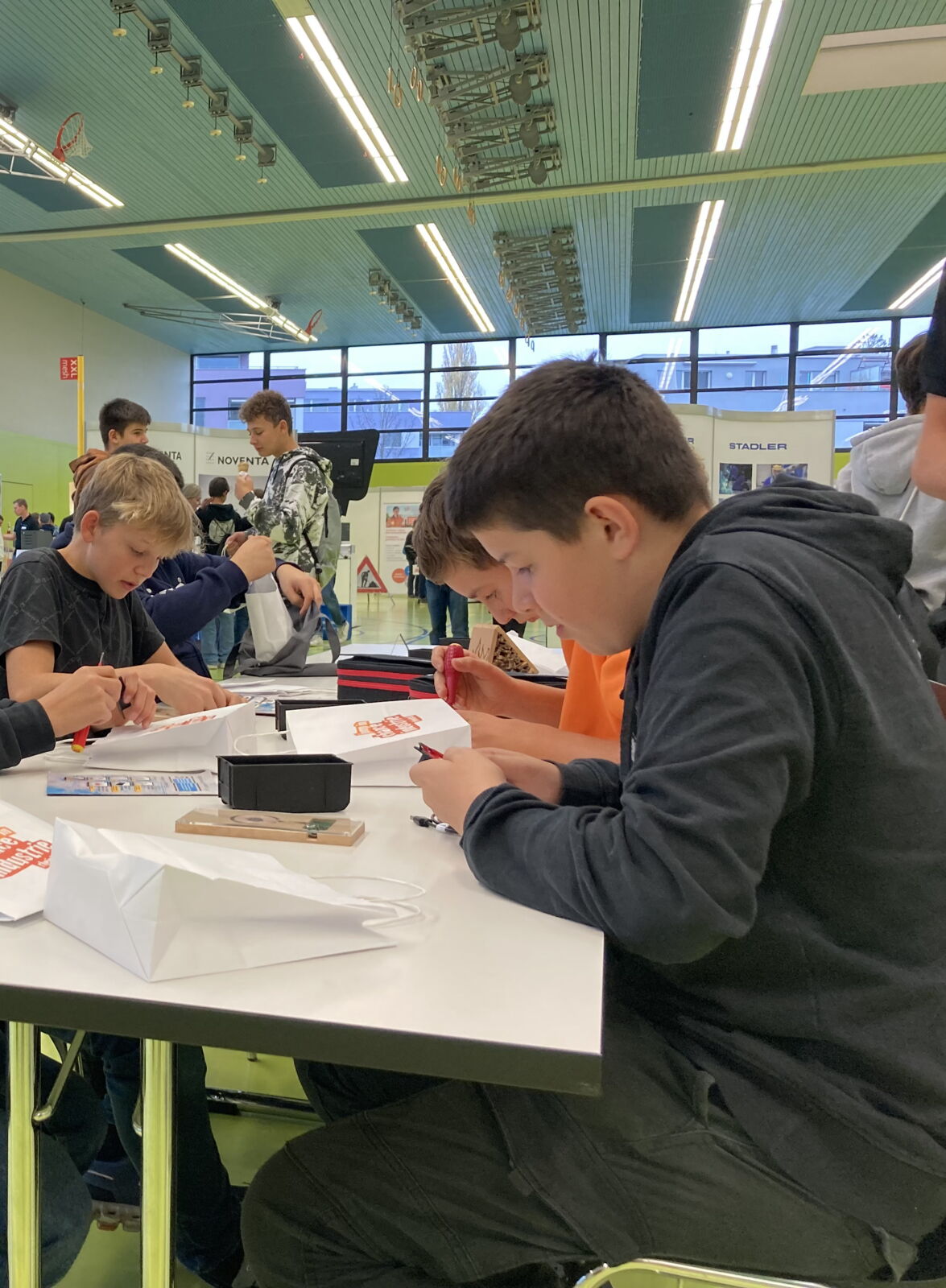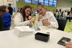 Die Klassen 2sa, 2sb und 2r konnten sich am diesjährigen Berufsevent «Chance Industrie Rheintal» in Altstätten über die vielfältigen Ausbildungsmöglichkeiten und Berufschancen informieren, welche ihnen die regionale Industrie zu bieten hat. Lernende von verschiedenen Mittel- und Grossunternehmen erzählten ihnen über den Berufsalltag und ihre Ausbildung. Während der Ausstellung sammelten die Schülerinnen und Schüler durch das Absolvieren von verschiedenen Aufgaben Credits. Diese lösten sie dann in Einzelteile eines Qi-Chargers ein, welchen sie noch vor Ort zusammenbauten, um ihr Smartphone in Zukunft kabellos aufladen zu können.