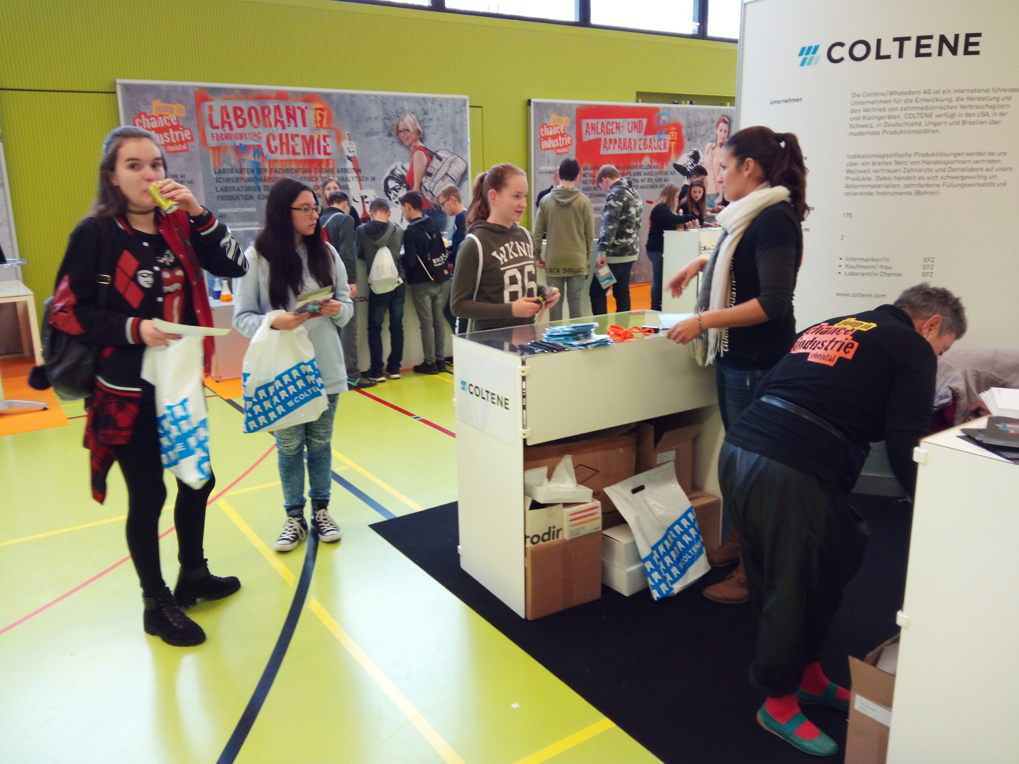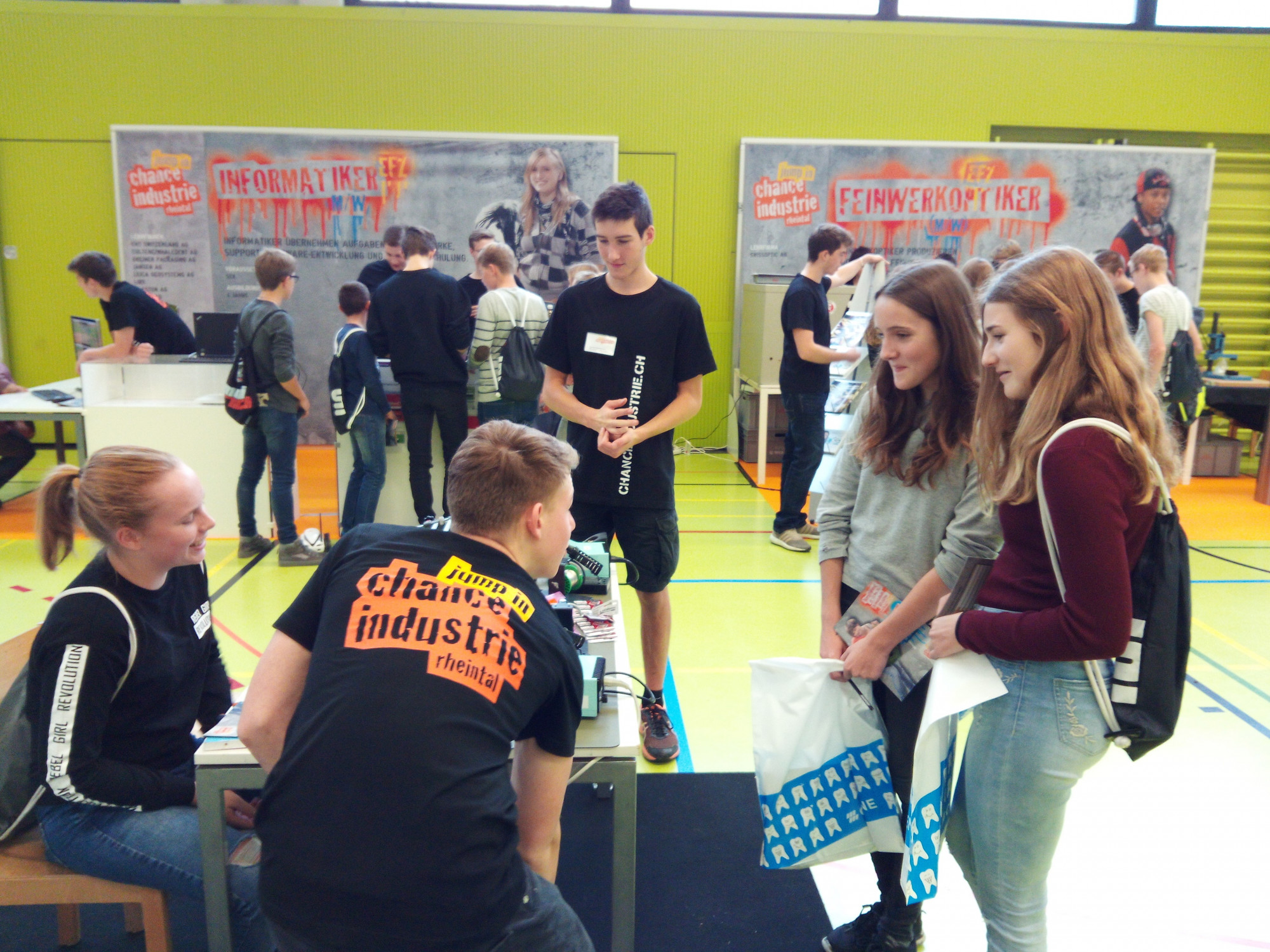 Die Wirtschaft des Rheintals bietet den Jugendlichen viele Berufschancen. Neben den Kleinbetrieben spielen die grösseren Betriebe ein wichtige Rolle bei der Ausbildung der angehenden Facharbeiterinnen und Facharbeiter. Die Schülerinnen und Schüler der zweiten Oberstufe konnten sich an der Berufsausstellung der Chance Industrie Rheintal über die vielfältigen Lehrberufe in den Industriebetrieben der Region informieren. Lehrlinge der Unternehmen erzählten den Schülerinnen und Schülern viel über die Lehre und beantworteten Fragen. Daneben warteten auch Aktivitäten auf die Jugendlichen, welche viele Eindrücke für die anstehende Berufswahl mitnahmen.