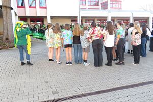 Sonne, Strand, Party und Meer - das war das Motto der Fasnacht 2025 am OZO. Ganz à la «Ballermann» durften jeweils zwei Klassen zusammen eine Bar betreiben, einen Drink kreieren und eine Show zur Unterhaltung einstudieren. Der Anlass wurde dieses Jahr von freiwilligen Schülerinnen mitorganisiert, sodass sie ihre Ideen und Anliegen einbringen konnten. Die DJs, die Moderation, die Jury und die Fotografen bestanden ausschliesslich aus unseren Schülern und Schülerinnen. Alle haben ihre Aufgaben mit viel Einsatz gemeistert, und das Ergebnis war eine gelungene Fasnachtsparty.