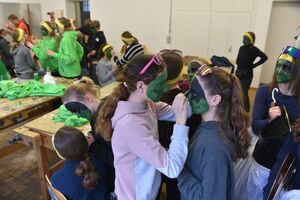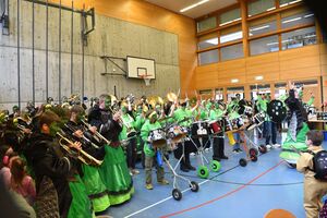 Während rund 10 Proben über Mittag und einer Probe am Mittwochnachmittag bereitete sich die Schülergugga Caramba mit ihren 81 mitwirkenden Schülerinnen und Schüler, sowie den 5 engagierten Oberguggern, allesamt Lehrpersonen am OZ Oberriet, auf die Fasnachtsauftritte vor. Allein die Anzahl Schülerinnen und Schüler sorgte dieses Jahr für einen noch nie dagewesenen Rekord. Ein Drittel aller Schülerinnen und Schüler am OZ Oberriet wirken in der Caramba mit.