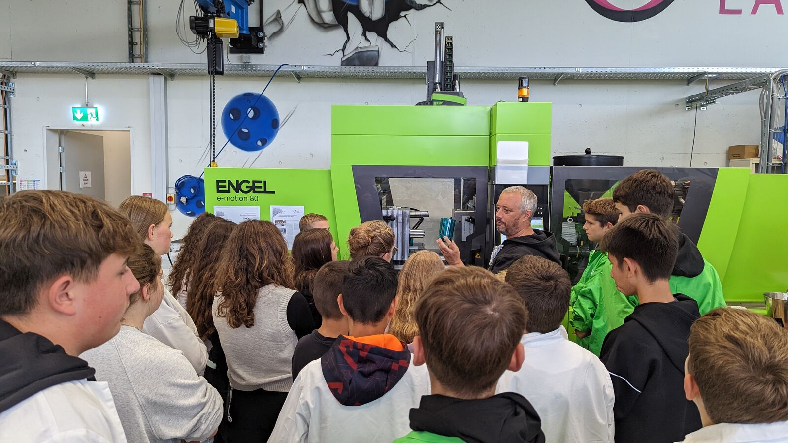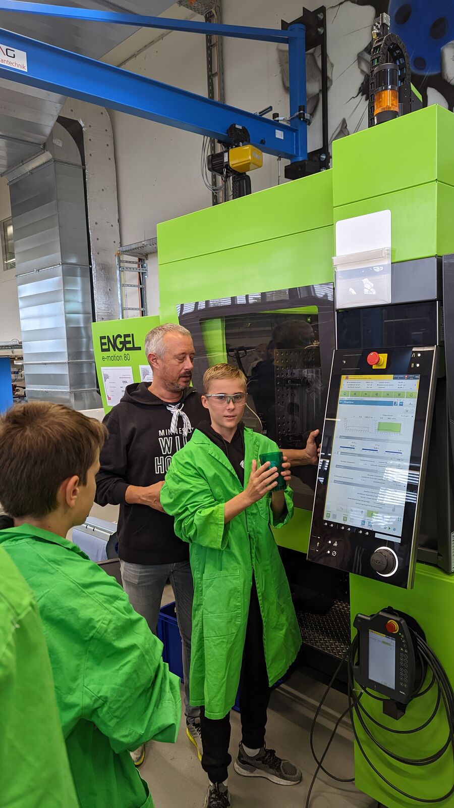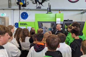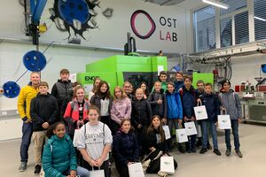 Einfach den Knopf an der Spritzgussmaschine drücken, um so einen Becher zu produzieren. Von dieser Idee mussten sich die Schüler gleich zu Beginn trennen, denn vor dem eigentlichen Produktionsstart, mussten sich die Jugendlichen selbständig in verschiedenen Teams (Design, Kommunikation, Finanzen, Forschung und Technik) einteilen und anschliessend unterschiedlichste Aufgaben umzusetzen. Dazu gehörte beispielsweise die Durchführung von Umfragen für die entsprechende Farbauswahl des Bechers, die Prüfung verschiedener Kunststoffe auf Belastbarkeit und Beständigkeit gegen Spühlmittel,… Wiederum eine andere Gruppe erstellte eine Kostenkalkulation, welche Auskunft gab, ob und wie wirtschaftliche produziert werden konnte. Schlussendlich erfolgte als Highlight des Tages, die selbständige Produktion der Becher auf einer Hightech-Spritzgussmaschine.