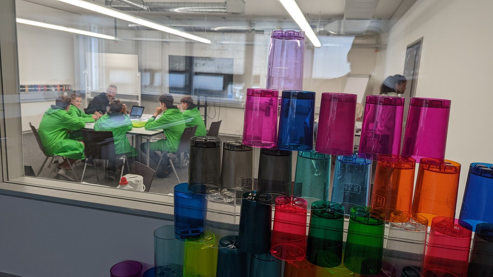 Einmal selbst einen farbenfrohen Trinkbecher mit integriertem Eiswürfelfach produzieren. Vor dieser Aufgabe standen die Schüler und Schülerinnen der Sekundarschulklasse 2sb, als sie die Reise ans HSRlab der Hochschule Rapperswil antraten.